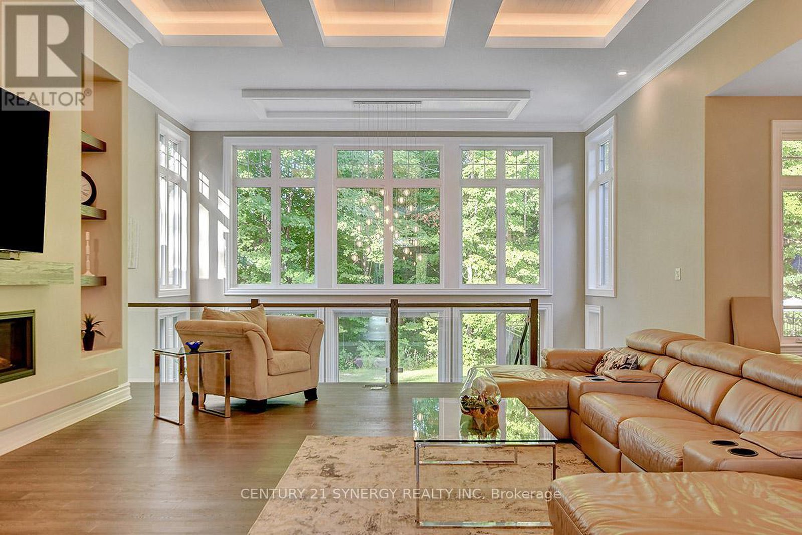 Experience refined living in this exquisite custom-built bungalow, showcasing exceptional craftsmanship, thoughtful design, and high-end finishes throughout. Located in the prestigious Rideau Forest community, this home offers the rare opportunity to own a newer home in one of Ottawa's most sought-after neighbourhoods. The open-concept layout welcomes you with a grand foyer, elegant dining room with built-in wine display, and a stunning living room featuring soaring 12-ft ceilings, intricate lighting details, a sleek fireplace, and an abundance of natural light. The gourmet kitchen is a true showpiece, complete with Thermador appliances, pot filler, large island with beverage sink, and a bright eating area that opens to a three-season screened-in porch with a gas fireplace - perfect for relaxed summer evenings. The luxurious primary suite offers a spacious walk-in closet and a spa-inspired 6-piece ensuite with heated floors. Two additional bedrooms each feature their own private ensuite, ensuring comfort for family and guests. A main floor office, powder room, laundry, and well-appointed mudroom complete the level. The fully finished lower-level impresses with a generous rec room, gas fireplace, full bar, gym, golf simulator, and guest bedroom with 3-piece bath. Direct access from the basement to the heated oversized 4-car garage adds convenience. Set on a beautifully landscaped, private, tree-lined lot, the backyard features a heated saltwater pool, irrigation system, and a separate heated oversized 2-car garage. A perfect blend of luxury, functionality, and tranquility - this home that truly has it all!