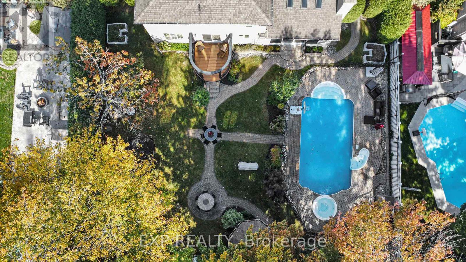 YOUR CASTLE AWAITS! Welcome to 150 Topaze Avenue in Navan, a magnificent 5-bedroom home (4+1) situated on a serene 93' by 150' lot backing onto greenspace and only minutes from shopping, schools, parks and Orleans. Extensive landscaping greets you from the driveway to the sides of the home and into the fully fenced backyard where you will find a 28' by 16' heated inground pool and hot tub, fully serviced gazebo and sheds, perennial gardens, mature trees, night lighting, rounded deck and plenty of extra space for the Family. Expansive main floor boasts a separate foyer, dramatic center staircase, crown moulding throughout, an OFFICE/DEN with pot lights, large living room and dining room (both with coffered ceilings and pot lights), HUGE eat-in kitchen with newly painted cabinets, pot lights, granite counters, center island, stainless appliances and access to the deck, a powder room and a STUNNING 4-season sunroom with vaulted ceiling, 3 skylights, a cozy gas fireplace and wall to wall patio doors overlooking the pool and gardens. Upper level has hardwood and crown moulding throughout, 4 good sized bedrooms including a primary with a walk-in-closet and spa-like ensuite with soaker tub and separate shower. Fully finished lower level is perfect for entertaining with a Family room, wet bar with seating for four, the 5th bedroom with walk-in-closet, a separate room with cedar closet (playroom or gym?), 3-piece bathroom with oversized shower, laundry room and plenty of storage. This home shines from top to bottom and is truly unique with its balance between architecture and nature! Upgrades over the last few years include furnace, air conditioner, tankless hot water, patio doors, some windows, kitchen painting, landscaping, inground sprinkler system and more. 48 hours irrevocable on all offers as per Form 244. SEE PROPERTY WEBSITE FOR MORE DETAILS AND SUMMER PHOTOS.