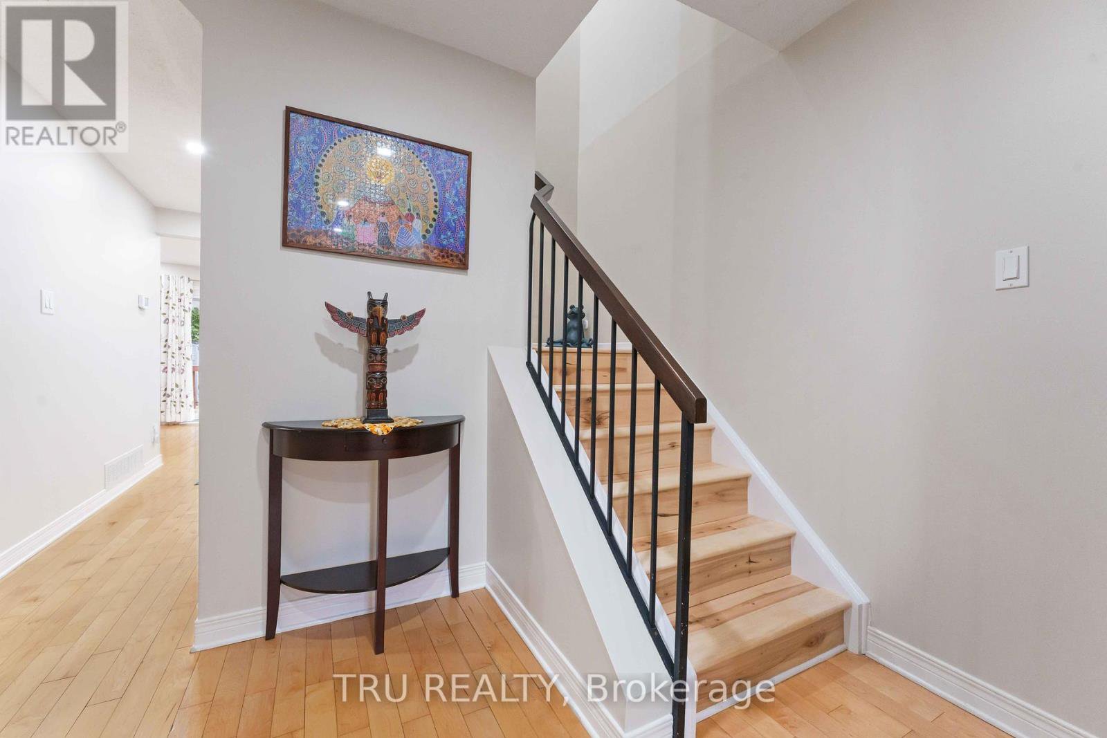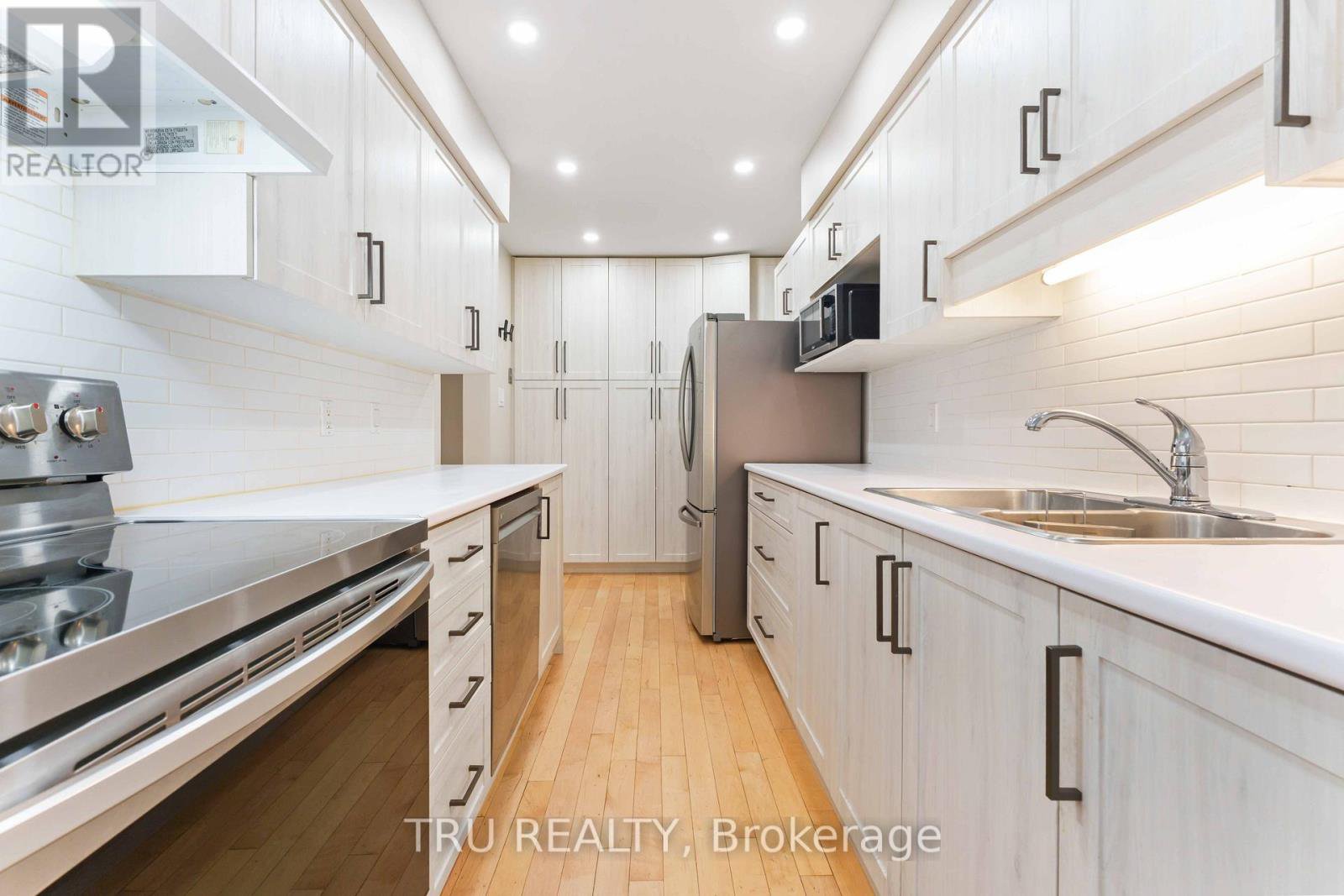 Beautifully updated 3-bedroom, 3-bath townhome in Kanatas desirable Katimavik neighborhood. Surrounded by parks, top schools, and great transit options, this move-in ready home offers exceptional value in a well-established community. The main floor features bright, open living and dining spaces that flow into a stylish modern kitchen. Upstairs are three spacious bedrooms, including a comfortable primary suite with a wall-to-wall closet. The fully finished lower level includes a versatile rec room, 3-piece bath, wet bar, and generous storage ideal for family space, a home office, or a gym. Step outside to a peaceful, private backyard with no rear neighbors, complete with a beautiful pergola and deck perfect for relaxing or entertaining. Recent updates (over $45,000) include a modern kitchen (2021), engineered hardwood stairs and upper floor (2025), new roof (2022), attic insulation (2025), LED pot lights (2025), refinished deck (2025), and stylish bathroom and closet upgrades. Located on a quiet, family-friendly street, this home combines neighborhood charm with modern comfort. Don't miss your chance to call Katimavik home.