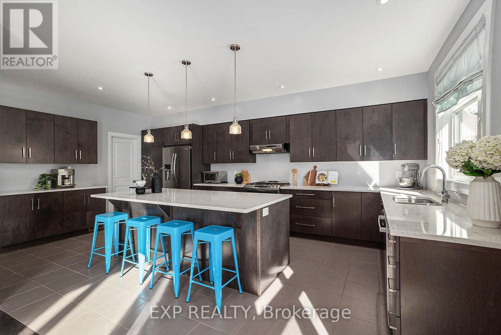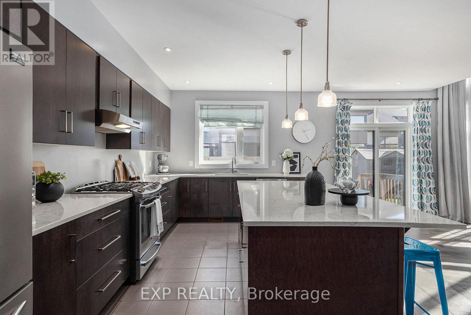 Sun Filled, Smartly Upgraded and Move In Ready, This 4 Bed, 3 Bath Beauty Delivers over 3,600 Square Feet of Living Space, Including A Professionally Finished Lower Level. Oversized Windows Flood Every Room with Light, and the South Facing Kitchen and Living Room Glow from Morning to Evening. Entertainers Dream Kitchen, with an Expanded Layout, Massive Island with Seating, Upgraded Quartz Countertops, Dual Fuel Gas Stove, Walk In Pantry, and Tons Of Cabinetry. Main Level Living Flows Effortlessly for Gatherings and Daily Life, Finished in Wide Plank Torlys Hardwood, with Thoughtful Storage at Every Turn. Upper Level hosts the Primary Bedroom which Impresses with an Upgraded 10' Ceiling & Spacious Ensuite. Each Secondary Bedroom Enjoys Near Wall To Wall Windows, Large Walk In Closets, & Built In Noise Separation, thanks to a Bathroom, Linen Closet, or Laundry Room Between Rooms. The Lower Level Adds a Large Recreation Area, Great Storage, a Rough-In for a Future Bath, and Space Ready to Easily Finish a Large 5th Bedroom if Needed. Construction Upgrades Include Enhanced Builder Insulation for Excellent Energy Efficiency, Plus Copper Plumbing for Long Term Durability. Outdoor Enjoy a Huge Front Porch for Relaxing in Shade or Rain, and a Fully Vinyl Fenced Backyard with a Large Wood Deck, a Shed, and a Pea Stoned Walking Area that is Perfect for a Fire Pit. The Oversized 20'x20' Garage Includes an Insulated Door, Making Parking and Storage Easy in Every Season. Minutes to NCC Trails where you can Bike or Walk Beneath Colourful Fall Foliage, Snowshoe After a Fresh Snowfall, or Simply Zen Out In Nature. Close To Schools, with Two English Catholic Elementary, One French Catholic Elementary, and One English Public Elementary Option Nearby. From Sunlit Rooms and a Chef's Kitchen to an Oversized Garage and a Private, Decked Yard, this Home Delivers Space, Style, and Effortless Living in a Prime Kanata Location, Making this a Standout Choice For Families Who Want it All!