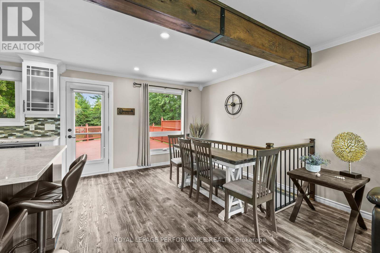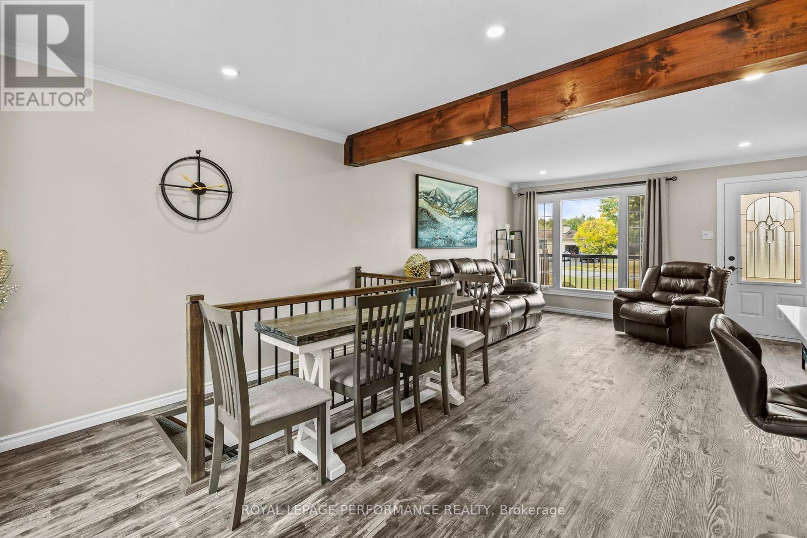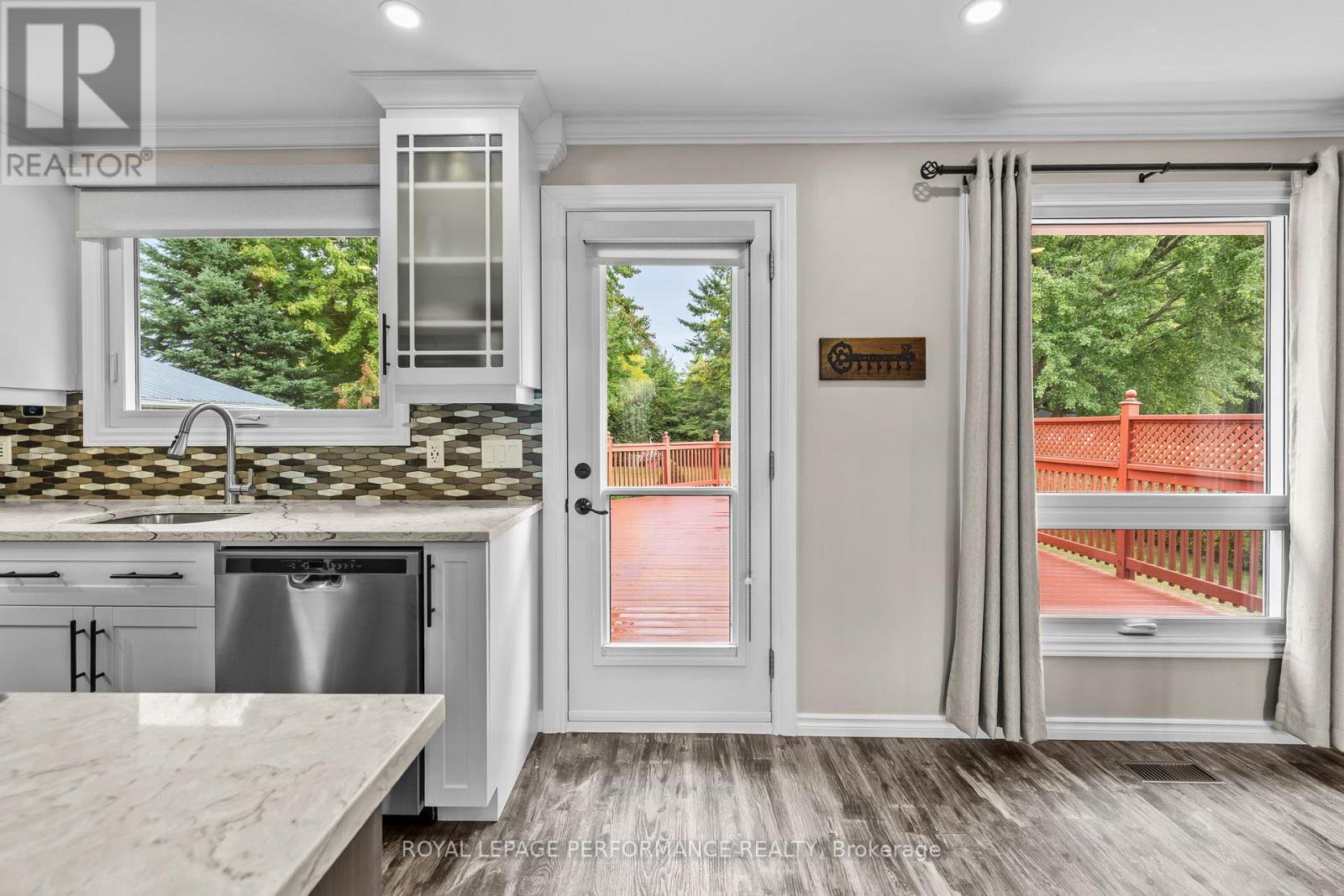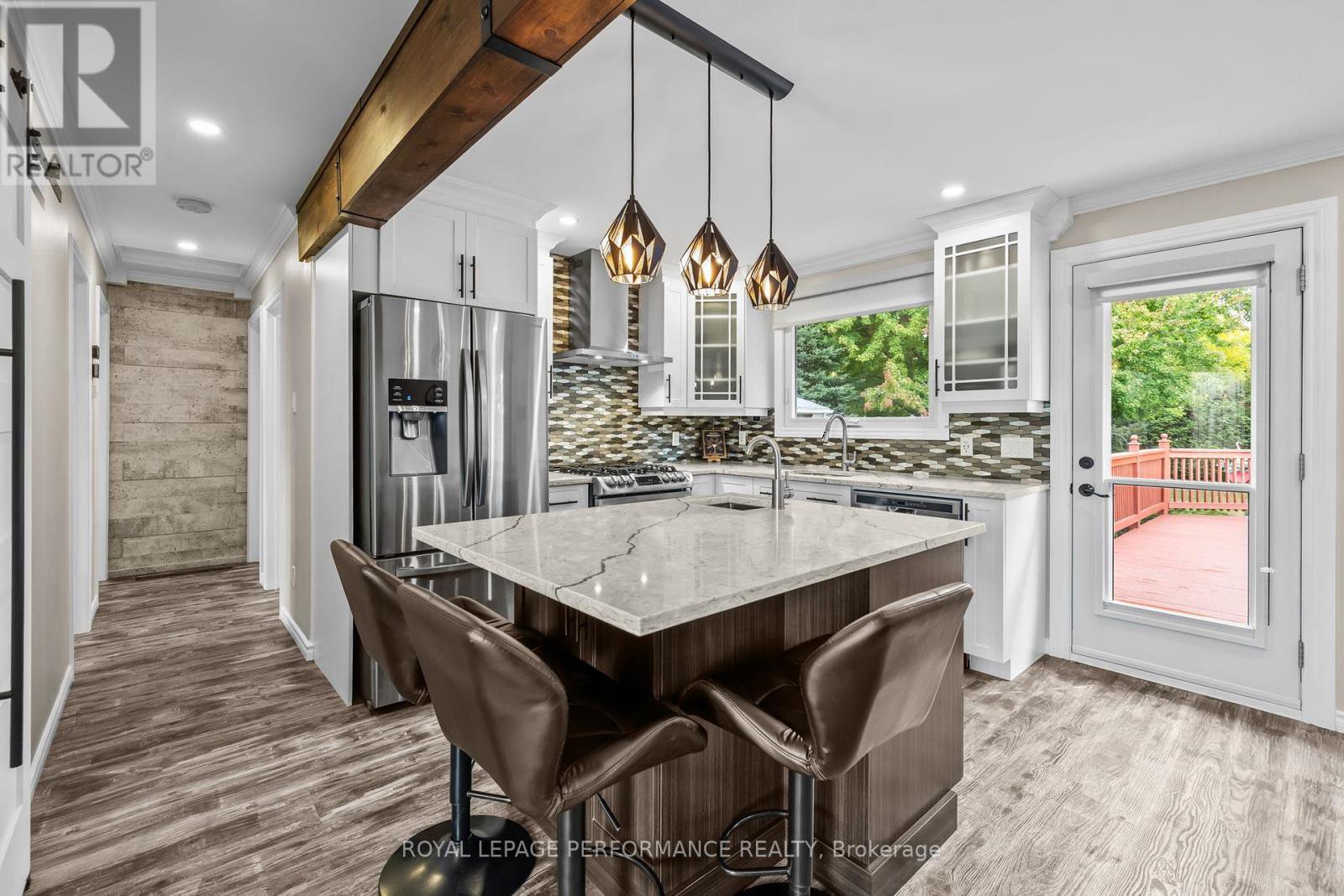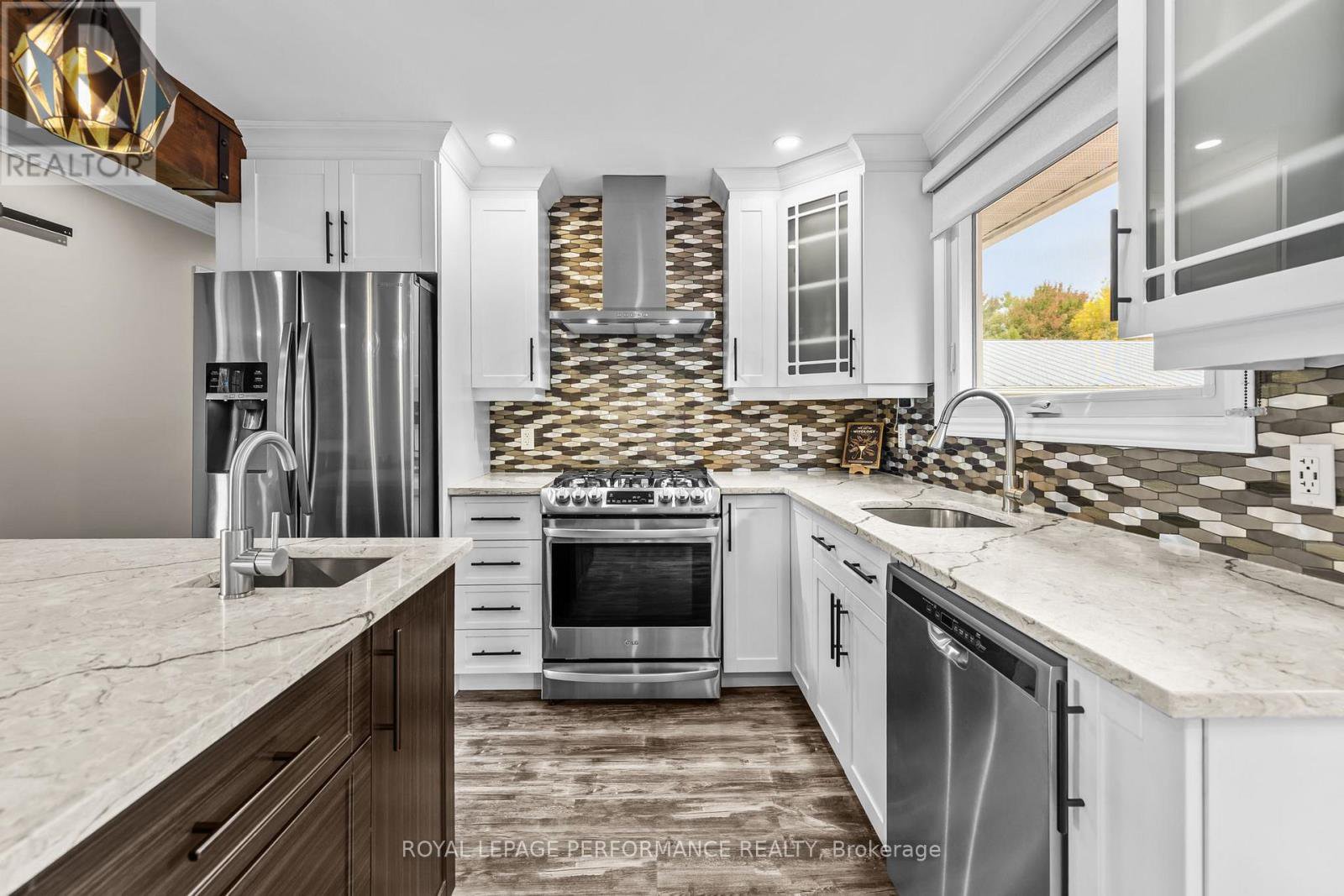 Welcome to 122 Maple Grove Street in the sought-after Forest Park community! Perfectly situated with easy access to Highway 417 and only 25 minutes from downtown Ottawa, this home is nestled on a quiet dead-end street and steps away from a reputable school currently under expansion. Offering both convenience and privacy, step inside to a beautifully renovated home featuring an open-concept main floor with exposed beam, barn-door accents, and high end luxury vinyl flooring. The inviting living room with an electric fireplace flows seamlessly into the dining area and modern kitchen, complete with quartz countertops and direct access to a spacious (16' x 32') rear deck perfect for entertaining. The main floor hosts 3 comfortable bedrooms and 1 full bath with granite countertops, while the fully finished basement extends your living space with 1 additional bedroom, a cozy family room with natural gas fireplace, a dry bar with granite countertops, built-in shelving, a 2nd full bathroom with granite countertops, plus dedicated laundry, storage areas, & features a dri-core flooring system throughout. Car enthusiasts and hobbyists alike will love the insulated heated (natural gas) detached double garage (20' x 34') equipped with a metal roof, internet, heating, and water. Outside, the private backyard is a true retreat with mature trees, full fencing, an additional shed ('10x'14), and an impressive 100ft paved driveway + 72ft on the side of the garage leading to the shed. With modern renovations and smart functionality throughout, this home combines the best of private living with the convenience of municipal utilities.