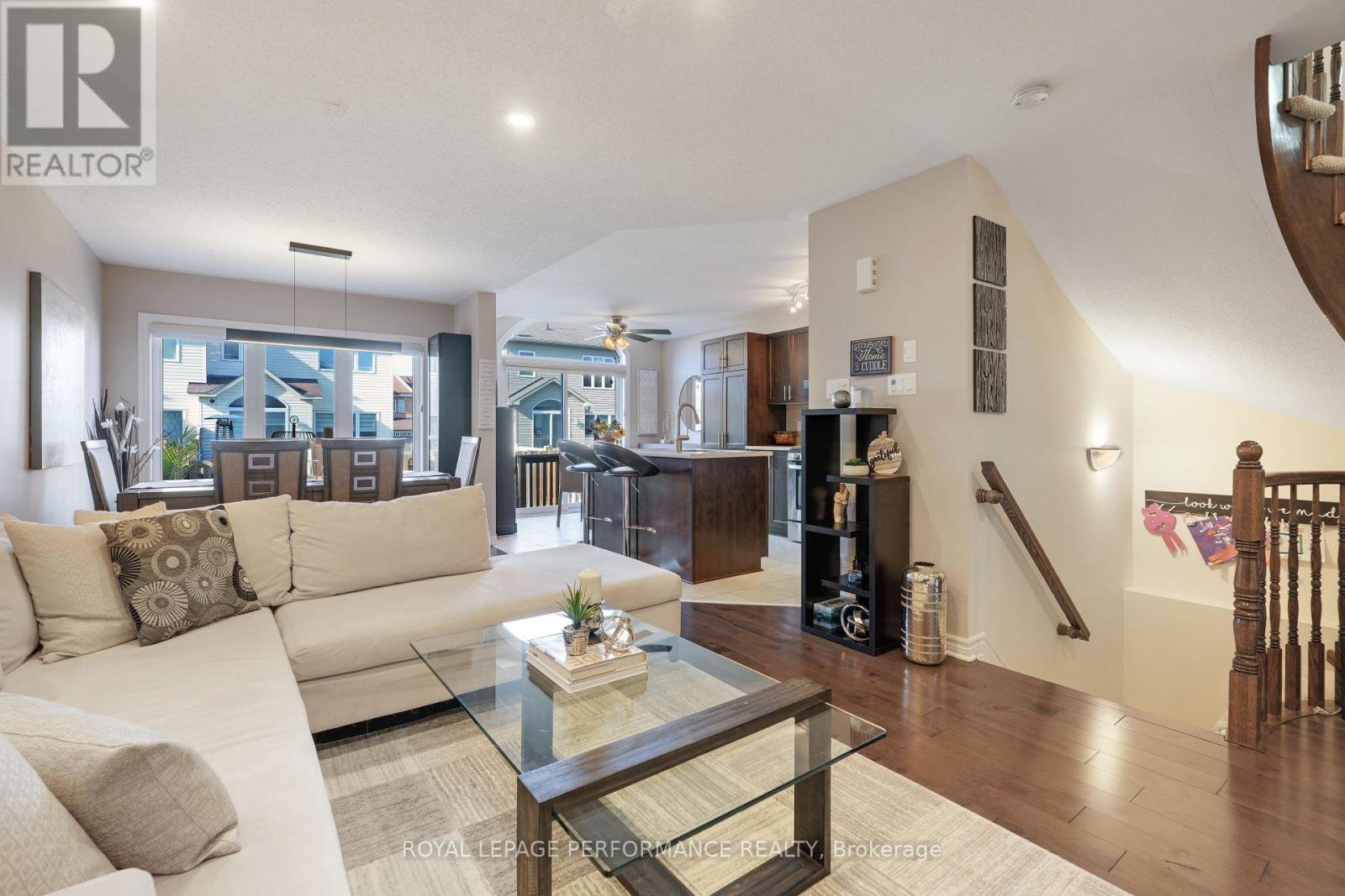 Open House - Sunday, October 19, 2:00 to 4:00. Discover this contemporary, 3 bedroom/3 bath END UNIT home in desirable Avalon East. The curved staircase boasts an oversize window that floods both floors with an abundance of sun and natural light. An open concept main floor with eat-in kitchen provides ample space for today's active family. Gleaming hardwood on main floor, lots of counter space in the kitchen, gas stove, new light fixtures (2024) in dining, powder room and recessed added in living room. A newly installed wall feature (2024) adds a truly unique design element to the living room. Patio doors lead to fully fenced back yard with small veggies & perennial gardens and patio for entertaining. The very spacious primary bedroom boasts a 4 piece en-suite bathroom with glass wall, walk in shower and a ample sized walk-in closet. Relax at the end of the day in the large family room in the basement with a cozy gas fireplace. Extended lane fits 2 cars comfortably. Upgrades in 2024 include fully painted throughout, most light fixtures replaced, wall feature in living room and shower heads in both full bathrooms(rain shower in en-suite) Furnace, AC, Roof, windows all 2010. 2 lovely parks around the corner- one with a Zen garden and walking path Close to schools, shopping, restaurants and transit. Day before notice on all showings. 24 hour irrevocable on all offers.