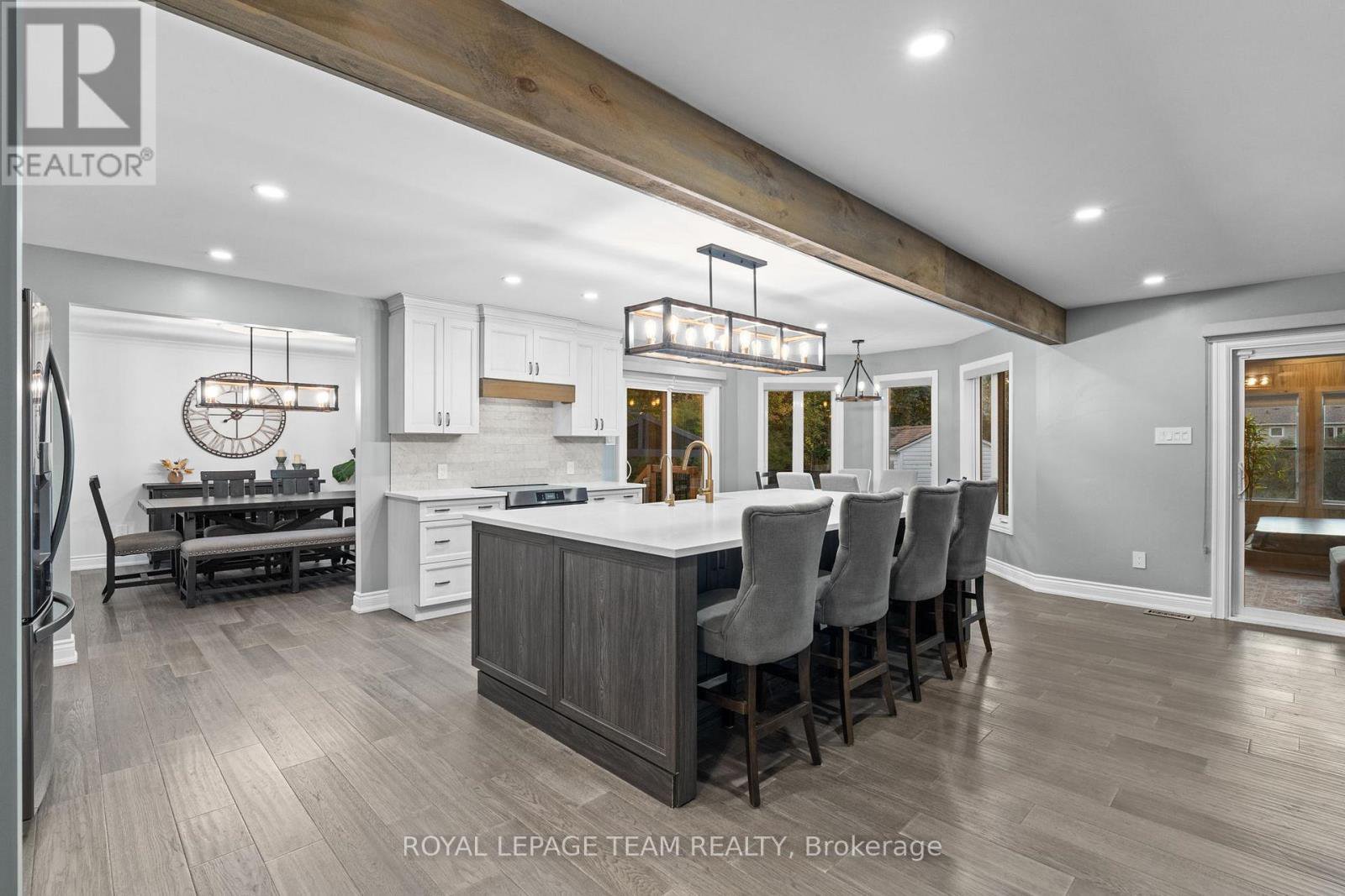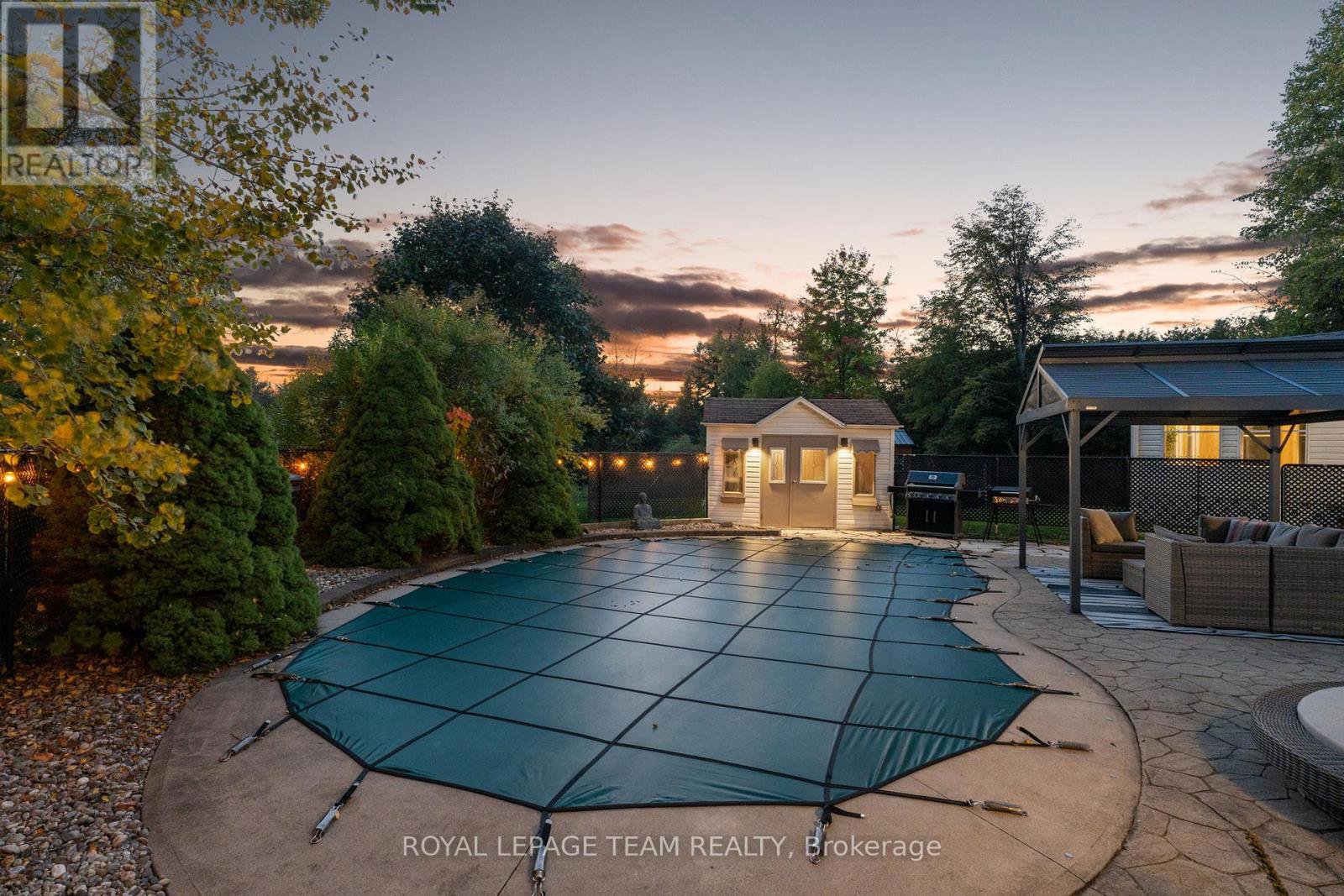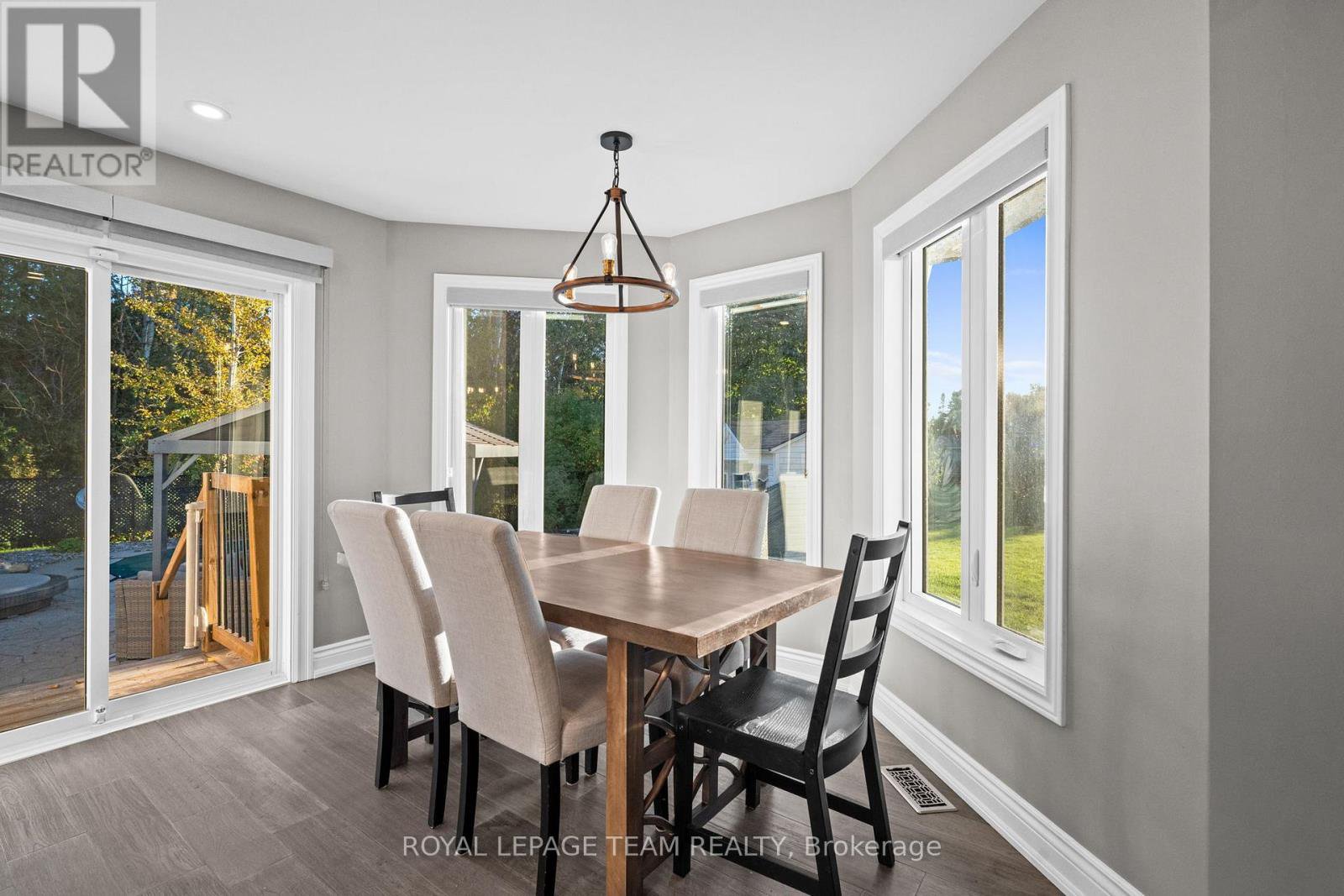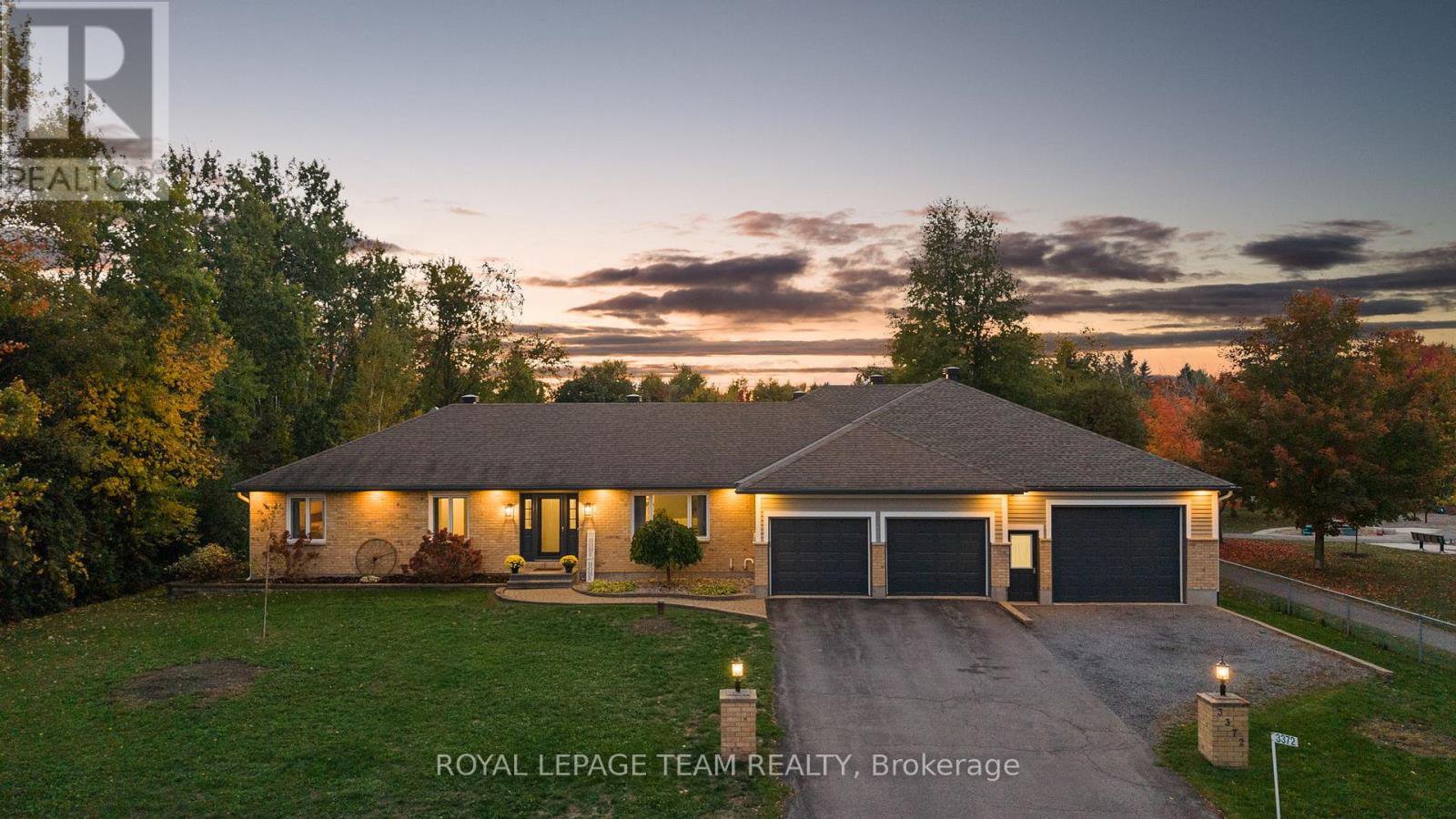 Tucked away on a mature, tree-lined street in Osgoode, next to a quiet park, this exceptional custom bungalow blends space, comfort, and thoughtful design in a way thats truly rare. With over 3,600 sq. ft. of finished living space plus additional room in the basement, this home is deceivingly spacious and perfectly suited for modern living. Extensively renovated in 2021, the heart of the home features a top-of-the-line kitchen that flows seamlessly into an open-concept living area so expansive, you won't believe it until you see it! Natural light pours into the four-season sunroom, where a cozy fireplace and hot tub create the perfect year-round retreat. Step outside to discover your sunny backyard oasis, complete with a beautiful in-ground saltwater pool and stunning landscaping that enhances the homes impressive curb appeal. The main floor layout is both functional and elegant, with a luxurious primary suite, two additional large bedrooms, three well-appointed bathrooms (including a spa-like ensuite and convenient powder room), a formal dining room, and a breakfast nook overlooking the backyard. Multiple living spaces including a family room with gas fireplace and a spacious front living room offer versatility for both everyday living and entertaining. Downstairs, a finished basement adds even more flexibility with a recreation room, an additional bedroom, a gym area, and generous storage. The three-car garage is a standout feature: the third bay is an extra-tall, heated workshop with a finished office space, ideal for hobbies, home-based work, or future possibilities. 3372 Bramble Lane is truly one-of-a-kind in this area: a warm, expansive, and thoughtfully designed home that must be experienced in person to be fully appreciated.