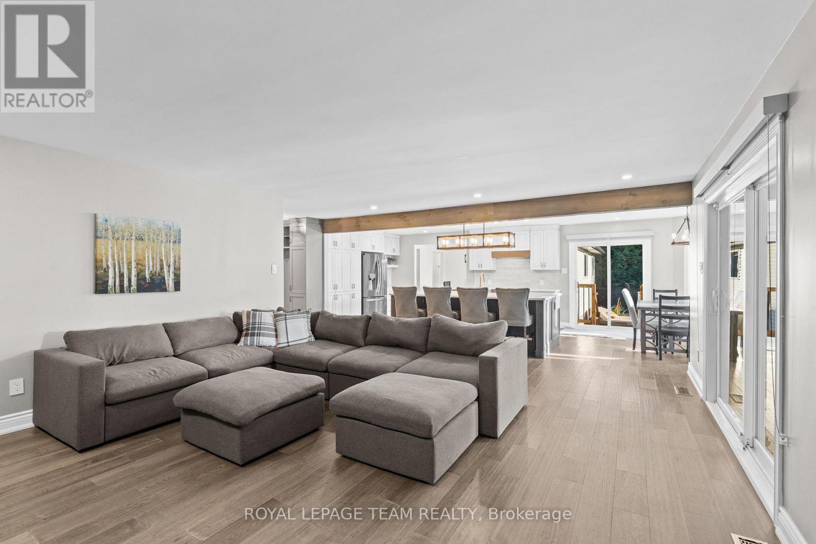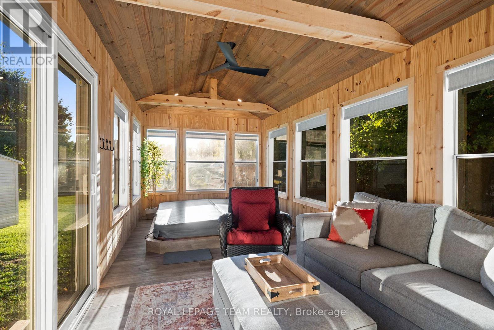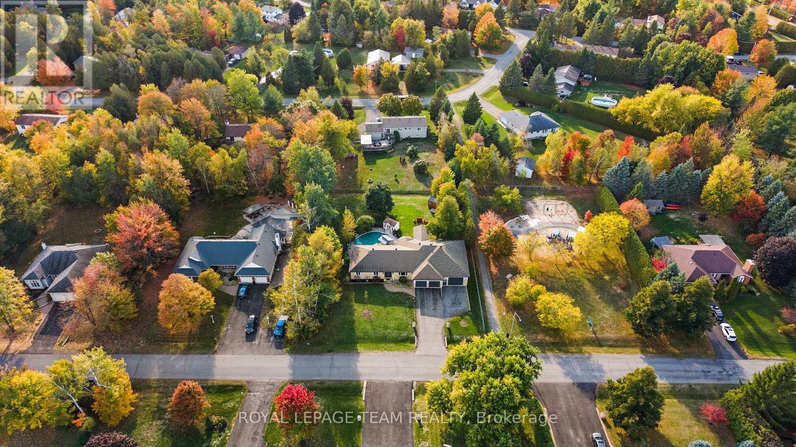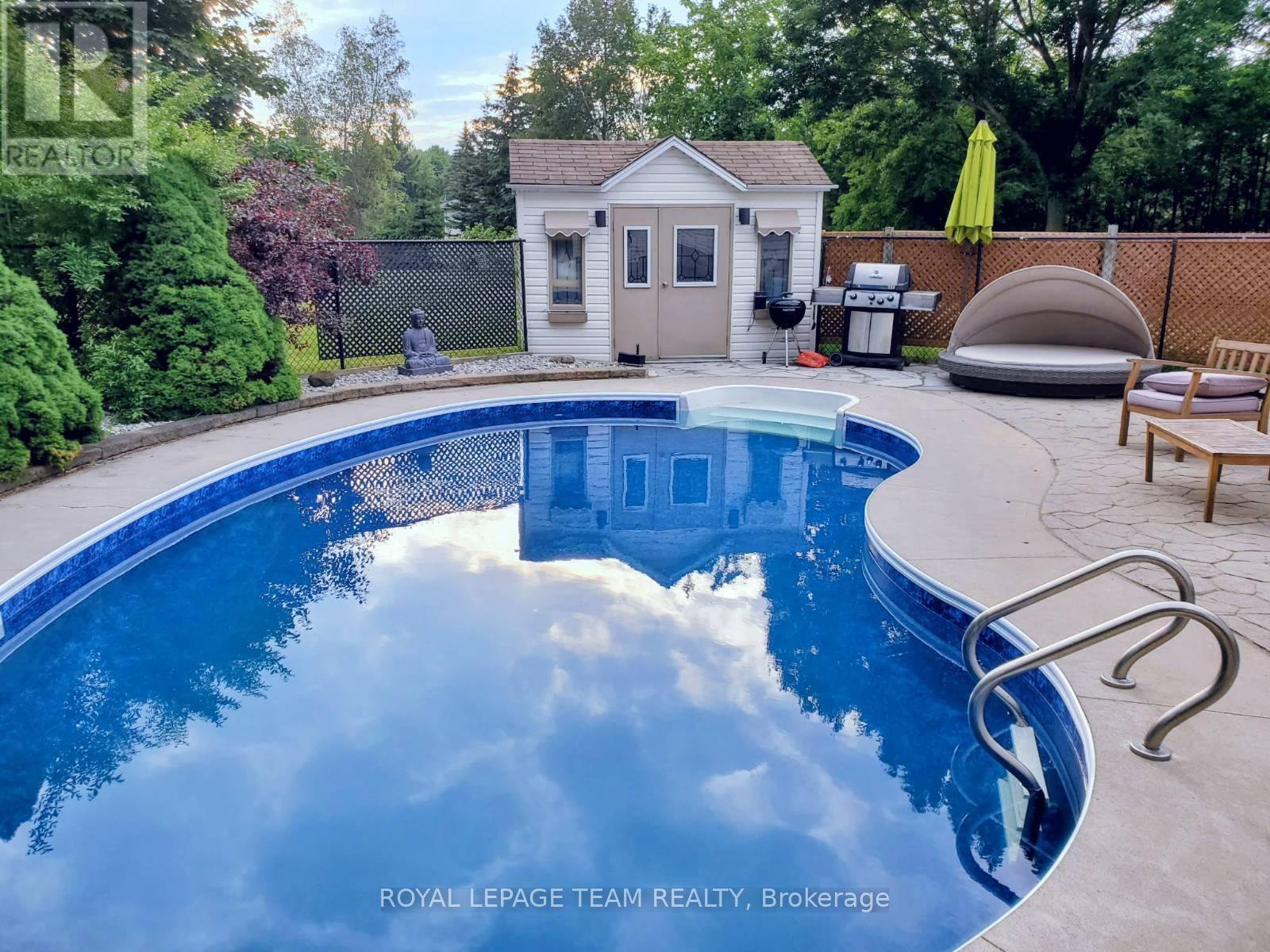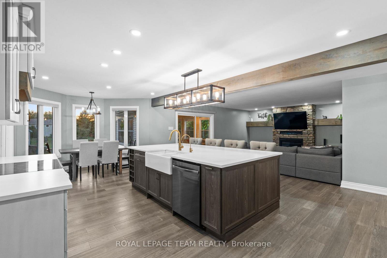 Tucked away on a mature, tree-lined street in Osgoode, next to a quiet park, this exceptional custom bungalow blends space, comfort, and thoughtful design in a way thats truly rare. With over 3,600 sq. ft. of finished living space plus additional room in the basement, this home is deceivingly spacious and perfectly suited for modern living. Extensively renovated in 2021, the heart of the home features a top-of-the-line kitchen that flows seamlessly into an open-concept living area so expansive, you won't believe it until you see it! Natural light pours into the four-season sunroom, where a cozy fireplace and hot tub create the perfect year-round retreat. Step outside to discover your sunny backyard oasis, complete with a beautiful in-ground saltwater pool and stunning landscaping that enhances the homes impressive curb appeal. The main floor layout is both functional and elegant, with a luxurious primary suite, two additional large bedrooms, three well-appointed bathrooms (including a spa-like ensuite and convenient powder room), a formal dining room, and a breakfast nook overlooking the backyard. Multiple living spaces including a family room with gas fireplace and a spacious front living room offer versatility for both everyday living and entertaining. Downstairs, a finished basement adds even more flexibility with a recreation room, an additional bedroom, a gym area, and generous storage. The three-car garage is a standout feature: the third bay is an extra-tall, heated workshop with a finished office space, ideal for hobbies, home-based work, or future possibilities. 3372 Bramble Lane is truly one-of-a-kind in this area: a warm, expansive, and thoughtfully designed home that must be experienced in person to be fully appreciated.