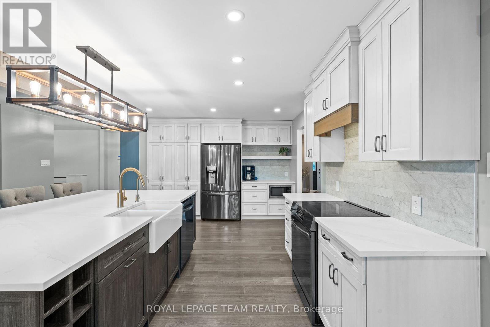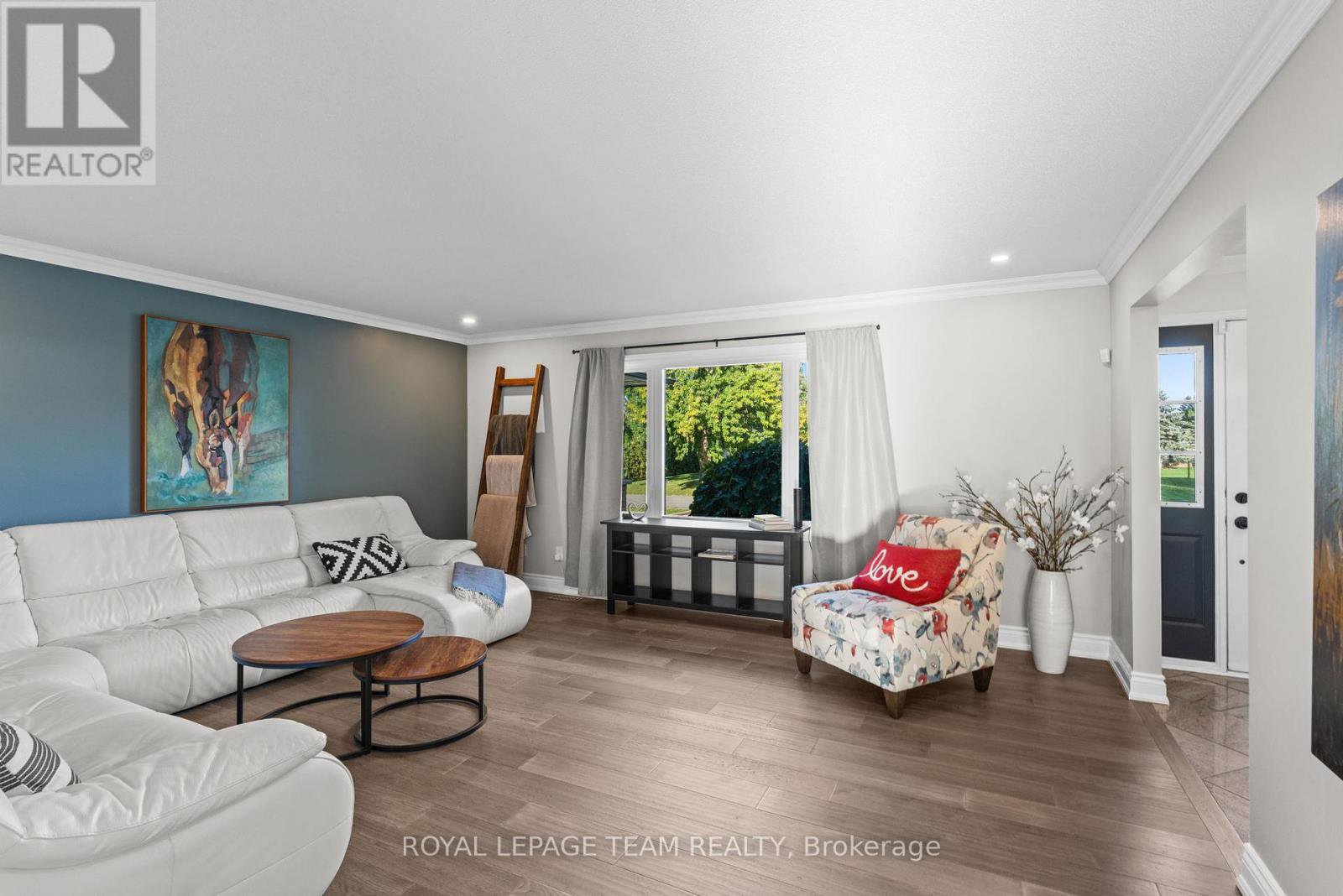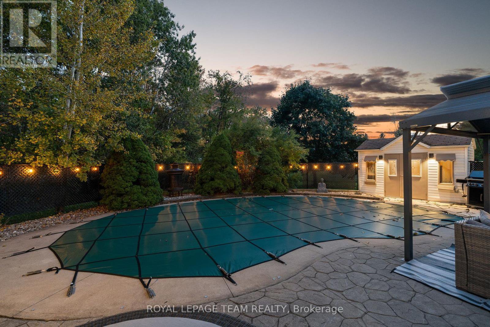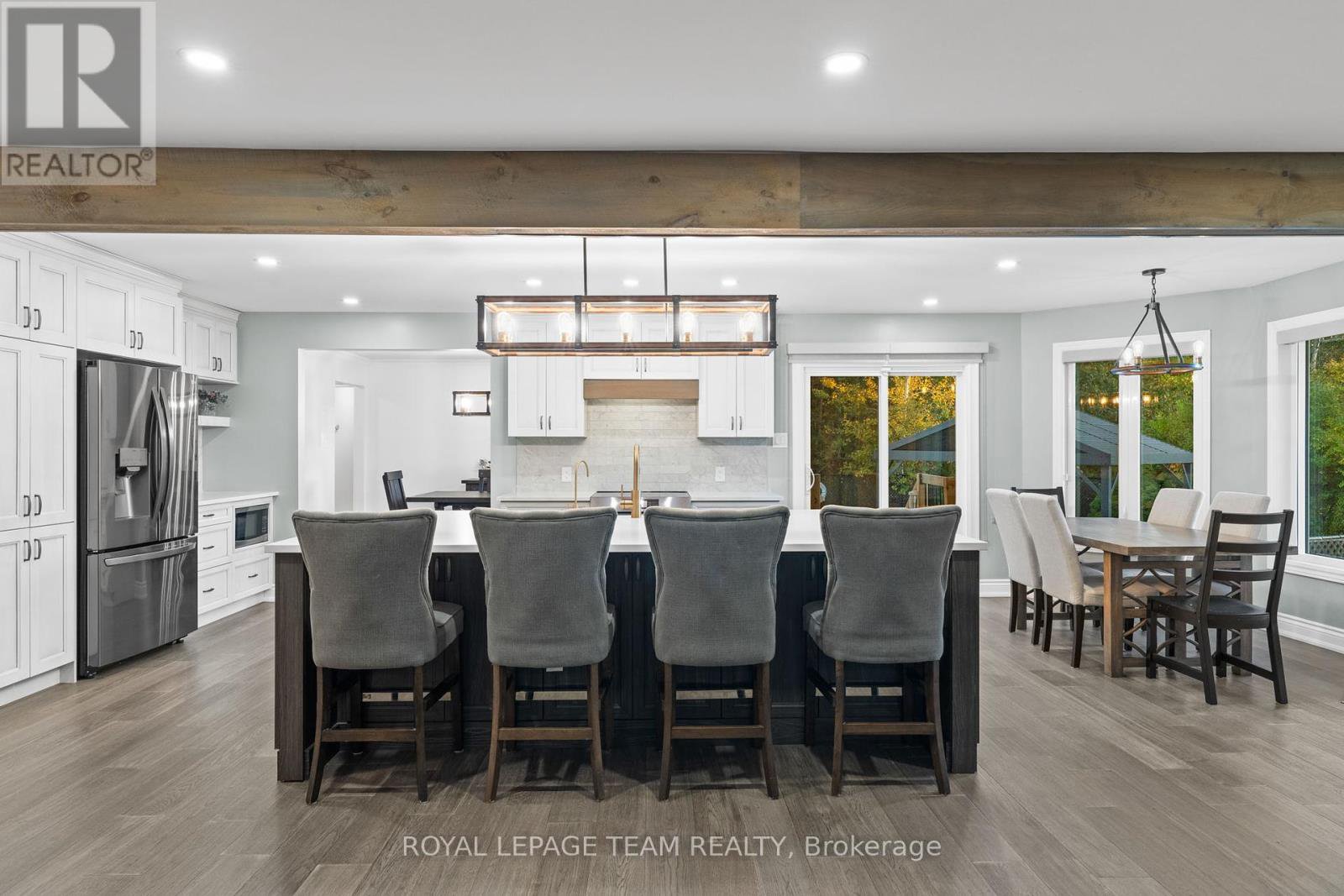 Tucked away on a mature, tree-lined street in Osgoode, next to a quiet park, this exceptional custom bungalow blends space, comfort, and thoughtful design in a way thats truly rare. With over 3,600 sq. ft. of finished living space plus additional room in the basement, this home is deceivingly spacious and perfectly suited for modern living. Extensively renovated in 2021, the heart of the home features a top-of-the-line kitchen that flows seamlessly into an open-concept living area so expansive, you won't believe it until you see it! Natural light pours into the four-season sunroom, where a cozy fireplace and hot tub create the perfect year-round retreat. Step outside to discover your sunny backyard oasis, complete with a beautiful in-ground saltwater pool and stunning landscaping that enhances the homes impressive curb appeal. The main floor layout is both functional and elegant, with a luxurious primary suite, two additional large bedrooms, three well-appointed bathrooms (including a spa-like ensuite and convenient powder room), a formal dining room, and a breakfast nook overlooking the backyard. Multiple living spaces including a family room with gas fireplace and a spacious front living room offer versatility for both everyday living and entertaining. Downstairs, a finished basement adds even more flexibility with a recreation room, an additional bedroom, a gym area, and generous storage. The three-car garage is a standout feature: the third bay is an extra-tall, heated workshop with a finished office space, ideal for hobbies, home-based work, or future possibilities. 3372 Bramble Lane is truly one-of-a-kind in this area: a warm, expansive, and thoughtfully designed home that must be experienced in person to be fully appreciated.