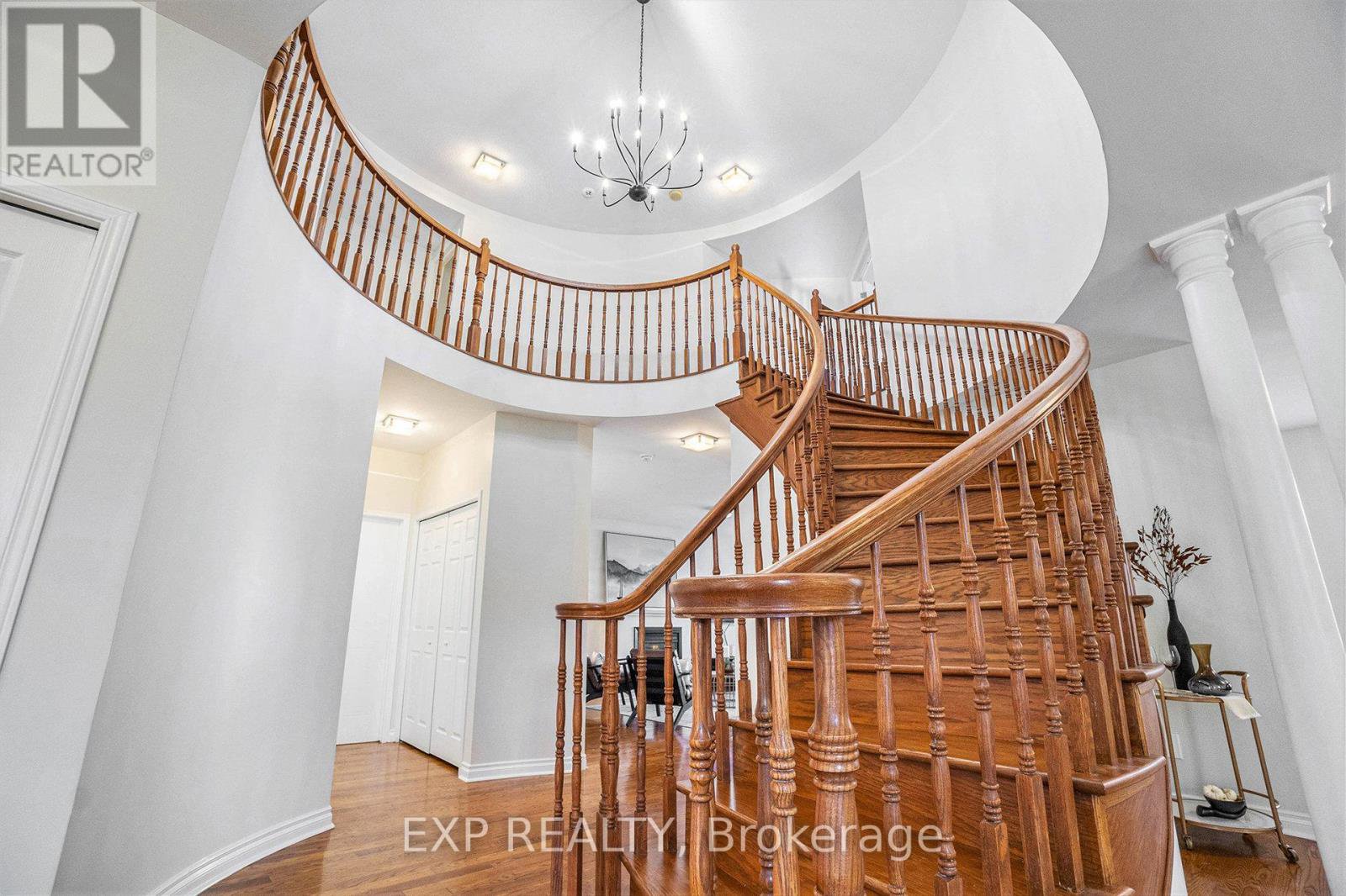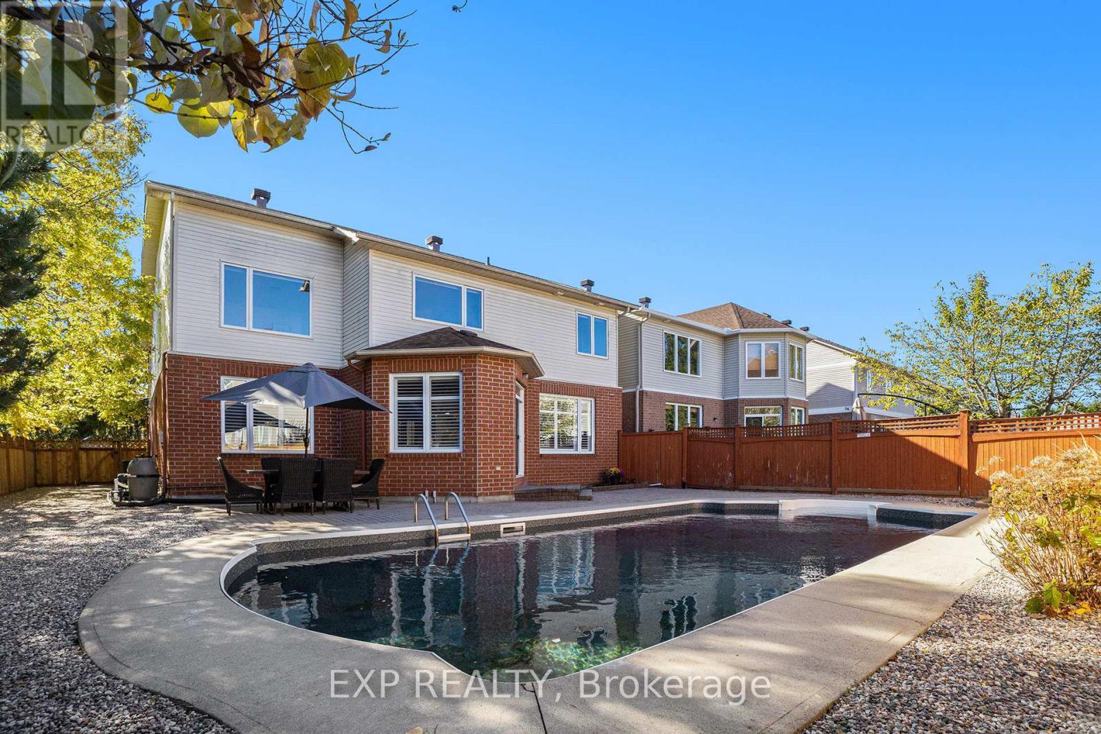 Discover this rarely offered Minto Pearson model, featuring 5+1 bedrooms and 4.5 bathrooms, offering over 3,400 sq. ft. above grade plus a fully finished lower level. Perfectly positioned on a sunny corner lot in the heart of Chapel Hill South, one of Orléans most sought-after communities, this executive home blends sophistication, comfort and functionality for modern family living.From the moment you enter, a sweeping curved oak staircase and gleaming hardwood floors set the tone for the homes refined design. The thoughtful layout features formal living and dining rooms, a dedicated home office, and a convenient main-floor laundry/mudroom with inside access to the garage.At the heart of the home, the bright family room, anchored by a gas fireplace, flows seamlessly into the spacious kitchen, creating the perfect space for connection and entertaining.The open-concept kitchen offers granite countertops, abundant cabinetry, and a sunlit eating area that opens to the expansive backyard patio with a heated in-ground pool, an ideal private retreat for summertime gatherings.Upstairs, a walk-around landing leads to the primary suite, thoughtfully positioned across the rear of the home. This tranquil retreat includes a private sitting area, a walk-in closet, and a spa-inspired ensuite.Four additional bedrooms provide ample space for family and guests, including one with its own renovated ensuite, and a modern full bathroom completes the upper level.The finished basement extends your living space, offering a large recreation room with a built-in bar, perfect for entertaining. You'll also find a sixth bedroom, a full bathroom, dedicated gym and office zones and generous storage areas making this level as functional as it is inviting. Located close to top-rated schools, parks and shopping. Quick Possession Possible. Updates Include: Pool Liner 2025, 2 Fence Sides 2025, Rear Patio Reset 2025, Roof 2019, Furnace 2018, Hot Water Tank 2022 (owned).