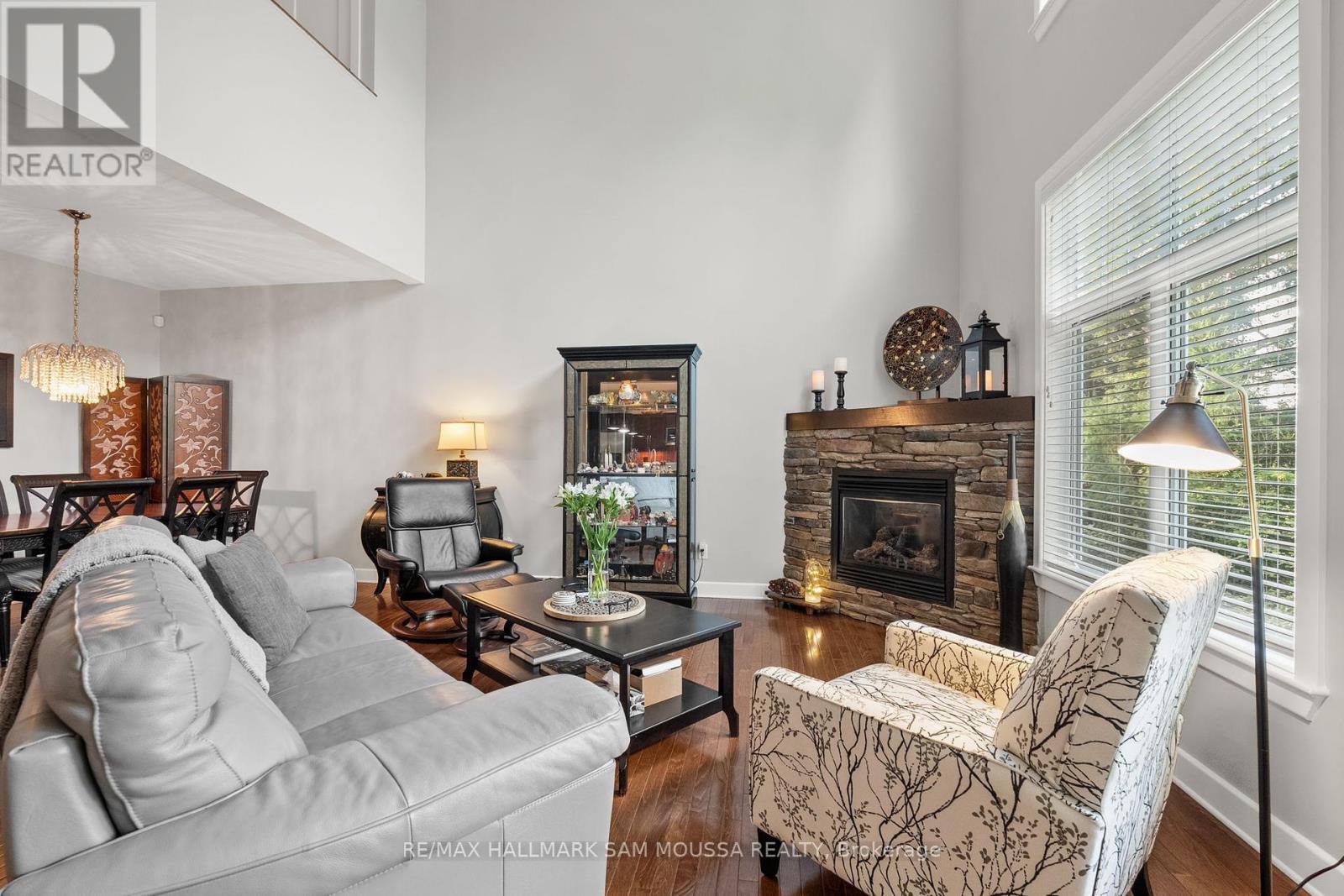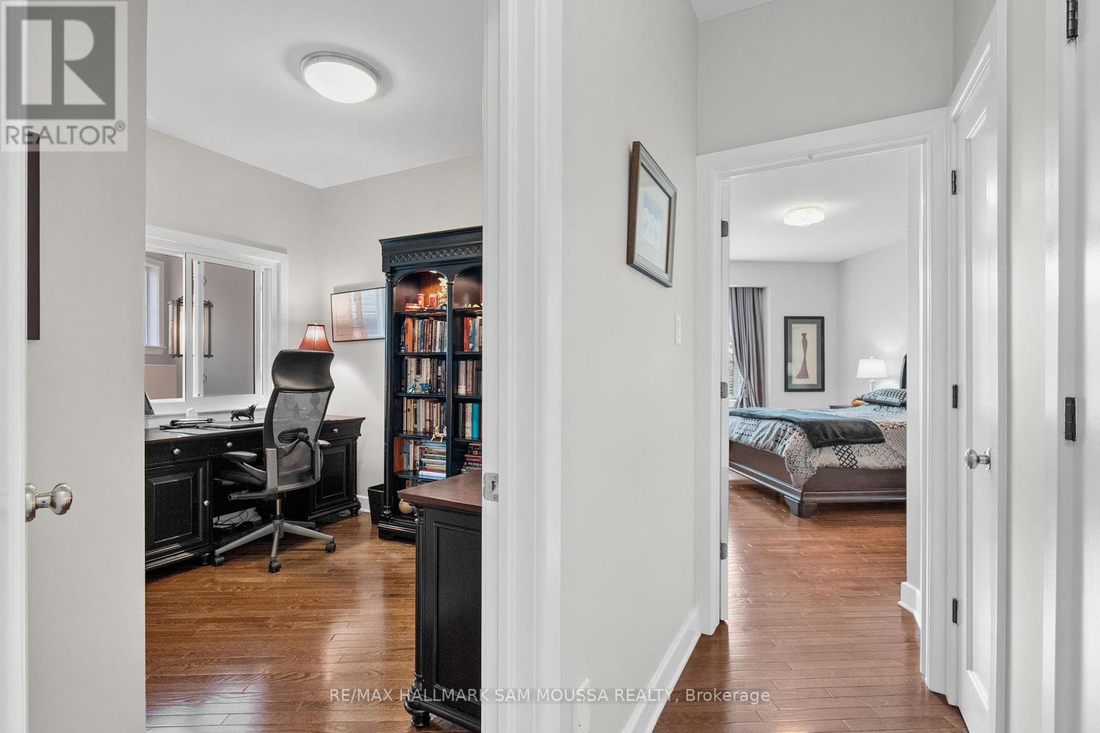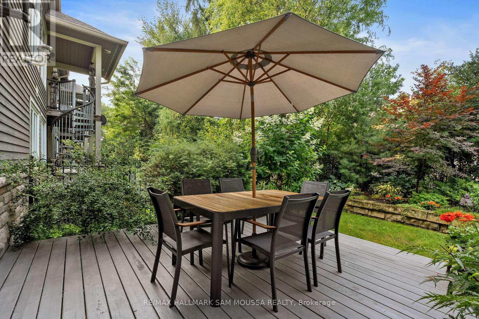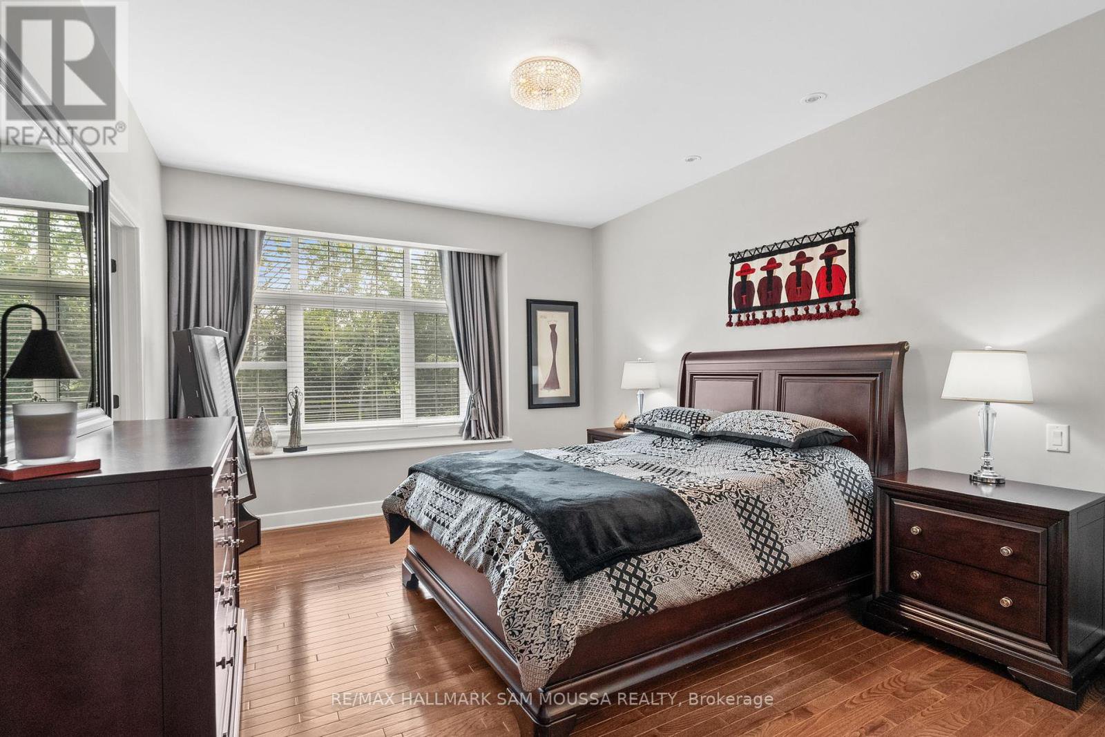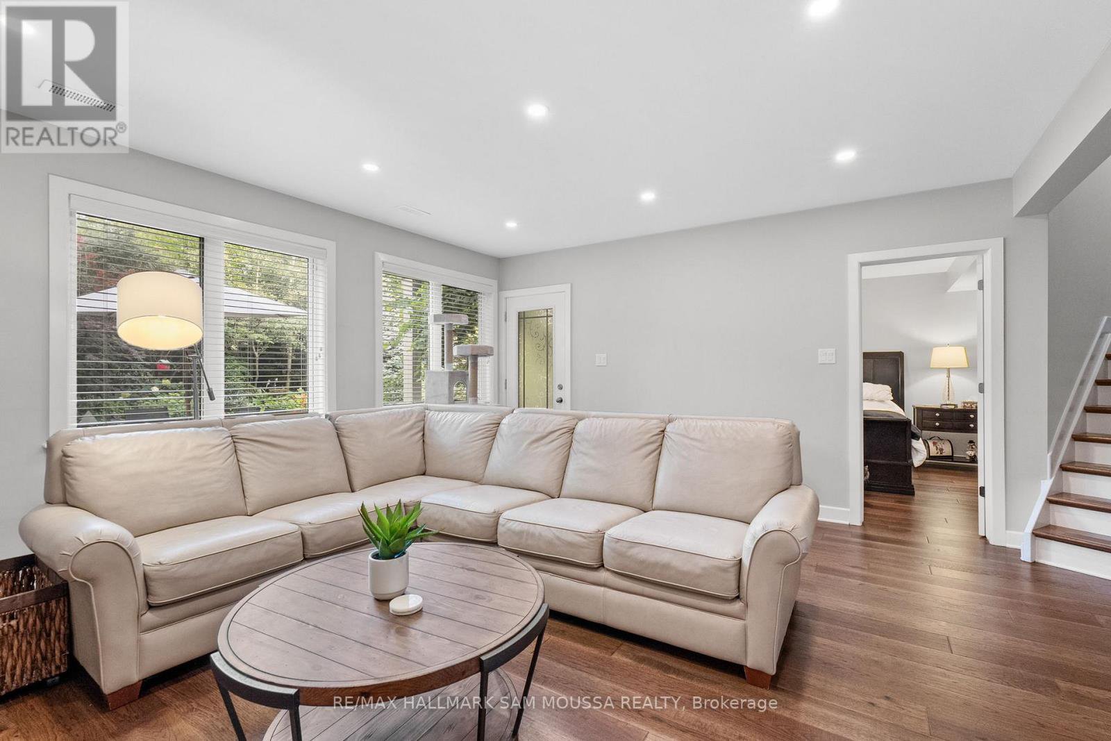 Tucked away in the sought-after enclave of Marshes Village, this beautifully upgraded end-unit townhome offers refined living. Thoughtfully maintained and tastefully enhanced. A foyer with Italian tile sets the tone, opening to open-concept living and dining spaces. Soaring ceilings, expansive windows, and a stone fireplace create a warm atmosphere. The kitchen is a standout, granite counters, stainless steel appliances, and generous cabinetry, all designed with beauty and practicality in mind. A dedicated office, renovated powder room, and laundry area enhance the main level. Off the main living area, a screened-in porch with a gas hookup for BBQ overlooks the back garden. The primary suite is a true retreat, with a large custom walk-in closet and a stunning spa-inspired ensuite. Upstairs, a versatile loft with two closets and a full bath provides flexible living space, ideal for a guest suite or reading nook. Oak hardwood flooring runs throughout, including all three staircases. The finished walk-out lower level offers even more flexibility with a second family room, a spacious bedroom overlooking the garden, a walk-through closet, and a beautifully renovated full bath. This level also features floating oak flooring, adding to the comfort throughout. Outside, professional landscaping enhances the front and rear gardens, a large cedar deck and elegant stone patio provide the perfect backdrop for outdoor entertaining. Recent upgrades include new roof tiles and new wooden front steps. Situated next to the prestigious Marshes Golf Course and just minutes from Kanata Norths high-tech hub, the Brookstreet Hotel, DND, the 417, local shops and restaurants, the Richcraft Rec Complex, and nearby pickleball courts, this home offers a luxurious lifestyle in one of the city's most exclusive communities. Marshes Village Homeowners Association fee is $196/month covers road snow removal, landscaping, general maintenance, audit and insurance with a reserve fund for future needs.