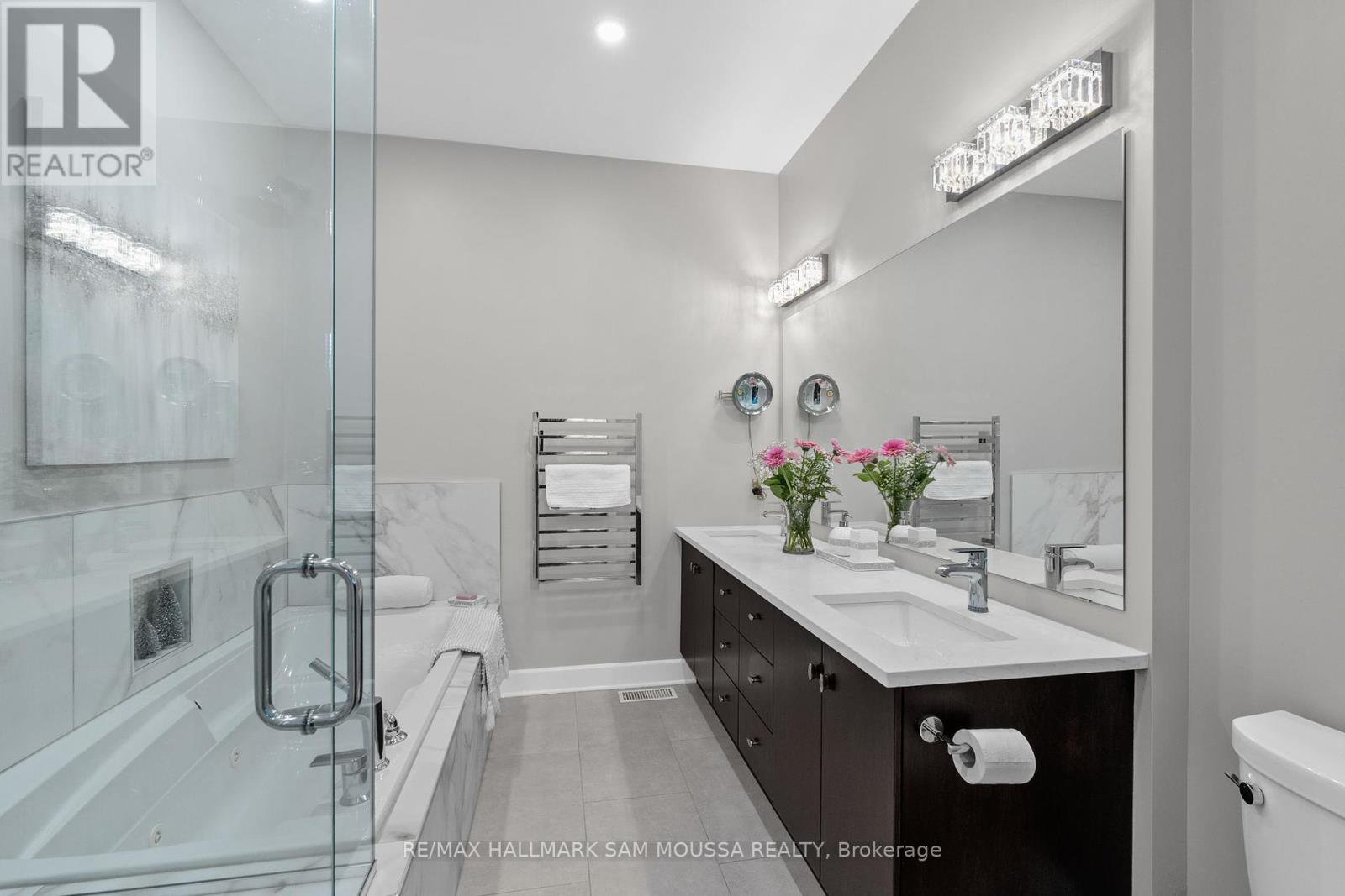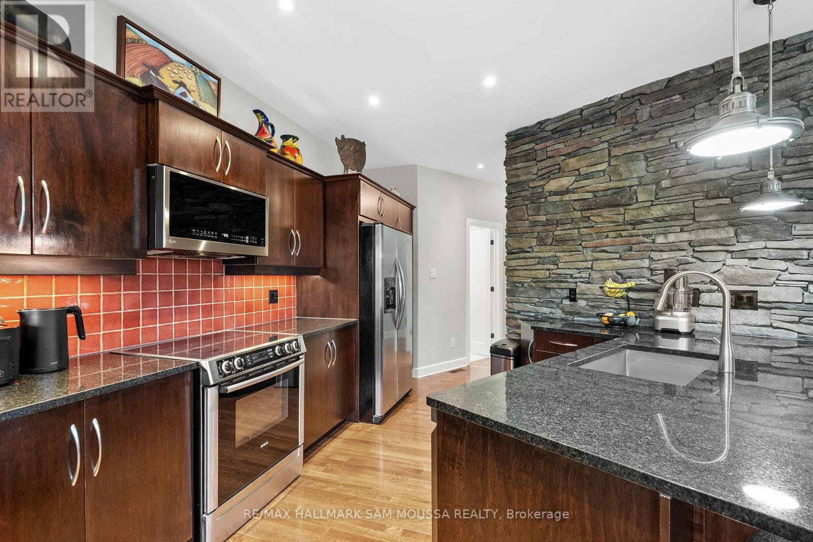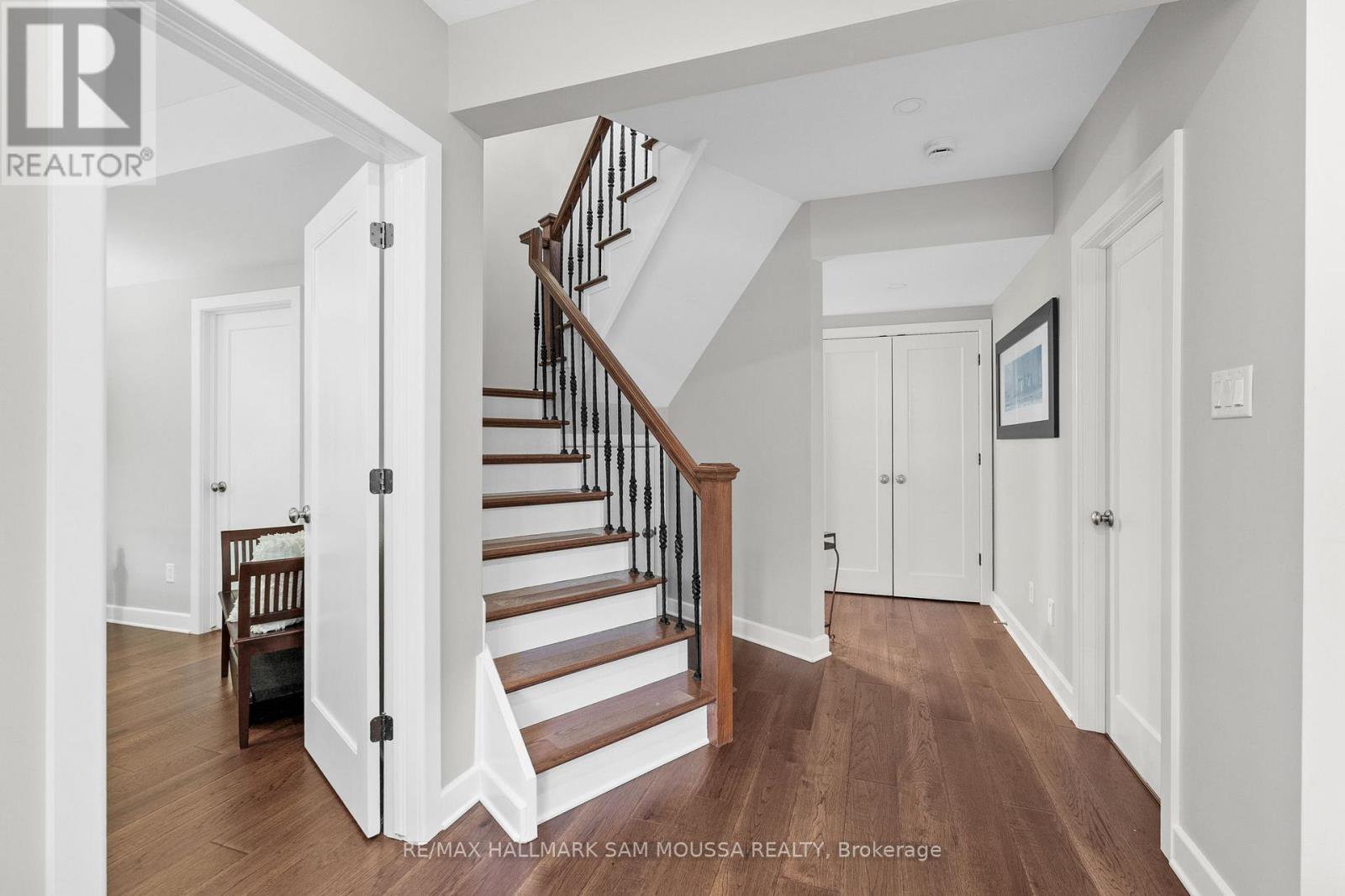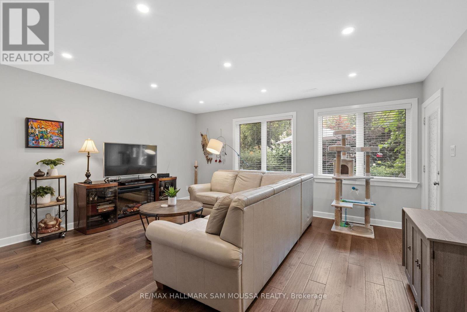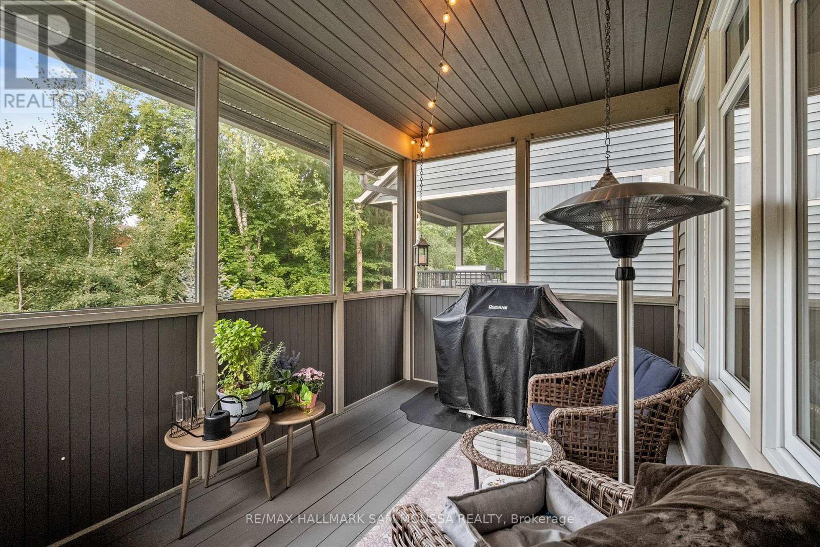 Tucked away in the sought-after enclave of Marshes Village, this beautifully upgraded end-unit townhome offers refined living. Thoughtfully maintained and tastefully enhanced. A foyer with Italian tile sets the tone, opening to open-concept living and dining spaces. Soaring ceilings, expansive windows, and a stone fireplace create a warm atmosphere. The kitchen is a standout, granite counters, stainless steel appliances, and generous cabinetry, all designed with beauty and practicality in mind. A dedicated office, renovated powder room, and laundry area enhance the main level. Off the main living area, a screened-in porch with a gas hookup for BBQ overlooks the back garden. The primary suite is a true retreat, with a large custom walk-in closet and a stunning spa-inspired ensuite. Upstairs, a versatile loft with two closets and a full bath provides flexible living space, ideal for a guest suite or reading nook. Oak hardwood flooring runs throughout, including all three staircases. The finished walk-out lower level offers even more flexibility with a second family room, a spacious bedroom overlooking the garden, a walk-through closet, and a beautifully renovated full bath. This level also features floating oak flooring, adding to the comfort throughout. Outside, professional landscaping enhances the front and rear gardens, a large cedar deck and elegant stone patio provide the perfect backdrop for outdoor entertaining. Recent upgrades include new roof tiles and new wooden front steps. Situated next to the prestigious Marshes Golf Course and just minutes from Kanata Norths high-tech hub, the Brookstreet Hotel, DND, the 417, local shops and restaurants, the Richcraft Rec Complex, and nearby pickleball courts, this home offers a luxurious lifestyle in one of the city's most exclusive communities. Marshes Village Homeowners Association fee is $196/month covers road snow removal, landscaping, general maintenance, audit and insurance with a reserve fund for future needs.
