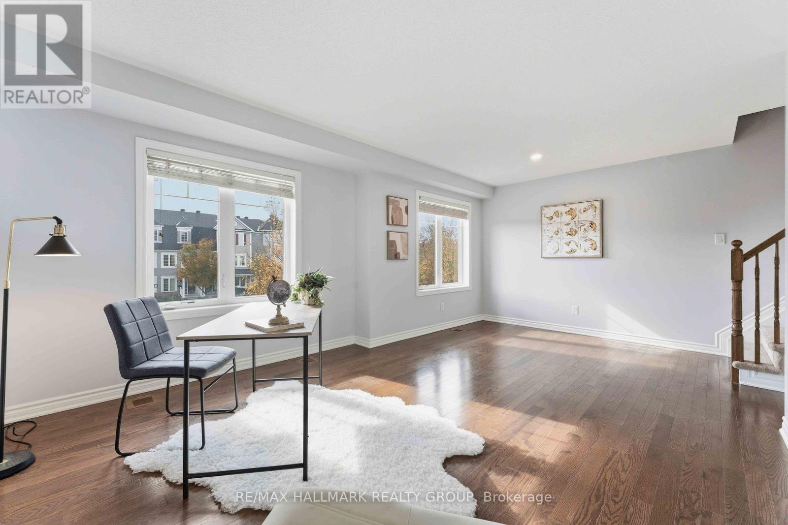 Welcome to this executive end-unit 3-storey townhome in the family-friendly community of Fairwinds, perfectly positioned across from a park. The main level features a guest suite with its own 3-piece bathroom, ideal for visitors, extended family, or a comfortable home office. The second level showcases a bright, open-concept kitchen, dining, and living area, filled with natural light, and opening onto a huge balcony above the double garage. A convenient powder room completes this level. Upstairs, you'll find three spacious bedrooms, including a primary suite with a walk-in closet, an ensuite with a large shower, and another full bathroom for family or guests. Conveniently located steps from several parks, public transportation, and just minutes to Kanata Centrum, Costco, Kanata Technology Park, DND Headquarters, and Canadian Tire Centre.
