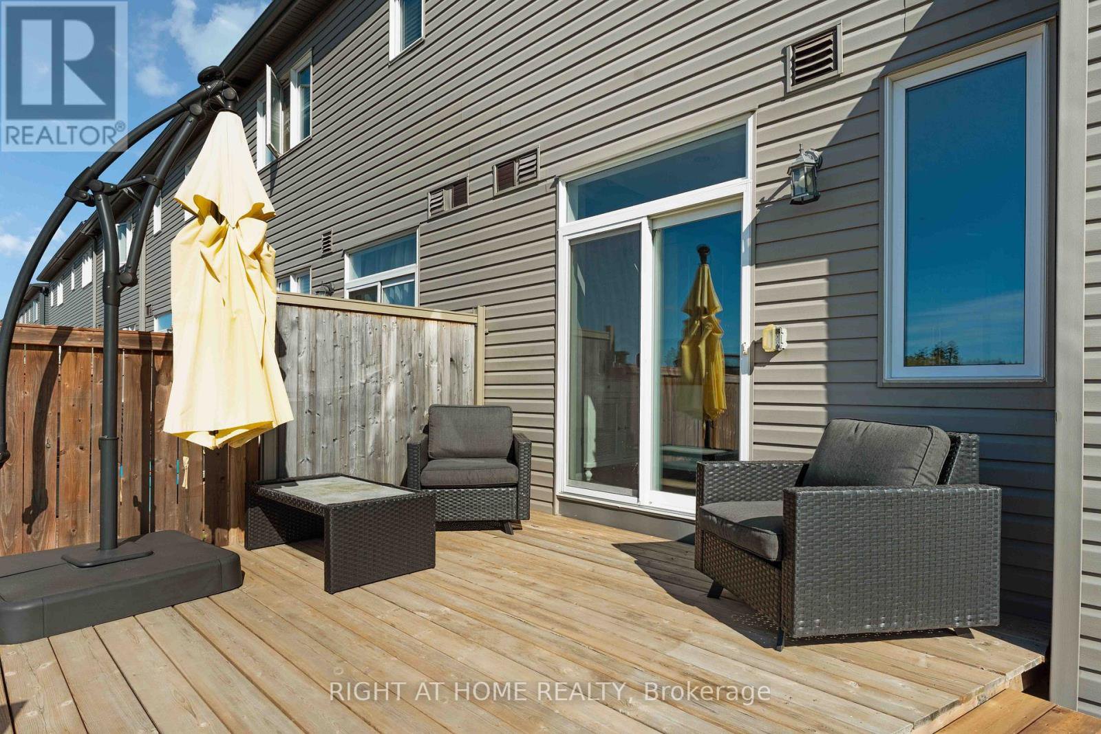 Ultra Rare opportunity. This stunning, end-unit 4-bedroom, 3-bathroom townhome sits on an oversized pie-shaped lot, siding onto a path, with no rear neighbours. Over $30k in builder upgrades. Properties like this don't become available very often! Ideally located in the heart of the community, you're just a short walk to schools, shopping, parks, and amenities, everything right at your doorstep. Step inside to a bright and welcoming foyer and a stylish powder room. Mud room with convenient garage access. The open-concept main level impresses with 9 ceilings, elegant hardwood floors, a natural gas fire place and modern pot lights throughout. Perfect for entertaining, the spacious living and dining area flows into a gourmet kitchen featuring a large island, quartz countertops, stainless steel appliances and a cozy breakfast nook. Upstairs, discover four generous sized bedrooms, a modern family bath, and the convenience of second-floor laundry. The primary suite offers an en-suite and walk-in closet. The fully finished lower level expands living space with a large family room with built in speakers, a rough-in for a 4th bathroom and ample storage. Private fully fenced backyard, with a hot tub, expansive deck, and no easement from neighbours! Perfect for relaxing or entertaining in complete privacy. This beautiful home combines comfort, style, and location perfect for growing families looking to settle in one of Stittsville's most desirable areas. North-Easterly orientation provides loads of natural sunlight all day long!