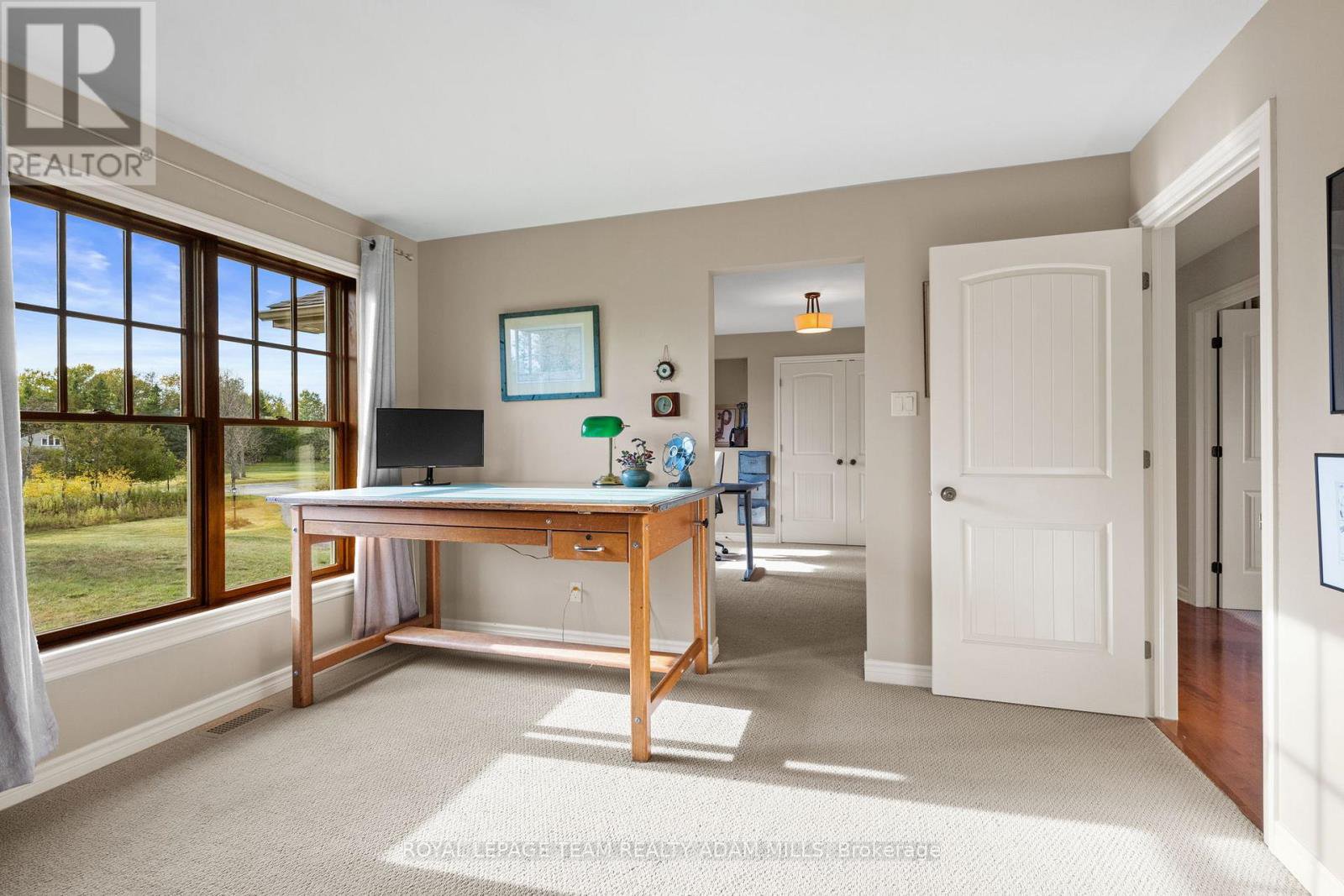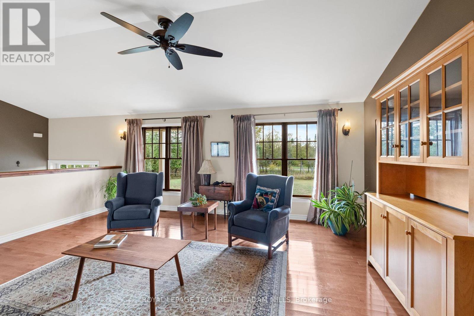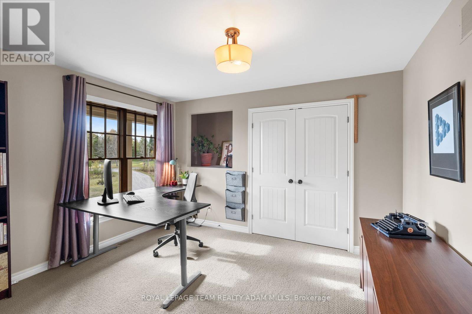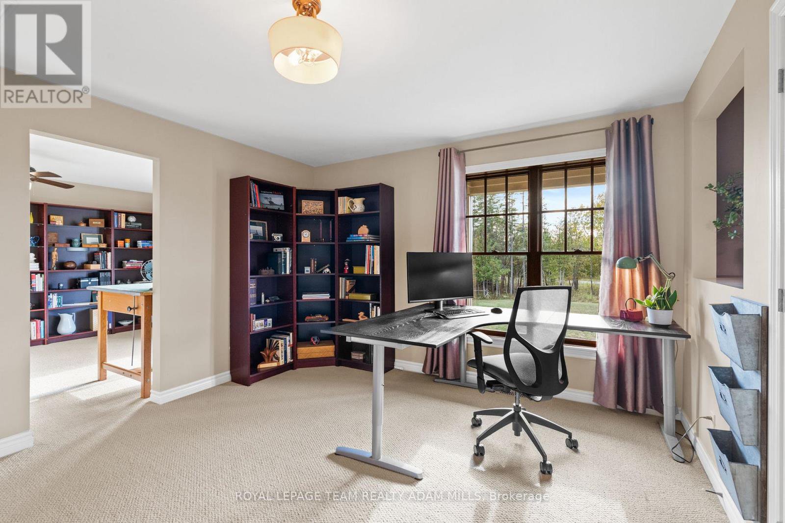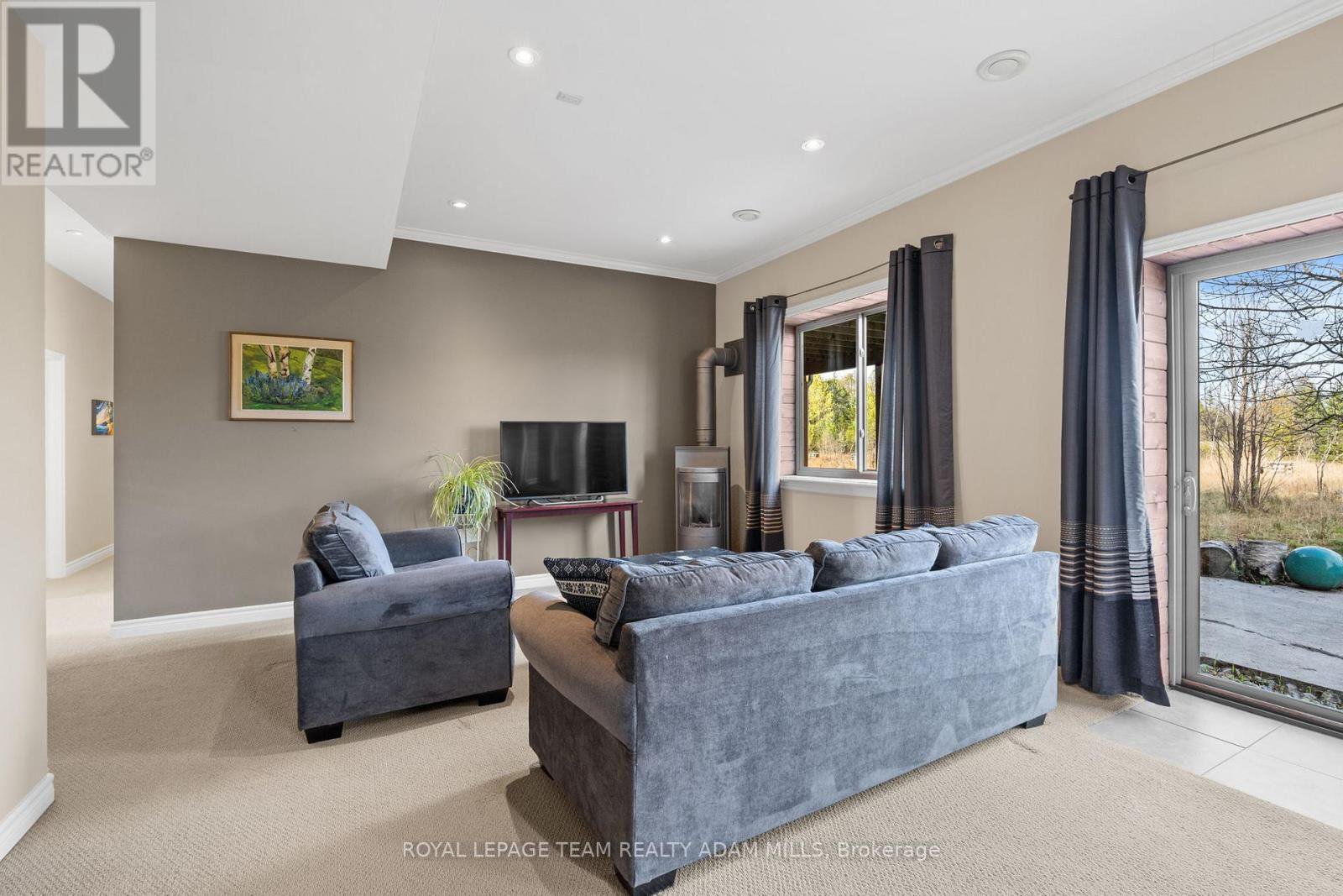 Experience the best of country living in beautiful Dunrobin! Nestled on over 3 acres of private, tree-lined land, this custom-built 2008 bungalow offers the perfect blend of peaceful rural living and modern comfort. With a 2-car attached garage plus a detached 2-car shop/garage, there's ample space for vehicles, hobbies, or storage. Step inside to a bright, open-concept layout featuring a spacious kitchen with stainless steel appliances, ample cabinetry, and sliding doors leading to the back deck. Off the deck, you'll love the screened-in porch, the perfect spot to enjoy your morning coffee while overlooking the natural beauty of your property. The main level also includes a sun drenched primary suite complete with double closets and a 4-piece en-suite featuring double sinks and a glass shower. Two additional bedrooms (currently configured as home offices with an adjoining doorway) can easily be converted back to separate bedrooms to suit your family's needs. The walkout lower level offers incredible versatility with a cozy fireplace, direct access to the garage, well appointed laundry room, and two large bonus rooms ideal for hobbies, home gyms, or offices. The additional bedroom on this level can easily be converted into two rooms, offering flexible living options. Outside, enjoy the sights and sounds of nature, deer and wild turkeys are known to wander through, while benefiting from peace of mind with a Generac generator for backup power. Located in a private, mature country neighbourhood just minutes from the Ottawa River, this property offers the perfect retreat for those seeking space, serenity, and a true connection to nature without sacrificing proximity to city conveniences, speaking of connection Bell Fibe and Rogers Fibre are also available at 213 Wagon.