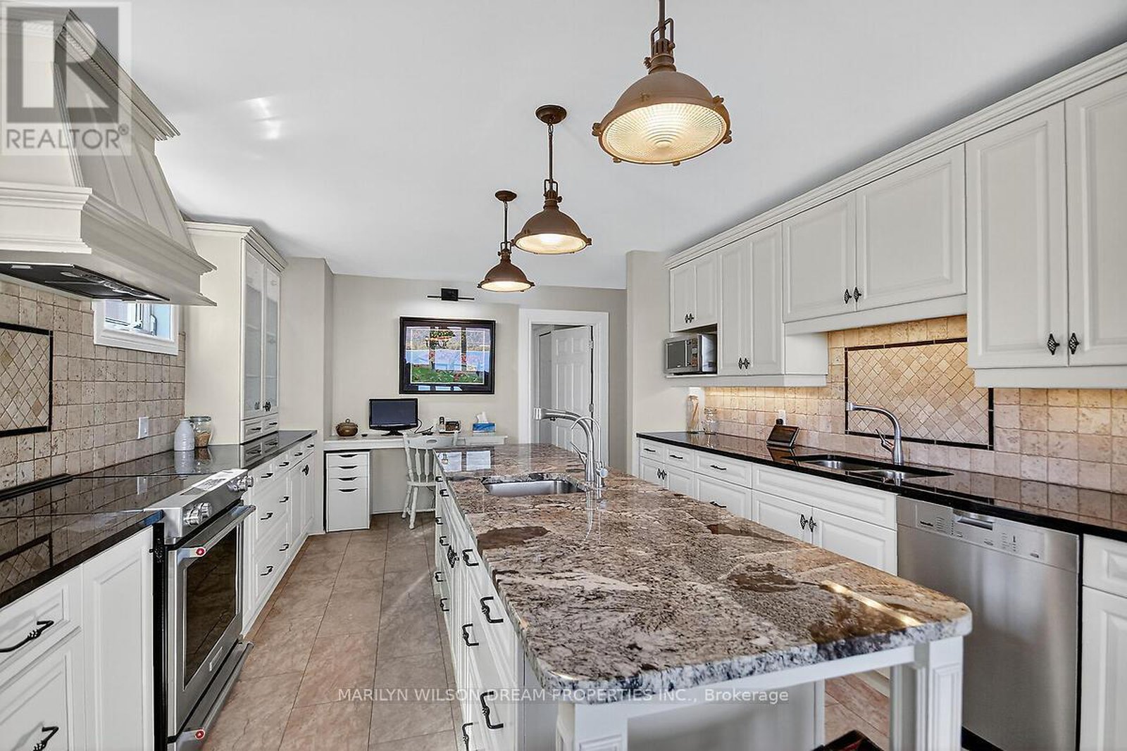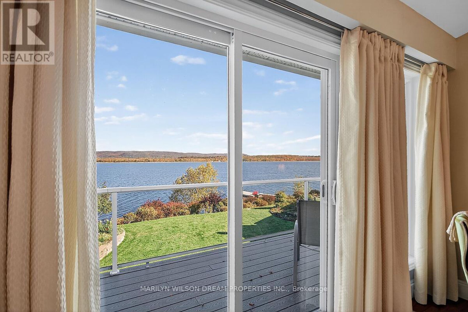 Charming waterfront residence just minutes from Kanata! Spectacular views overlooking the Ottawa River and the Gatineau Hills. Extensively updated bungalow with lower level walkout. 105' waterfront with sought after deep waterfront for boating & swimming. Two main level bedrooms plus two on the walkout level and 3 baths. Exceptional views from all principal rooms. Living room with wood burning fireplace & cathedral ceilings. Stunning gourmet kitchen with luxury cabinets, granite counters & 9' island. New fridge & stove in 2025. Principle bedroom with cathedral ceiling, newer composite patio, his/her walk in & updated ensuite. New walk-in shower, cabinetry, quartz countertop and new toilet in 2025. Second bedroom currently used as office. Curved open staircase to lower level. A huge stone wood burning fireplace creates an inviting atmosphere to this walkout level. Family room also features a wet bar and patio doors to yard. Two additional bedrooms & 3 piece bath. Massive 55' x 26' BONUS rec room was used as an Art studio & teaching facility. Heated separately & has a private entrance, as well as main house access. Great for studio, in-law suite, home business, games room, gym, party room, etc. One could also consider Airbnb rentals. Mud room off of oversized 2.5 car garage. Newer windows & patio doors. Impeccably maintained home. Full list of updates attached. A rural getaway minutes to the marina, Marshes golf, Kanata hi-tech, CTC, etc. No need for a cottage! 24 hours notice for showings please.