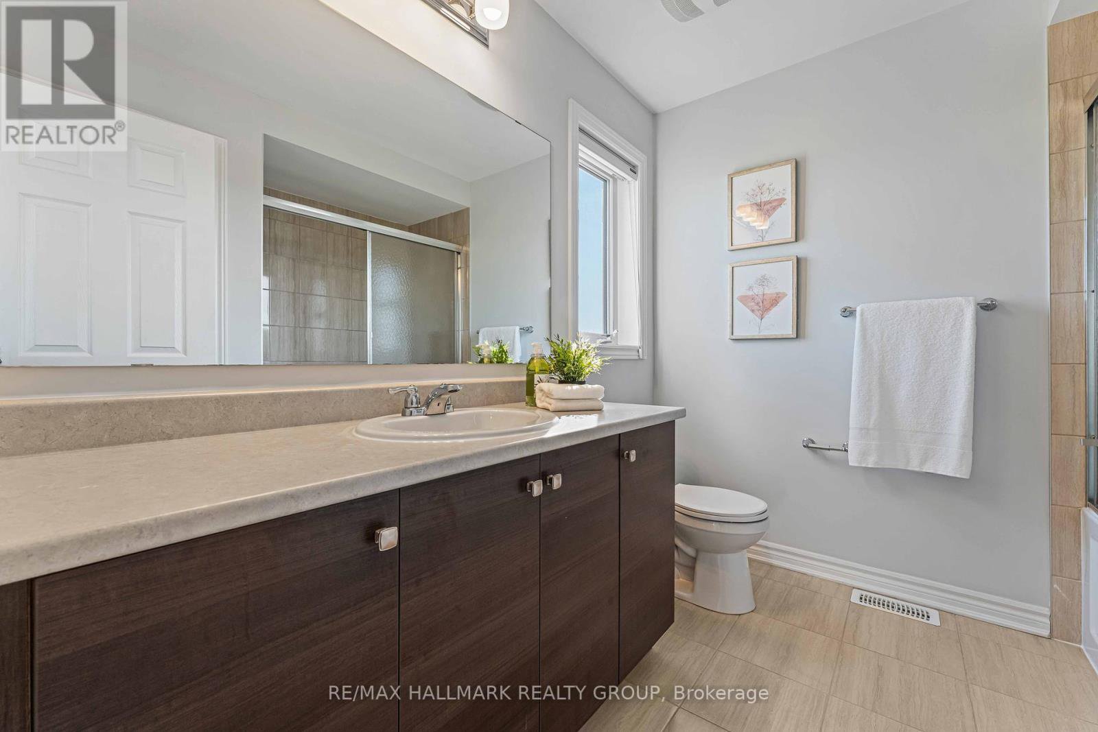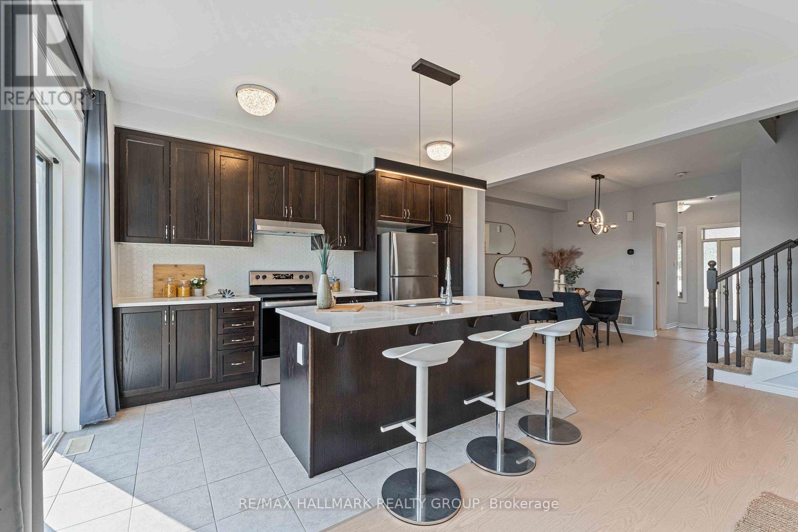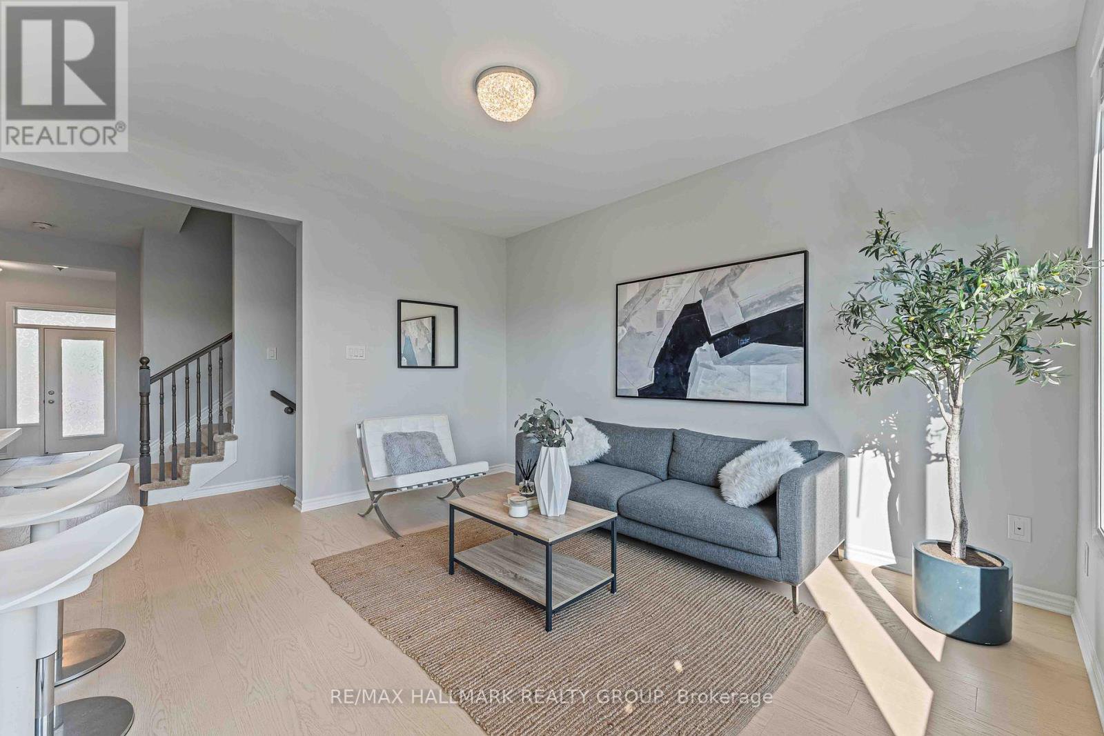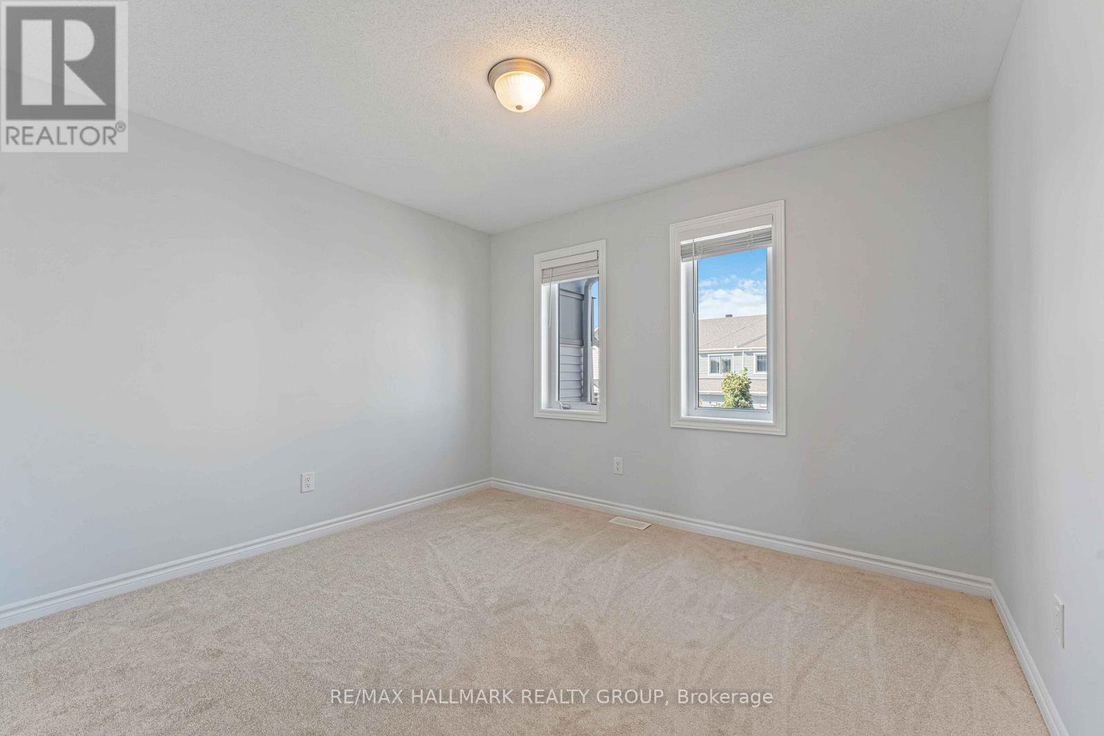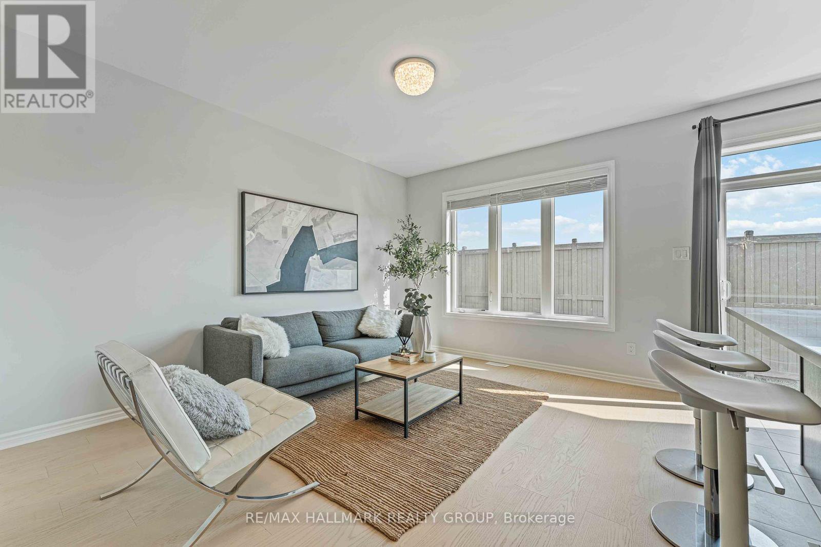 Welcome to 402 Edgevalley Court! This bright, stylish 3-bed, 2.5-bath townhome offers no direct rear neighbours and is quietly nestled on a cul-de-sac in Fairwinds, Stittsville. Built in 2020, it features 9-ft ceilings, brand-new main-floor flooring, and an open-concept kitchen, living, and dining area perfect for everyday living and entertaining. Upstairs, enjoy a spacious primary suite with a walk-in closet and ensuite, plus two additional bedrooms and a full bath. Recent updates include new carpet and fresh paint. The finished basement adds flexible space for a rec room, gym, or office. Located minutes from Costco, Tanger Outlets, Kanata Tech Park, DND HQ, and major transit. Move-in ready and beautifully maintained!