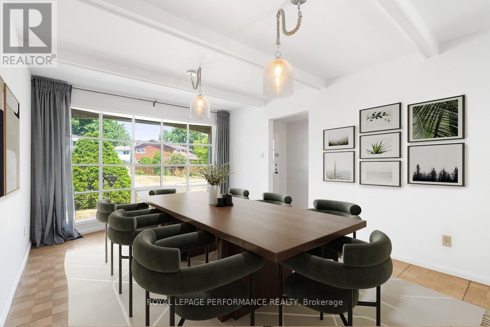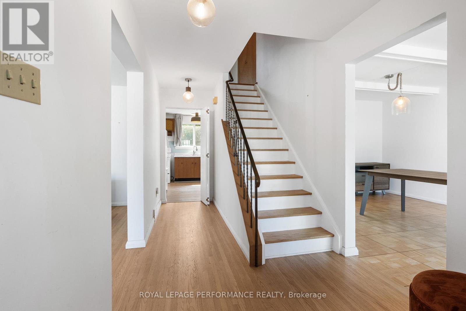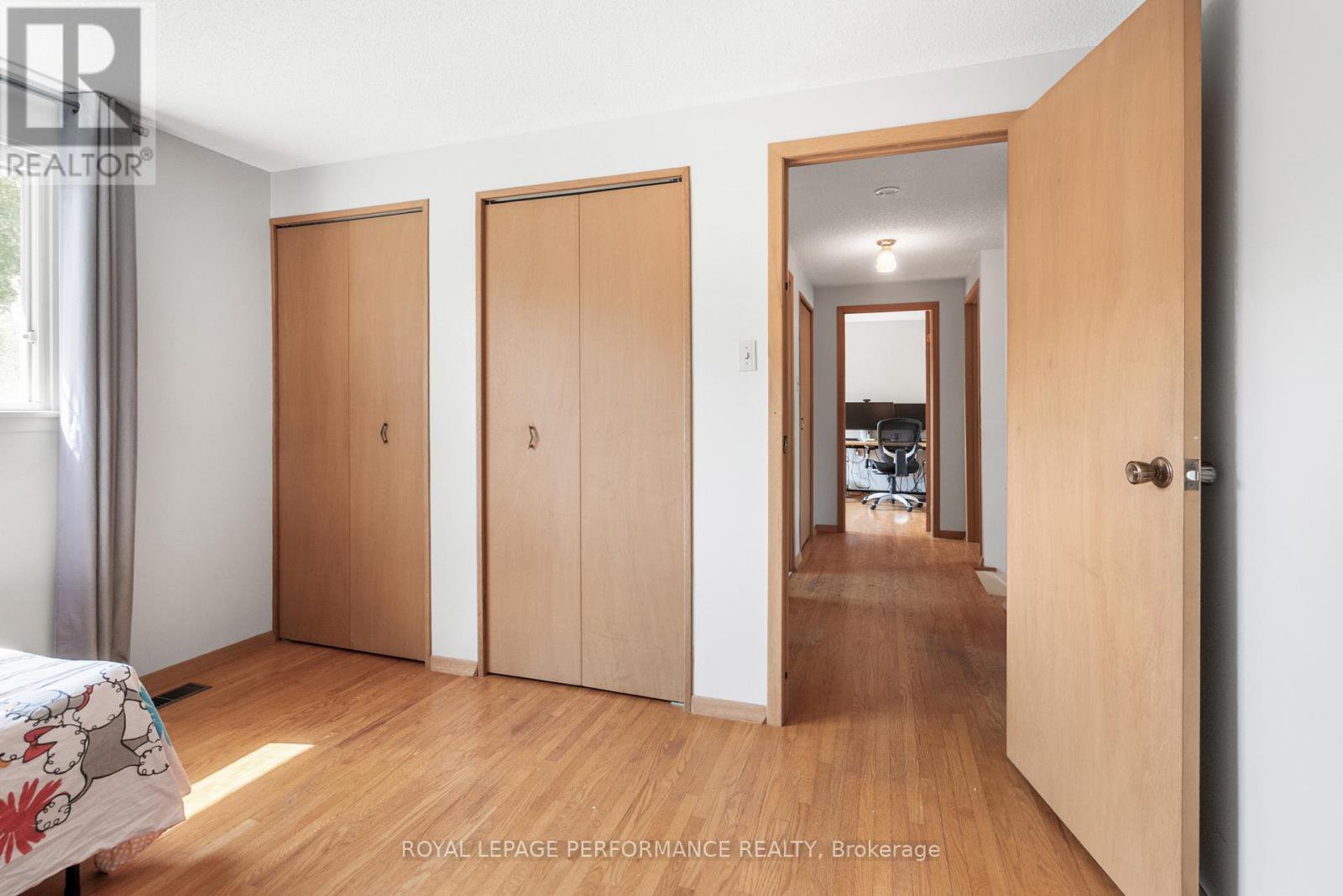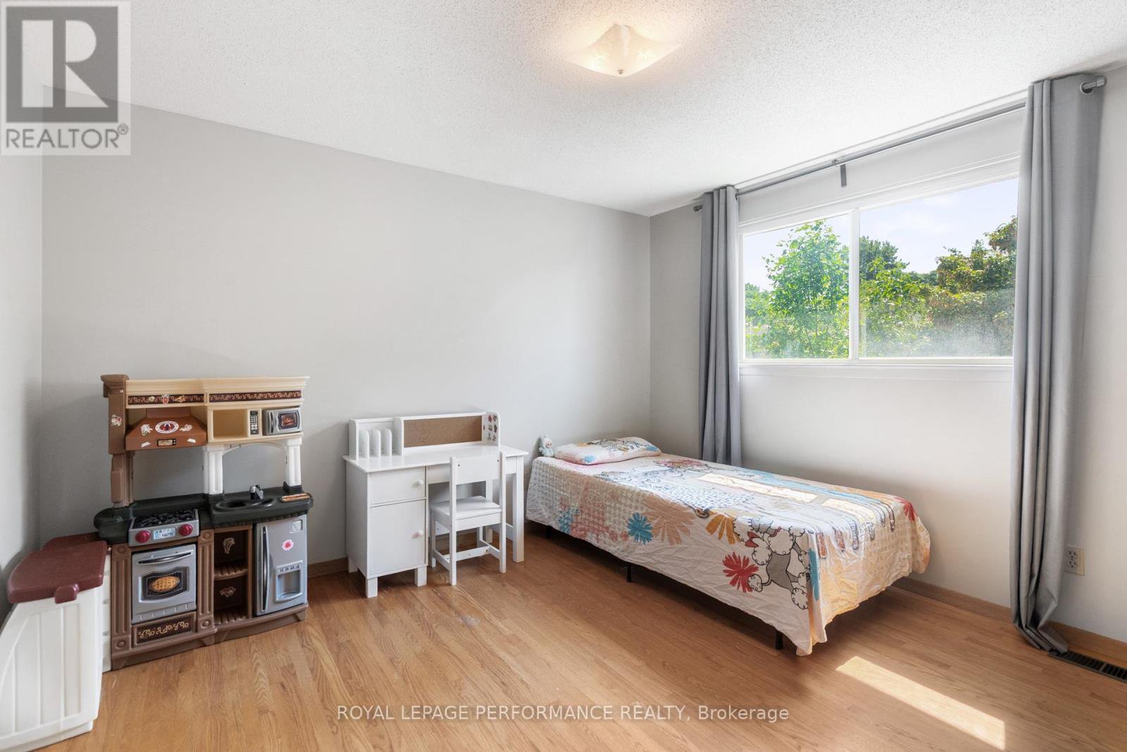 Welcome to this spacious 4-bedroom home ideally situated on a quiet, family-friendly crescent in the heart of Blackburn Hamlet. This two-storey property offers a functional and versatile layout perfect for growing families.The main floor features a bright and inviting family room, a dedicated dining area for hosting, and a cozy living room ideal for everyday relaxation. A convenient powder room and a side entrance to the private yard add practicality to the space. The kitchen area flows well into the backyard, where you'll find a serene, hedged oasis surrounded by mature trees and a covered patio area, perfect for outdoor dining, play, or quiet retreat. The lot is slightly pie shaped. Upstairs, you'll find four generously sized bedrooms, each with good closet space, and a full bathroom. The lower level offers a clean, unfinished basement ready for your customization, whether it be a rec room, home gym, or workshop. Located within walking distance to schools, parks, shopping, and major transit routes, this home offers the perfect blend of suburban peace and urban convenience | Rather than purchasing a home at a higher price point with upgrades that aren't your taste or quality, consider this opportunity to purchase a home that is currently move in ready, where you can update according to your own preferences & timeline | Recent updates & maintenance includes: hardwood floors sanded [2023], removal of the ceiling stipple on the main floor [2023], some light fixtures, removal of the wood panelling & old insulation in the basement [2023], paint [2022], thermostat updated, gas fireplace capped & removed from the living room (where large dining table is in the photos), duct cleaning, annual furnace & AC inspections/servicing, shower head replaced. *Some photos have been virtually staged.