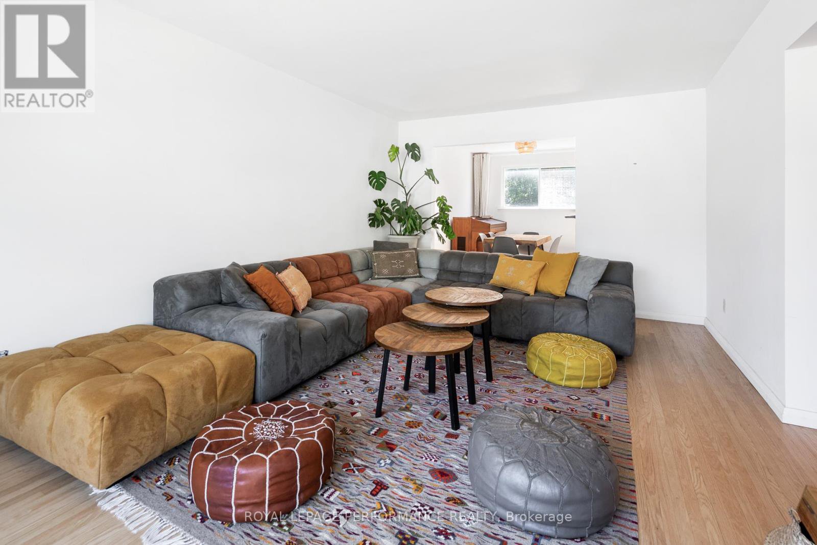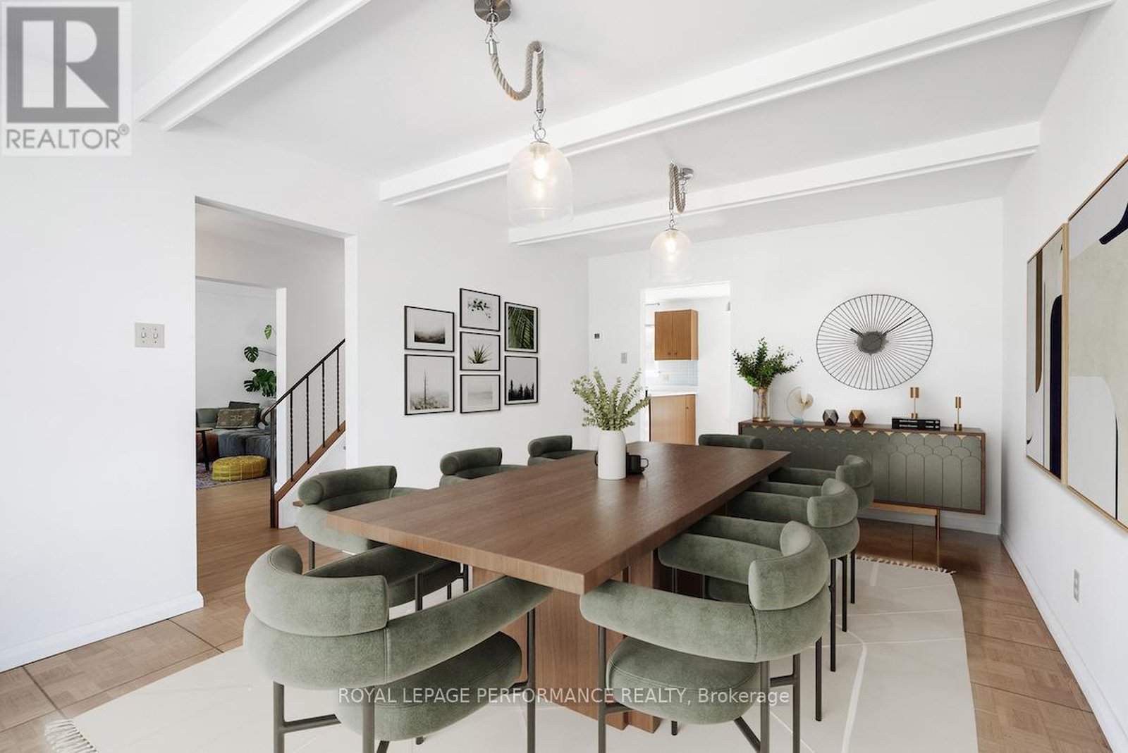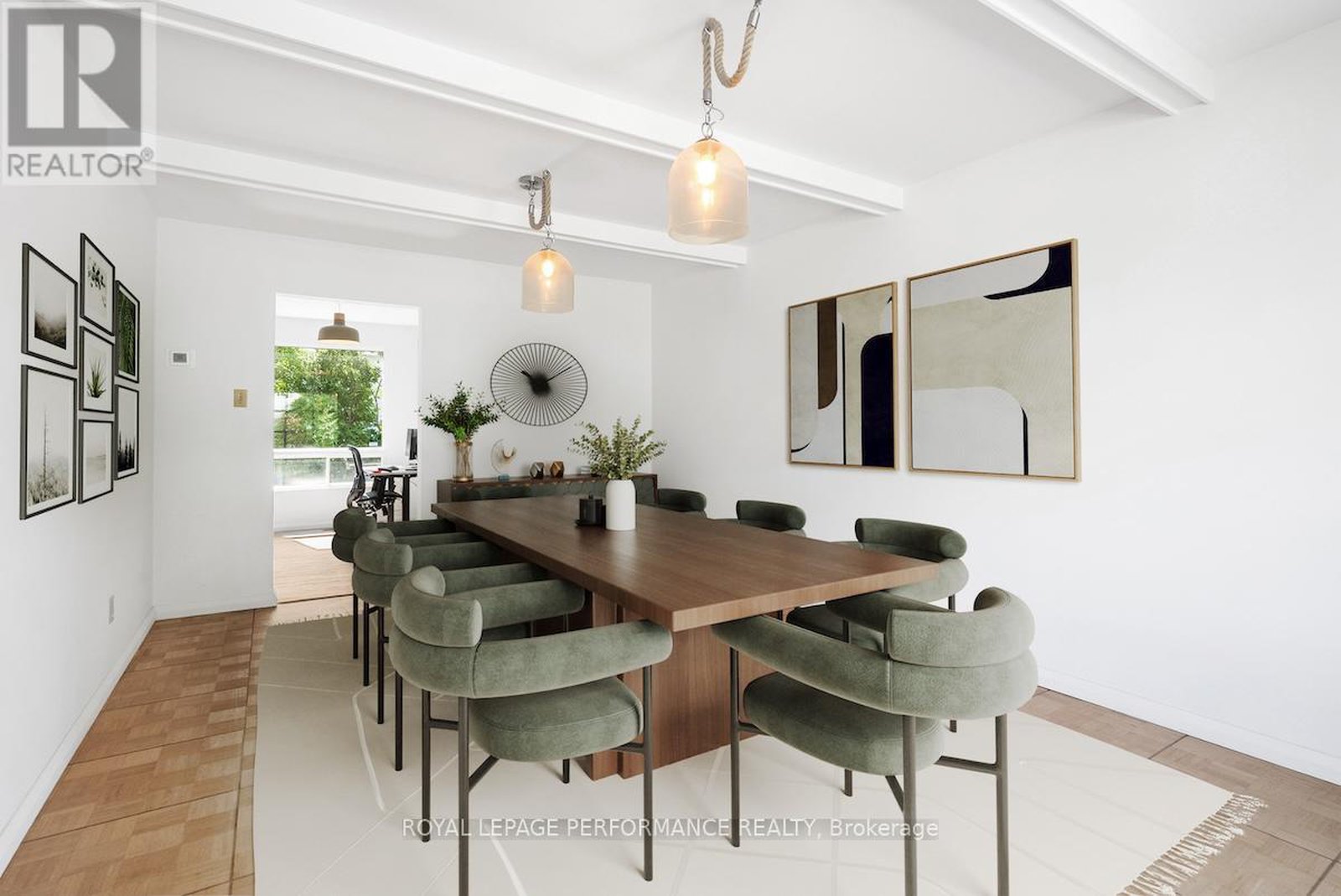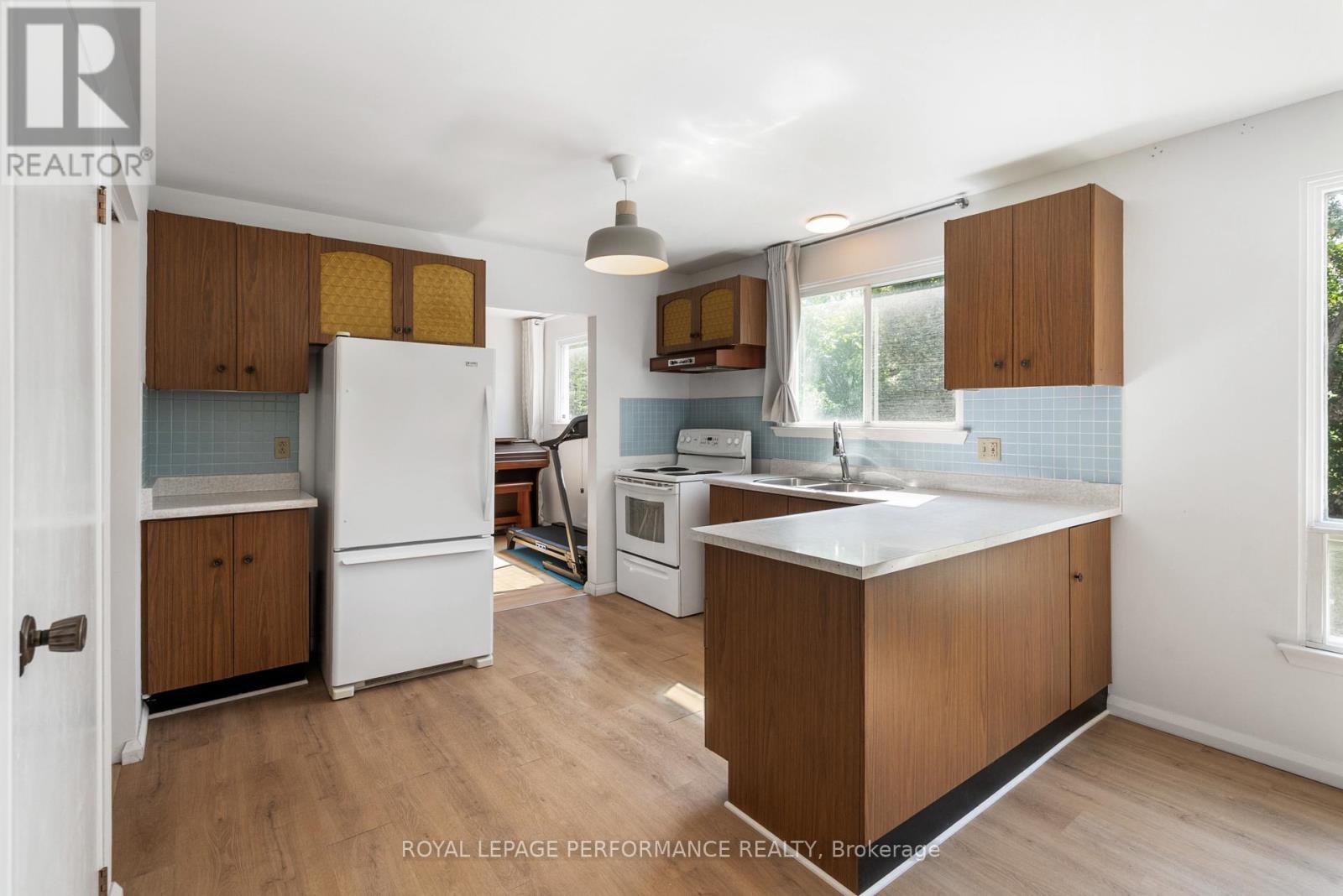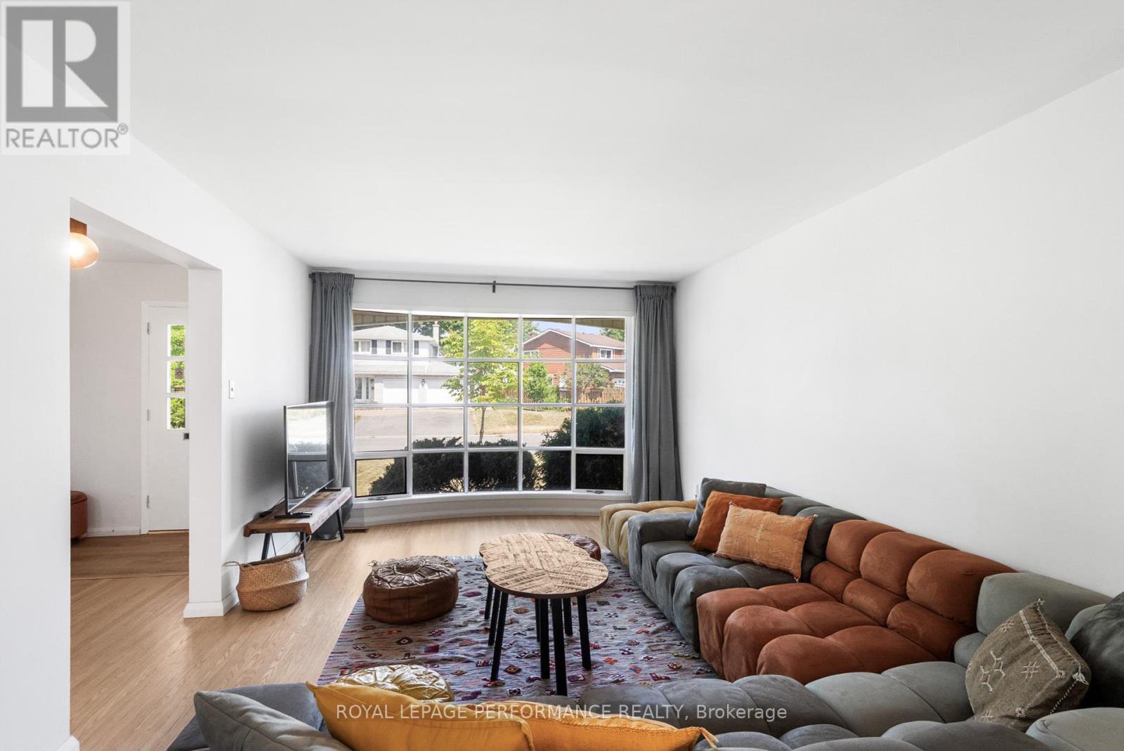 Welcome to this spacious 4-bedroom home ideally situated on a quiet, family-friendly crescent in the heart of Blackburn Hamlet. This two-storey property offers a functional and versatile layout perfect for growing families.The main floor features a bright and inviting family room, a dedicated dining area for hosting, and a cozy living room ideal for everyday relaxation. A convenient powder room and a side entrance to the private yard add practicality to the space. The kitchen area flows well into the backyard, where you'll find a serene, hedged oasis surrounded by mature trees and a covered patio area, perfect for outdoor dining, play, or quiet retreat. The lot is slightly pie shaped. Upstairs, you'll find four generously sized bedrooms, each with good closet space, and a full bathroom. The lower level offers a clean, unfinished basement ready for your customization, whether it be a rec room, home gym, or workshop. Located within walking distance to schools, parks, shopping, and major transit routes, this home offers the perfect blend of suburban peace and urban convenience | Rather than purchasing a home at a higher price point with upgrades that aren't your taste or quality, consider this opportunity to purchase a home that is currently move in ready, where you can update according to your own preferences & timeline | Recent updates & maintenance includes: hardwood floors sanded [2023], removal of the ceiling stipple on the main floor [2023], some light fixtures, removal of the wood panelling & old insulation in the basement [2023], paint [2022], thermostat updated, gas fireplace capped & removed from the living room (where large dining table is in the photos), duct cleaning, annual furnace & AC inspections/servicing, shower head replaced. *Some photos have been virtually staged.