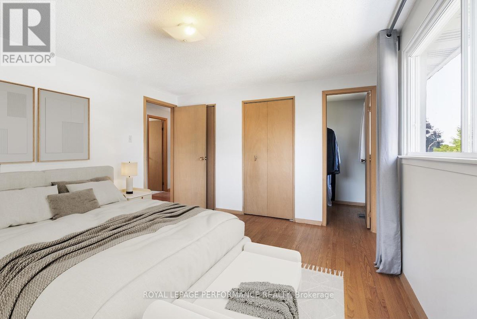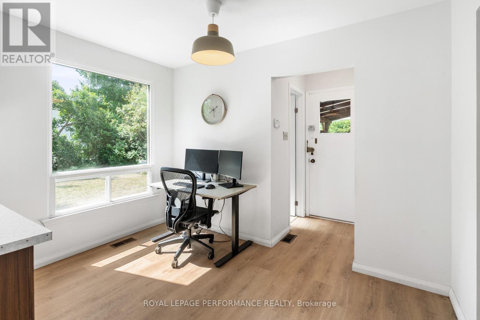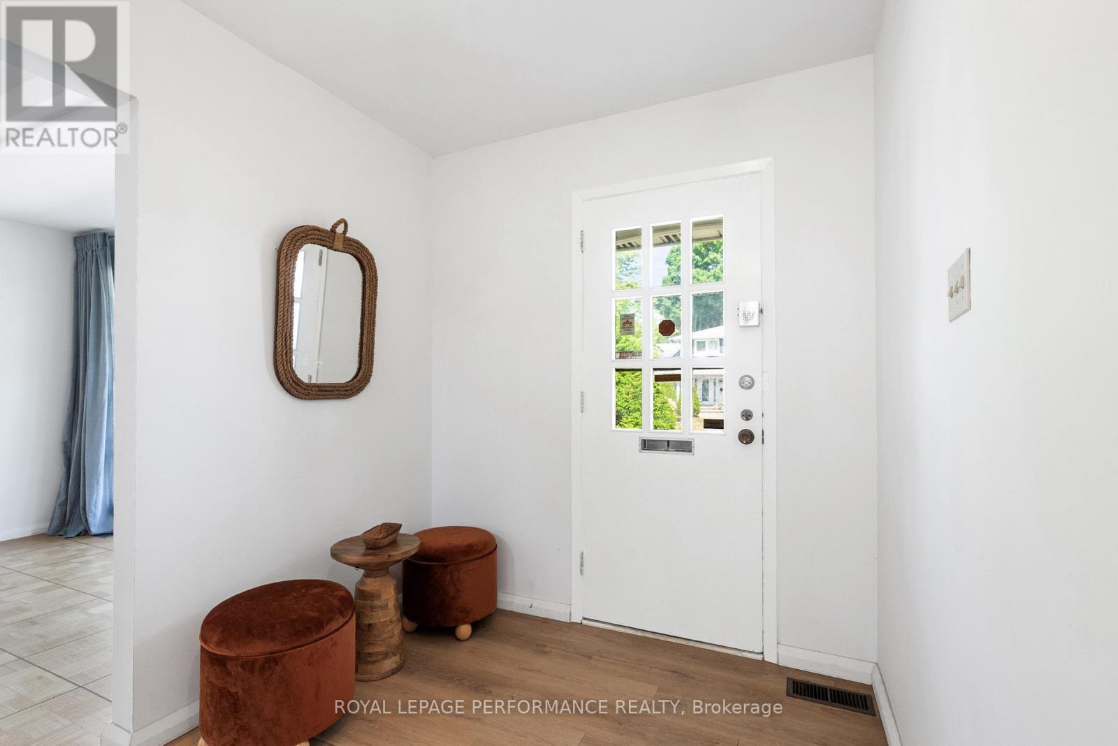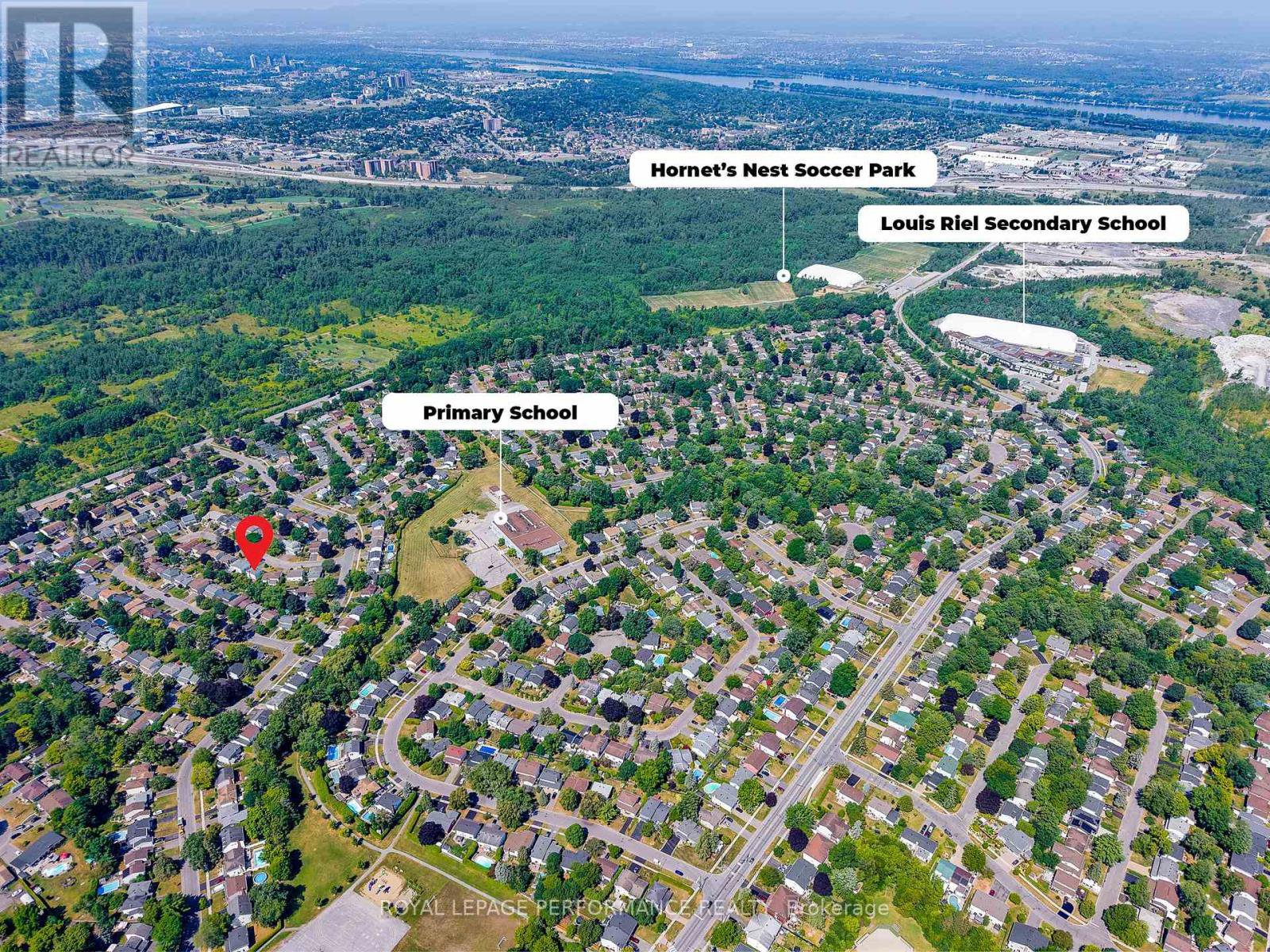 Welcome to this spacious 4-bedroom home ideally situated on a quiet, family-friendly crescent in the heart of Blackburn Hamlet. This two-storey property offers a functional and versatile layout perfect for growing families.The main floor features a bright and inviting family room, a dedicated dining area for hosting, and a cozy living room ideal for everyday relaxation. A convenient powder room and a side entrance to the private yard add practicality to the space. The kitchen area flows well into the backyard, where you'll find a serene, hedged oasis surrounded by mature trees and a covered patio area, perfect for outdoor dining, play, or quiet retreat. The lot is slightly pie shaped. Upstairs, you'll find four generously sized bedrooms, each with good closet space, and a full bathroom. The lower level offers a clean, unfinished basement ready for your customization, whether it be a rec room, home gym, or workshop. Located within walking distance to schools, parks, shopping, and major transit routes, this home offers the perfect blend of suburban peace and urban convenience | Rather than purchasing a home at a higher price point with upgrades that aren't your taste or quality, consider this opportunity to purchase a home that is currently move in ready, where you can update according to your own preferences & timeline | Recent updates & maintenance includes: hardwood floors sanded [2023], removal of the ceiling stipple on the main floor [2023], some light fixtures, removal of the wood panelling & old insulation in the basement [2023], paint [2022], thermostat updated, gas fireplace capped & removed from the living room (where large dining table is in the photos), duct cleaning, annual furnace & AC inspections/servicing, shower head replaced. *Some photos have been virtually staged.