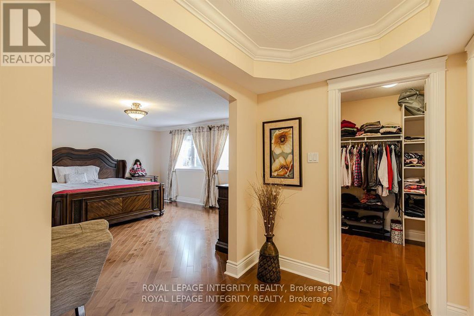 Your Private Backyard Sanctuary --A Rare Blend of Nature, Comfort & Style! This popular Monarch Maple Model sits on a premium pie-shaped lot backing onto protected green space in Stittsville's prestigious Traditions community. Lovingly maintained by the original owners, this 4-bedroom, 4-bathroom home exudes pride of ownership and boasts grand curb appeal. The landscaped front yard is a highlight of the neighborhood, setting the tone for the elegance that continues inside. Step into the open-to-above foyer and feel the warmth of hardwood floors, 9-ft ceilings, and crown molding throughout the main level. The open-concept living and dining rooms feature elegant tray ceilings, while the great room showcases a gas fireplace framed by a striking stone feature wall. The chef-inspired kitchen offers granite counters, high-end appliances, abundant cabinetry, and a large island with prep sink perfect for entertaining and everyday living. A main floor laundry and powder room add convenience. Upstairs, a maple staircase with iron spindles leads to a spacious loft retreat. The primary suite includes a walk-in closet and spa-like 5-piece ensuite. A second bedroom has its own ensuite and walk-in, while the third and fourth bedrooms share a Jack & Jill bath with individual walk-in closets. The private backyard oasis features landscaped gardens, interlock patio, a covered deck with electric awning, and no rear neighbors offering luxurious cottage-like living in the city! Move-in Ready!