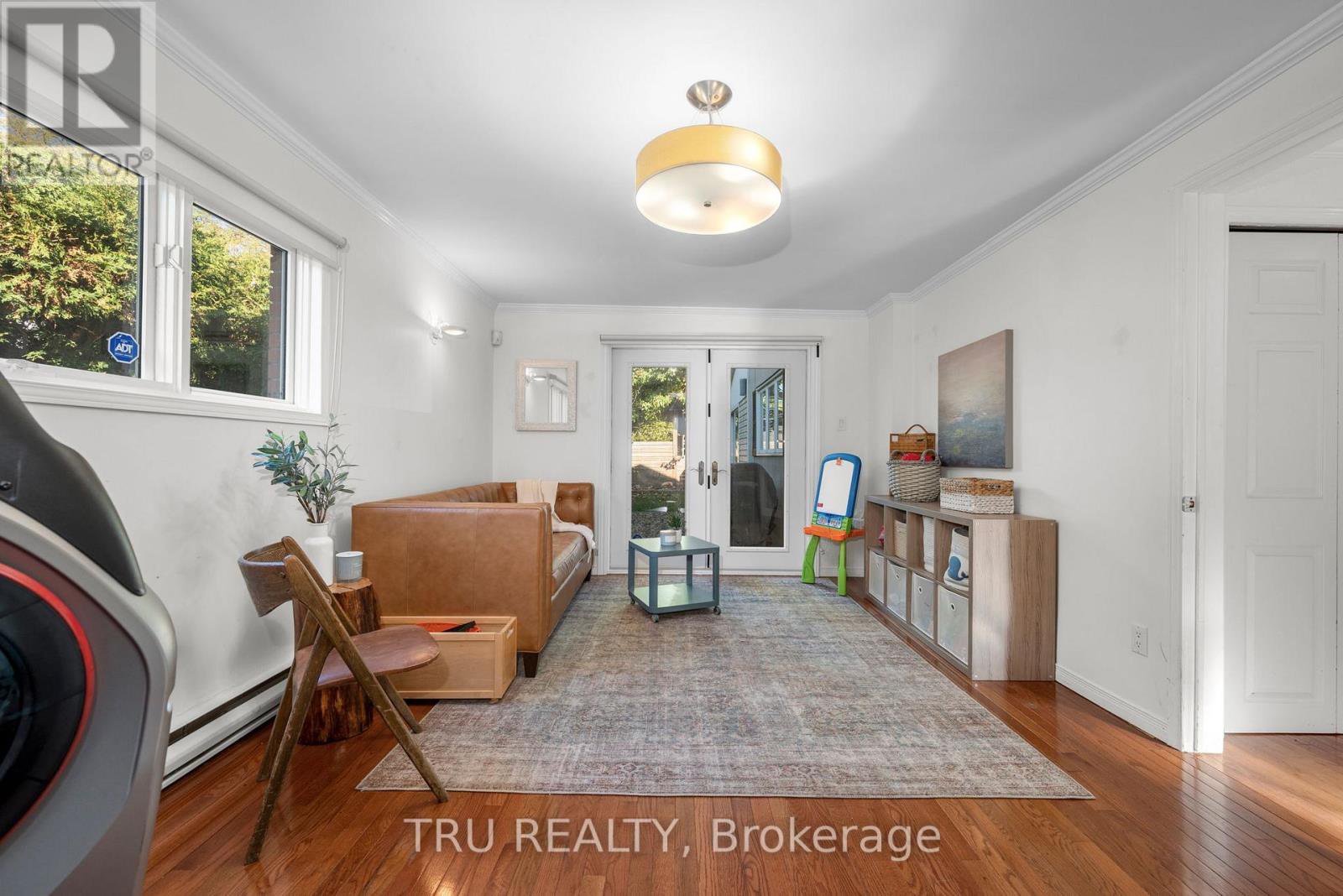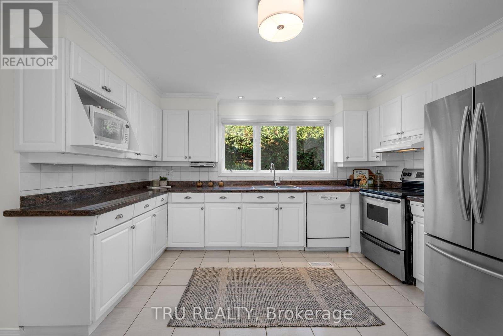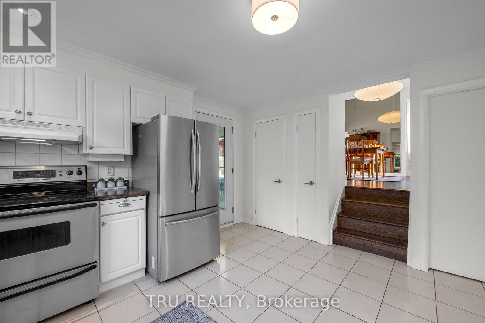 Welcome to 189 St. Laurent - a stylish and spacious side-split retreat, privately hidden behind a lush hedge in highly sought-after Manor Park! The thoughtfully redesigned landscaping offers exceptional curb appeal, complemented by a welcoming double-width driveway. Step inside to a bright and airy foyer with custom built-in storage and a convenient powder room. The generous eat-in kitchen provides abundant cabinetry, ample workspace, and direct flow into the inviting rear sunroom - the perfect spot for your morning coffee, surrounded by floor-to-ceiling sliding doors and natural light. The open-concept living and dining areas are anchored by a stunning vaulted ceiling, showcasing timeless mid-century modern character and ideal for entertaining. Upstairs, two well-sized bedrooms are thoughtfully placed at opposite ends of the home for added privacy, joined by a stylish main bathroom and a versatile office or nursery. The former garage has been converted into a comfortable main-level family room - perfect for a creative studio, guest suite, or cozy lounge. On the lower level, discover a laundry / utility room space, a flexible recreation room, and generous storage space to keep everything neatly organized. Set on a beautifully landscaped and fully fenced lot, this home combines timeless design with modern functionality - just moments from parks, shopping, and transit. Recent updates include: upgraded 200-amp panel (2022), Bosch high-efficiency heat pump furnace (2022), exterior shed (2022), fenced yard, and roof (2016).