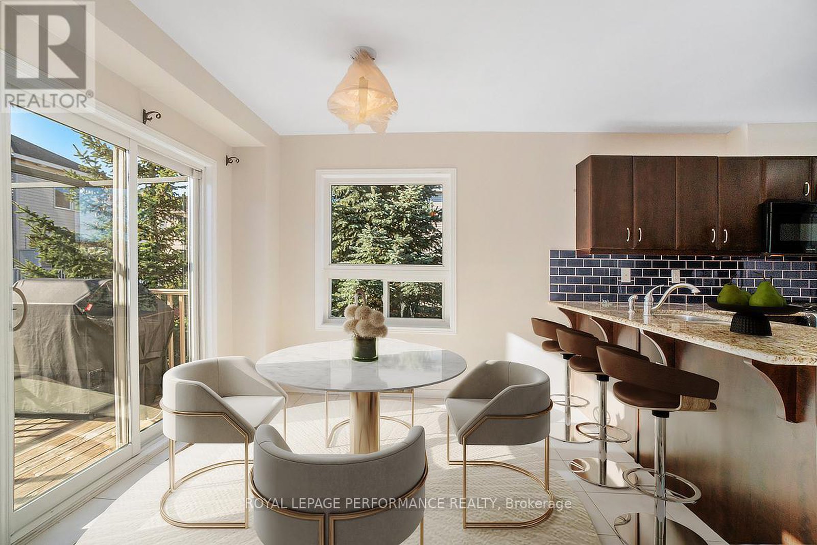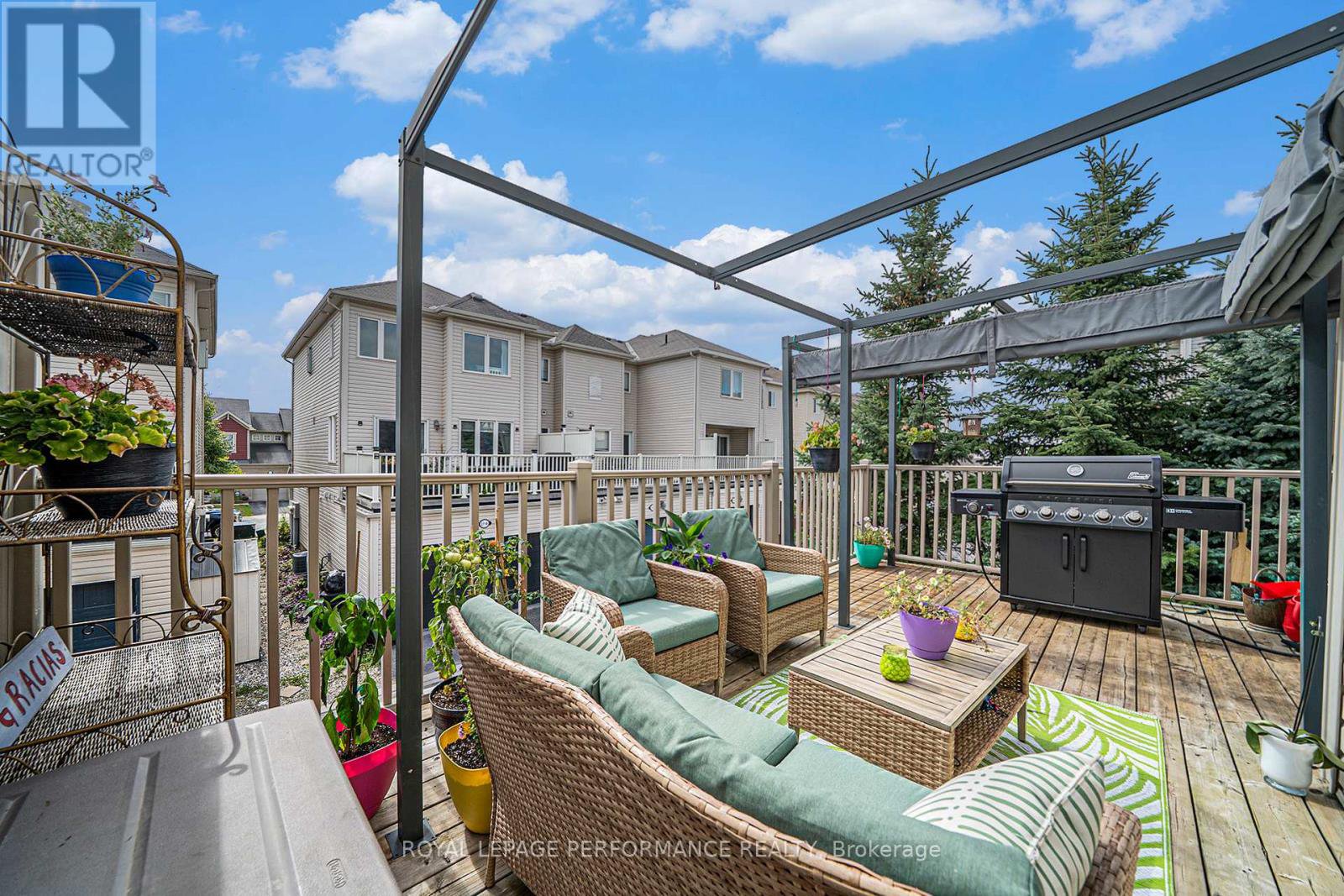 Welcome to this lovingly maintained 3-storey END-UNIT townhome, Facing the PARK and proudly owned by the same family since new! With 3 bedrooms, 3 bathrooms, and a RARE DOUBLE GARAGE, this home offers the perfect blend of comfort, convenience, and a low-maintenance lifestyle all while FACING a family-friendly PARK! Every room is spacious and airy with just over 2000 sq ft! The entry level is both practical and versatile, featuring a flex space ideal as a family room, home office, or 4th bedroom. A laundry room with extra storage and inside access to the double garage complete this floor. The heart of the home awaits on the sun-filled second level, where you will find a bright, spacious kitchen enhanced with granite counters and large pantry, along with a generous dining area, and a large living room all with hardwood and ceramic flooring. This space seamlessly extends to the expansive outdoor terrace, (featuring a natural gas line/retractable sunshade) perfect for summer barbecues , morning coffee, or evenings spent with friends. Upstairs, the primary suite offers a relaxing retreat with its own ensuite bath and walk-in closet, while two additional bedrooms provide plenty of space for family, guests, or hobbies. With maintenance-free outdoor living, you can enjoy all the benefits of homeownership without the upkeep. The double garage provides secure parking and extra storage, while the desirable neighborhood offers, green space, walking paths, schools, shops, ice rink in the park and community amenities all just steps away. Whether you are relaxing on your front porch overlooking the park or entertaining on the terrace, this home is designed to make every day feel effortless. New Furnace 2025 | Freshly painted 2025. Whether you are a first time buyer, investor or family seeking more space this one should not be missed!
