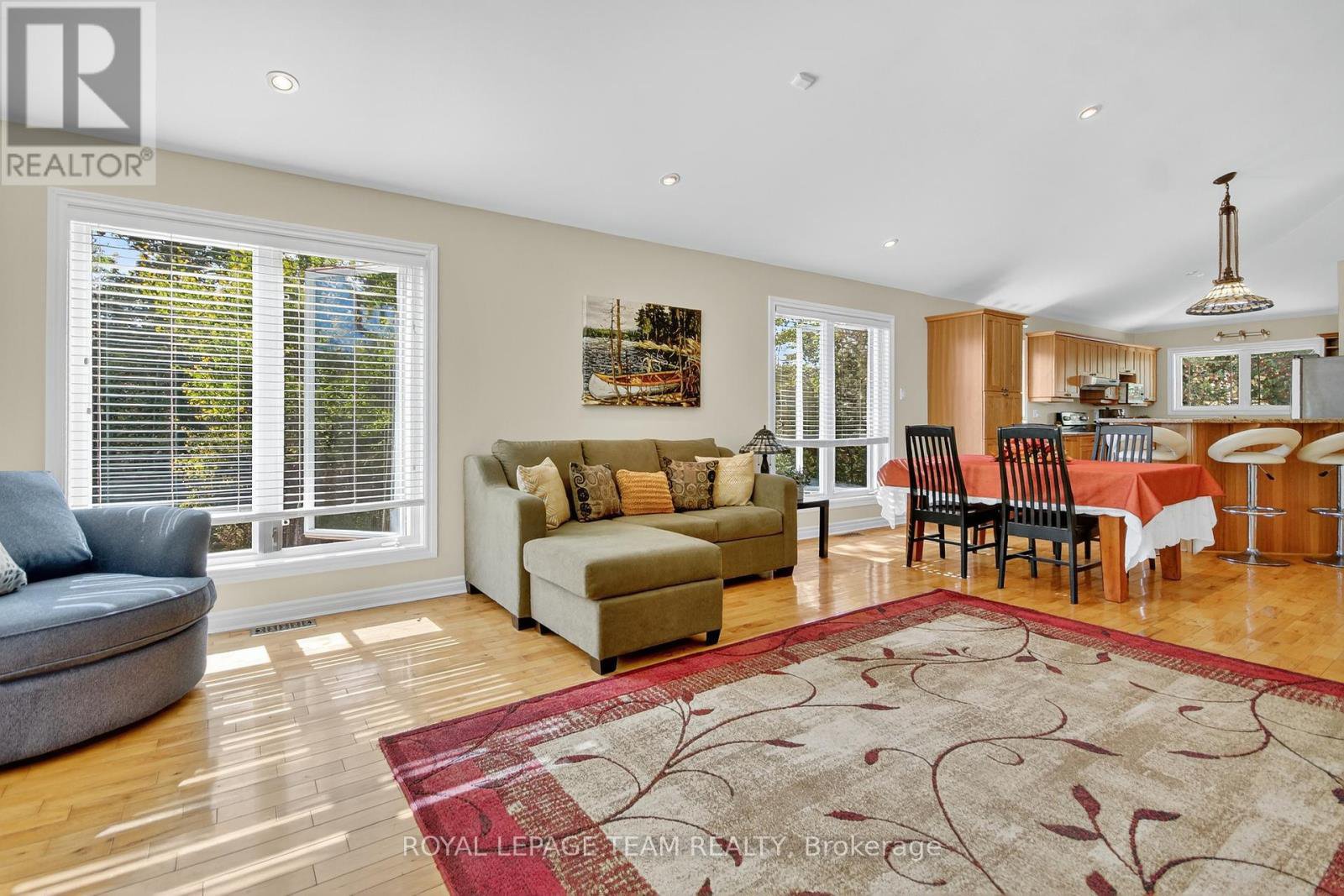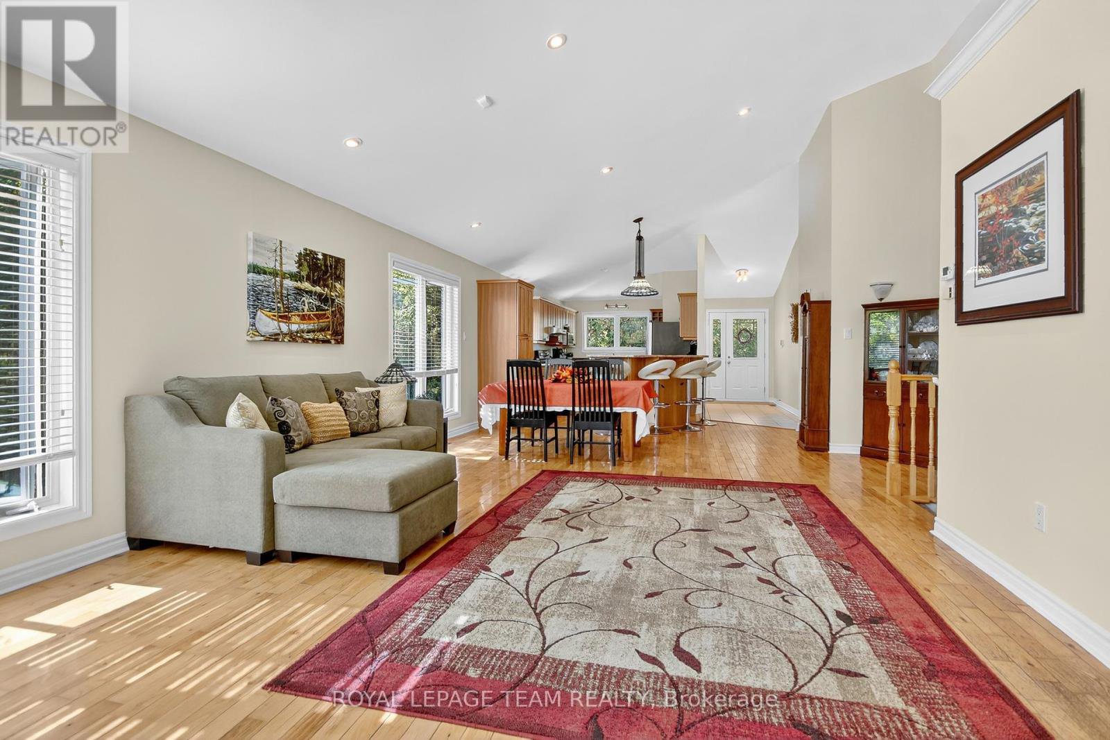 Welcome to this beautifully crafted 3-bedroom, 2-bathroom bungalow custom built by Darian Construction and designed by the original owner with comfort and quality in mind. Situated on over 21 acres with almost 1,000ft of frontage. This property offers exceptional privacy in a serene setting, and every element reflects pride of ownership.Step inside to discover oak hardwood flooring, and an open concept layout with vaulted ceilings that balances everyday function and a warm, welcoming design. The kitchen features hickory cabinetry, a breakfast bar island, and ample counter and storage space. Convenient main floor laundry, a spacious primary bedroom with walk-in closet and a 4pc ensuite, two more bedrooms and a full bath complete the living area. Basement is unfinished but expansive with a three-piece rough in for a bathroom.The expansive lot provides endless possibilities - whether you are looking to enjoy nature, start a hobby farm (including a workable hay field currently in use), or just spread out and enjoy the space. With paved road access on a corner lot, 20 minutes to Carleton Place, Smiths Falls and Stittsville, this is truly a special property you wont want to miss. As per Form 244, please allow 48hrs irrevocable on any offer submitted. ** This is a linked property.**