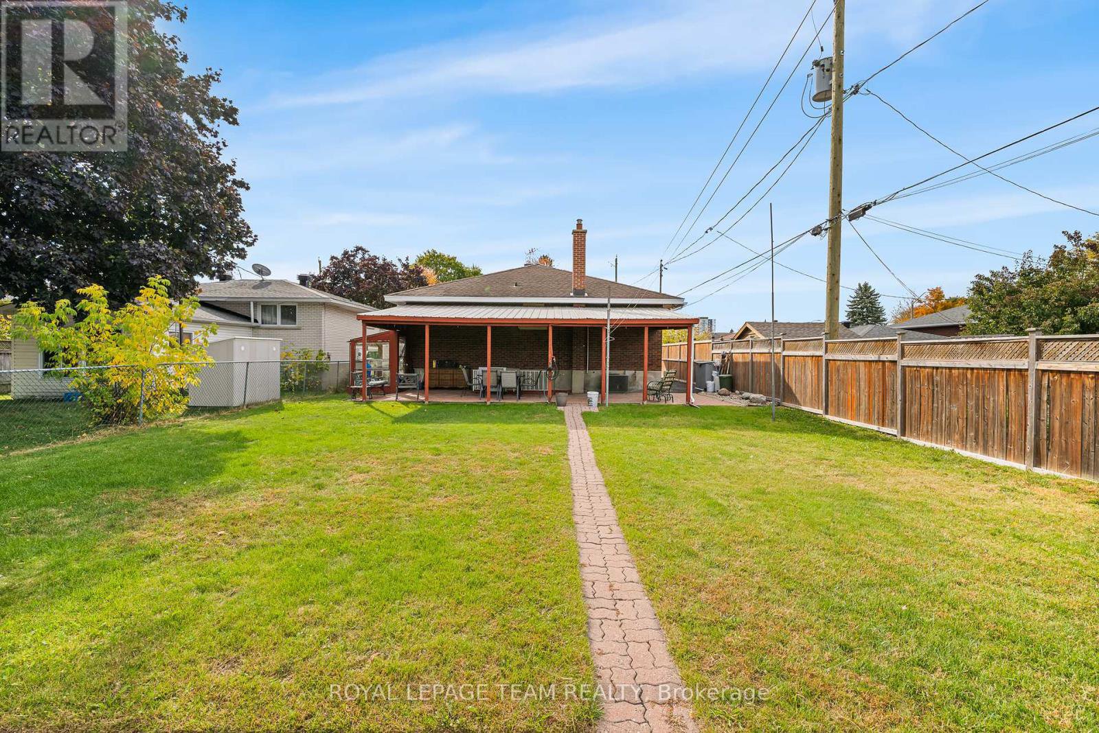 Charming Bungalow with In-Law Suite Potential 3 Bedrooms, 2 Bathrooms. Welcome to this well-maintained bungalow situated on a deep 50' x 191' lot, offering ample space both inside and out. The main level features 3 bedrooms, a large eat-in kitchen, and a spacious living room filled with natural light. The finished basement includes a full bathroom, a second kitchen, and a generous recreation room with a cozy gas fireplace ideal for extended family or in-law suite potential. Separate side and rear entrances provide added privacy and flexibility. Enjoy outdoor living with a covered patio and a fully fenced backyard, perfect for entertaining or relaxing. Located directly across from a park and wading pool, and just minutes to an indoor city pool, schools, and local shops, this home offers both comfort and convenience in a family-friendly neighbourhood. The third bedroom currently features a dual washer and dryer setup, easily removable to restore full bedroom functionality. Property is being sold as is, where is. POA & Seller make no warranties, expressed or implied. *Don't miss the 360 iGuide tour.* Room measurements for 'Other' are storage rooms.