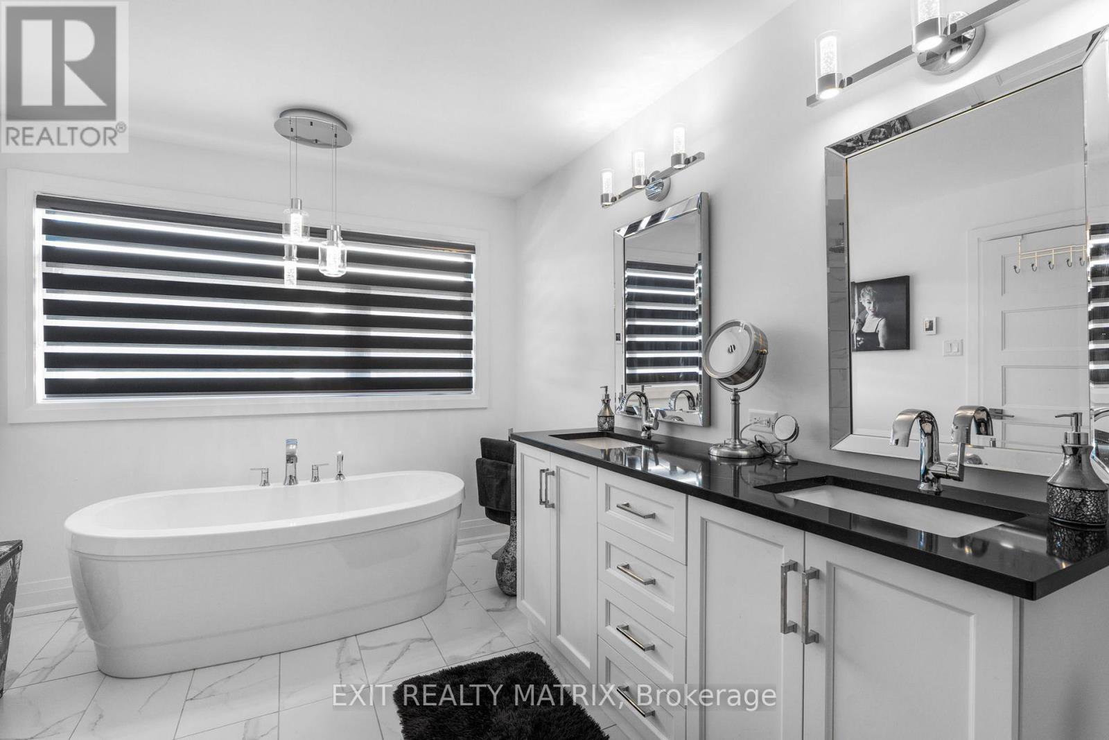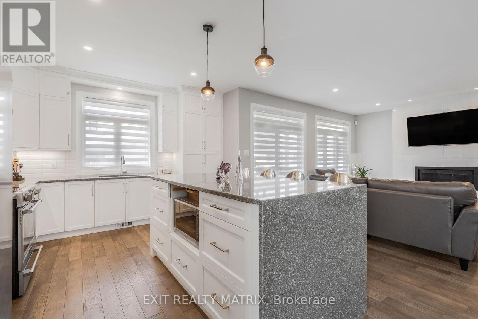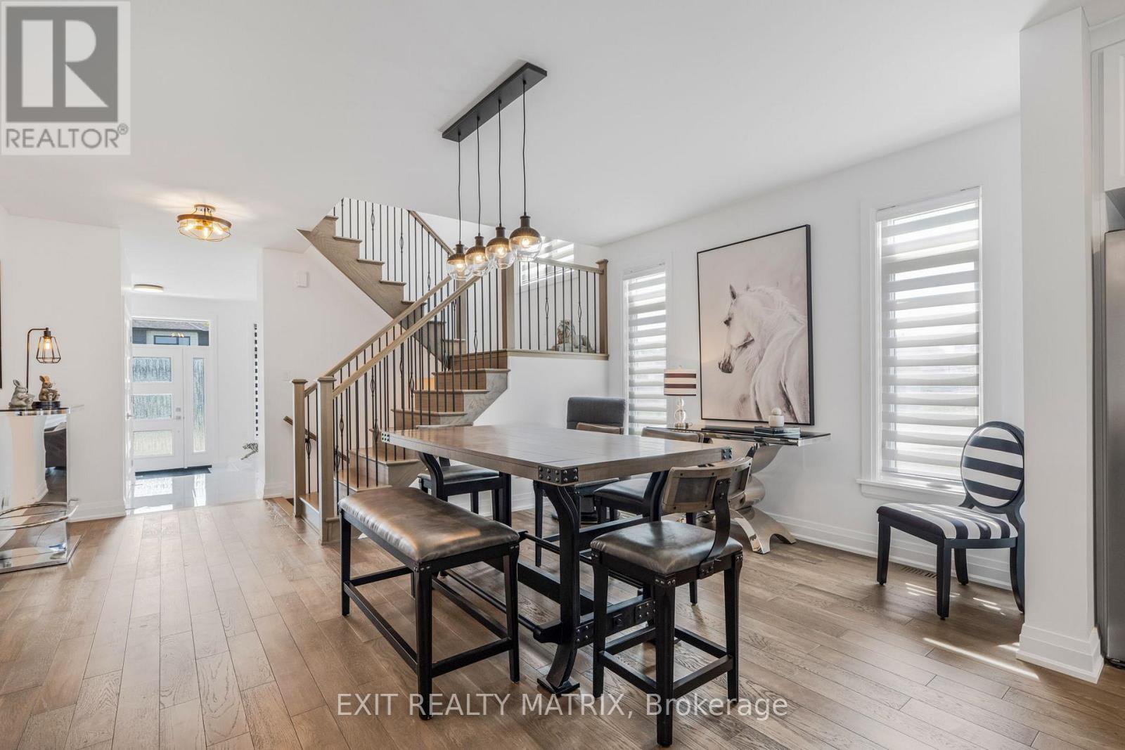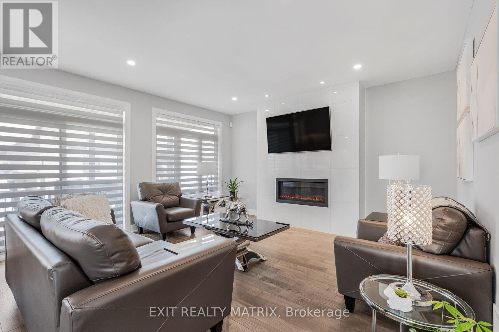 Stunning Modern Home on Oversized Corner Lot in Embrun! Welcome to your dream home, perfectly nestled on an oversized 184-ft corner lot in one of Embruns most sought-after neighbourhoods! This beautifully designed property offers high-end finishes, incredible living space, and a layout tailored for modern comfort and style. Step inside to discover a bright, open-concept main level that's both stylish and functional. The elegant dining area and cozy living room - complete with a charming fireplace and sun-filled windows - set the tone for warm gatherings and everyday living. The sleek, modern kitchen is a showstopper, featuring a sit-at island with a waterfall counter, abundant cabinetry, and premium finishes throughout. You'll also find a main floor office, garage access, and a convenient partial bathroom, ideal for busy households. The garage is fully finished, perfect for a home gym, workshop, or bonus living space. Upstairs, you'll find three spacious bedrooms, each with a walk-in-closet, and two bathrooms, including a luxurious primary retreat with a spa-like ensuite, boasting a glass shower, soaker tub, and double vanity. The basement offers an additional bedroom and potential for even more space with a rough-in for a bathroom already in place. Outside, enjoy summer evenings on your lovely backyard deck and take in the privacy and space of your generously sized yard, perfect for entertaining or relaxing. Located near parks, schools, and everyday amenities, this home truly has it all. Don't miss your chance to own this stunning property in the heart of Embrun!