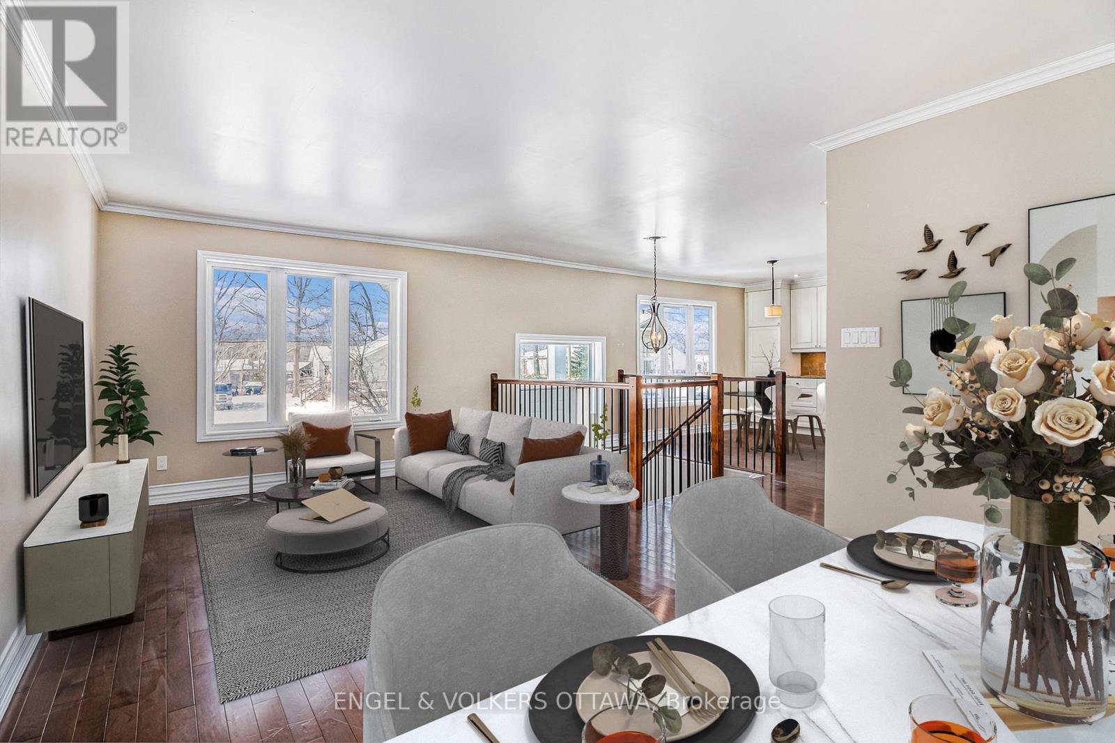 This stunning, fully updated home offers breathtaking views and access to the Ottawa River and is nestled in the prestigious Cumberland Estates. The open-concept main floor seamlessly blends the kitchen, dining, and living areas, creating a bright and inviting space. The kitchen features elegant white cabinetry, granite countertops, and a double-door pantry, perfect for any home chef. Hardwood flooring flows throughout, enhancing the abundance of natural light streaming in from large windows that showcase stunning river views. The main floor also boasts a primary bedroom with a Juliet balcony, offering a serene retreat, and direct access to a five-piece cheater ensuite, complete with a glass shower, soaker tub, and a double sink vanity. A second bedroom on the main level provides versatility as the perfect guest room, home office, or flex space. A convenient laundry room completes the main floor. On the lower level, you'll find two additional bedrooms with large, bright windows and hardwood floors, and a partially finished powder room and recreation room, just waiting for your personal touch. The community has private access to the River only 100m down Morin road making it an ideal home for outdoor enthusiasts and water sports lovers. With a lush private backyard, nature trails nearby and just a short drive from Orleans, it's truly the perfect location. Plus, the home has just been fully repainted, making it fresh and move-in ready! Don't miss this rare opportunity to own a true oasis!
