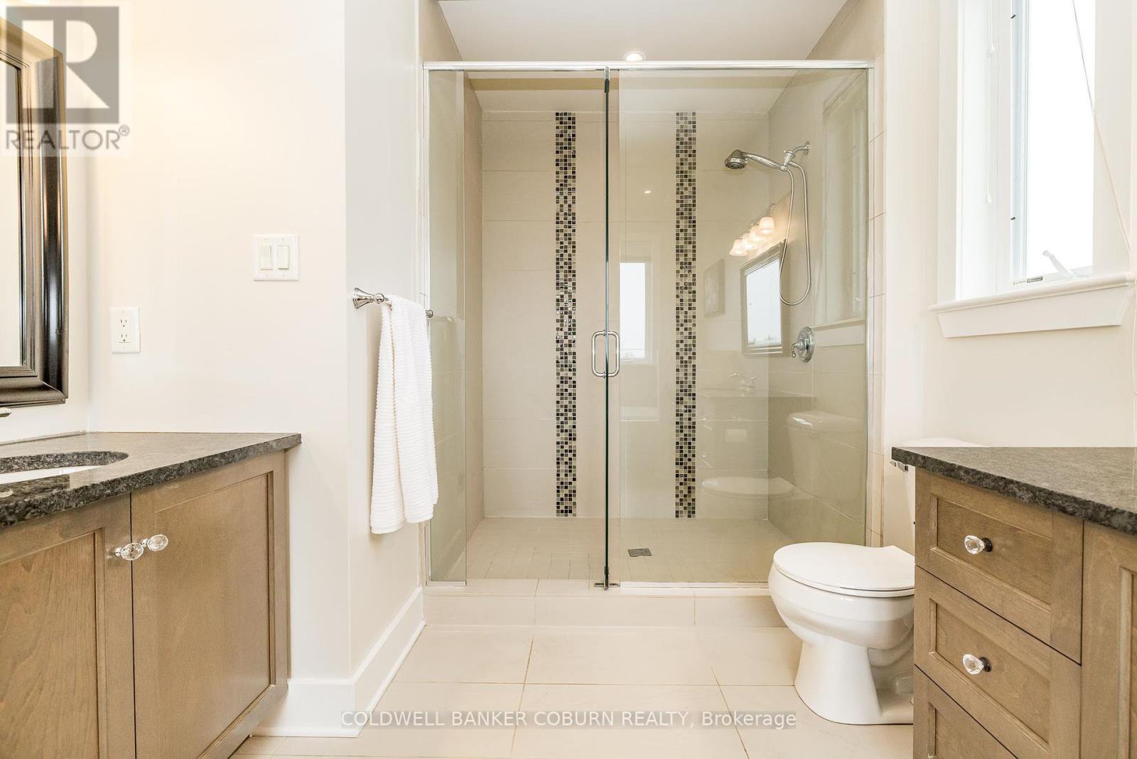 Welcome to this stunning custom-built home with 4,500 sq ft of living space, offered by the original owners and nestled in the prestigious West Lake Estates. With exclusive access to the tranquil communal lake, this home offers the perfect blend of elegance, functionality, and comfort. From the moment you step into the bright and airy foyer, you're greeted by timeless architectural details including arched doorways, rich maple hardwood floors, and an exquisite empire coffered ceiling. The heart of the home is the chef's kitchen, featuring quartzite countertops, sleek maple cabinetry with abundant storage, a professional-grade Frigidaire thermal refrigerator, and a convenient walk-in butler's pantry that connects seamlessly to the formal dining room complete with water views and a recessed ceiling for added sophistication. The primary suite offers a peaceful retreat with a generous walk-in closet and a luxurious 5-piece ensuite, including dual vanities, a soaker tub, and a glass walk-in shower. Two additional main-floor bedrooms boast picturesque lake views and share a stylish Jack-and-Jill bathroom with double sinks. Practicality meets beauty with a large mud/laundry room and a charming screened-in porch, perfect for quiet mornings or entertaining. Expansive back windows flood the living spaces with natural light and open to a sprawling deck, ideal for hosting under the open sky. The lower level is a haven for relaxation and entertainment, featuring warm maple floors with in-floor heating, a spacious billiards room, and a cozy theatre room. A fourth bedroom with a walk-in closet and rough-in for a bathroom provides additional flexibility. Ample storage rooms, a massive cold storage, and direct garage access complete the lower level. This impeccably maintained home combines elegance and efficiency in a coveted lake community. $200.00 annual co-tenancy fee for lake maintenance. Ecoflo sustainable septic system.