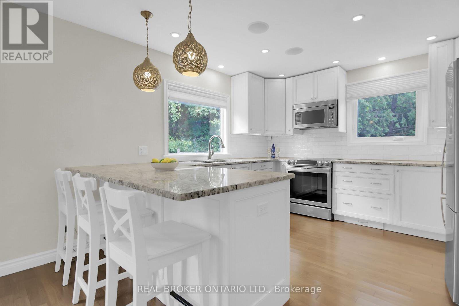 Welcome to Katimavik and all it has to offer! This wonderful family home has incredible outdoor space, with a large fully fenced private backyard with no rear neighbours. Enter your foyer and to the left is a formal living room with wood burning fireplace. To the right, a dedicated dining room. Towards the back of the house, is the beautifully updated kitchen with granite counters, pantry and kick-plate for the central vac. Open concept family room to the kitchen and the backyard deck round out the main floor. Upstairs features hardwood flooring in 4 spacious bedrooms and a full, newly updated 4 piece bathroom. The fully finished basement has an electric fireplace, tons of storage and space for a workshop, as well as a laundry room. The backyard keeps going and going. Be sure to step outside and take it all in. It backs onto Byrd Park trail, and is walking distance to Castlefrank/Katimavik Elementary. It is also located in the Earl of March Secondary School district, has quick access to the 417 and future Moodie LRT stop nearby. The Wave pool, Kanata Centrum, and Kakulu Medical Center are steps away. Ethernet wiring throughout the house and in-ceiling speakers in the kitchen. Furnace/AC/Hot Water Tank 2018. Roof 2013. Freshly painted and ready for its new owners, this home could be yours!