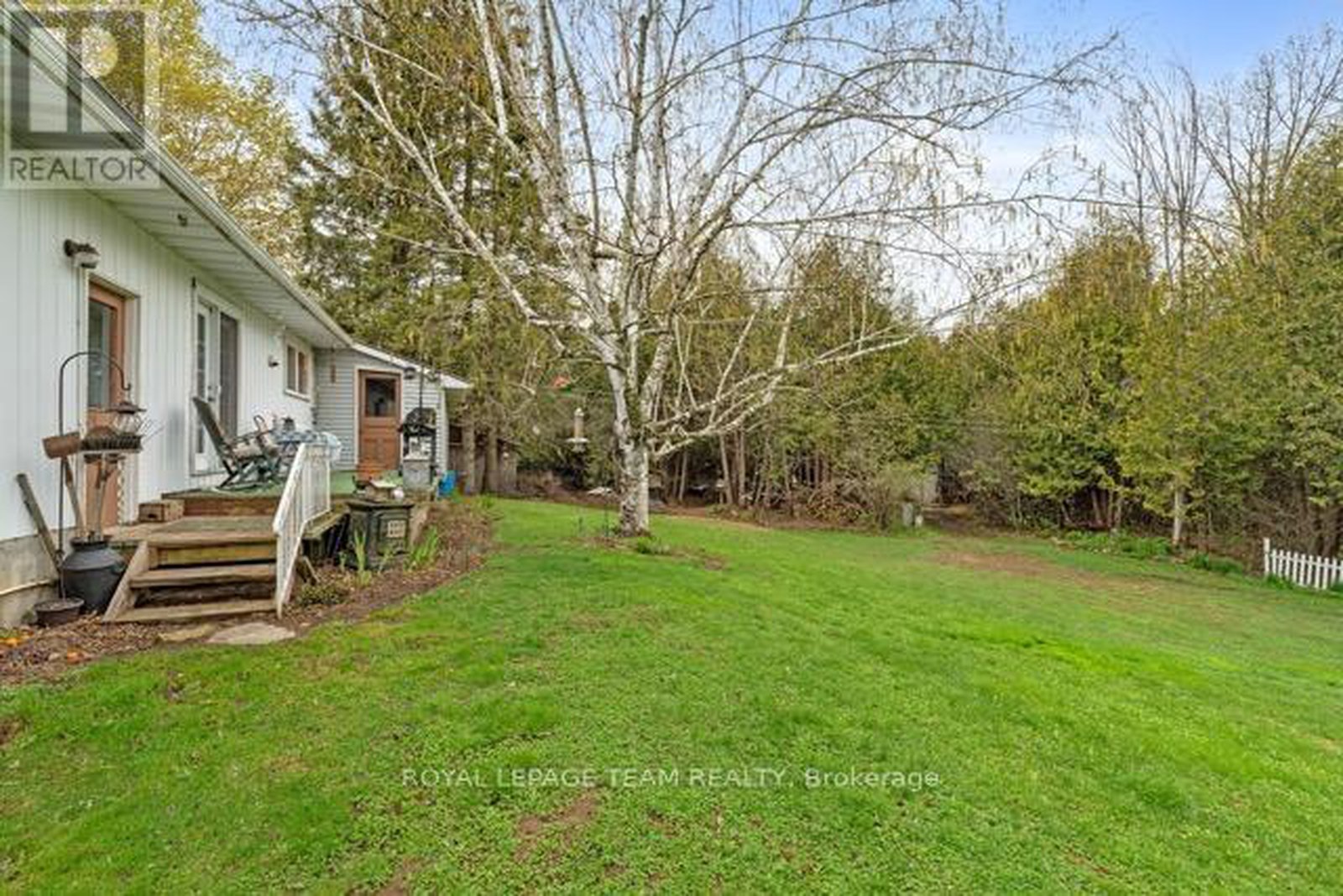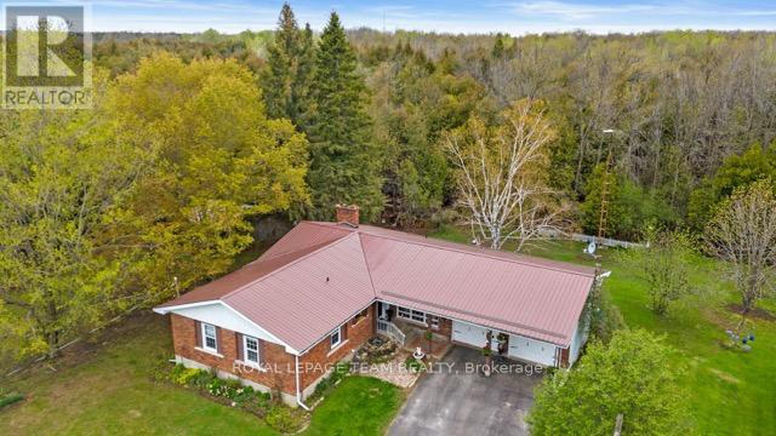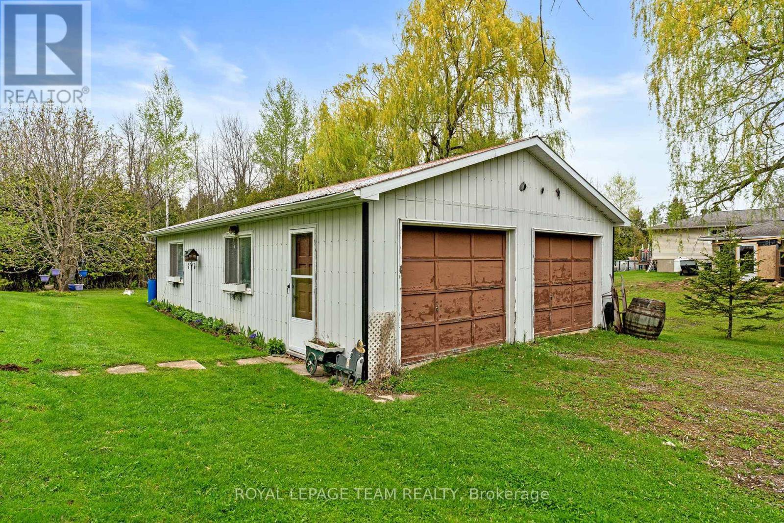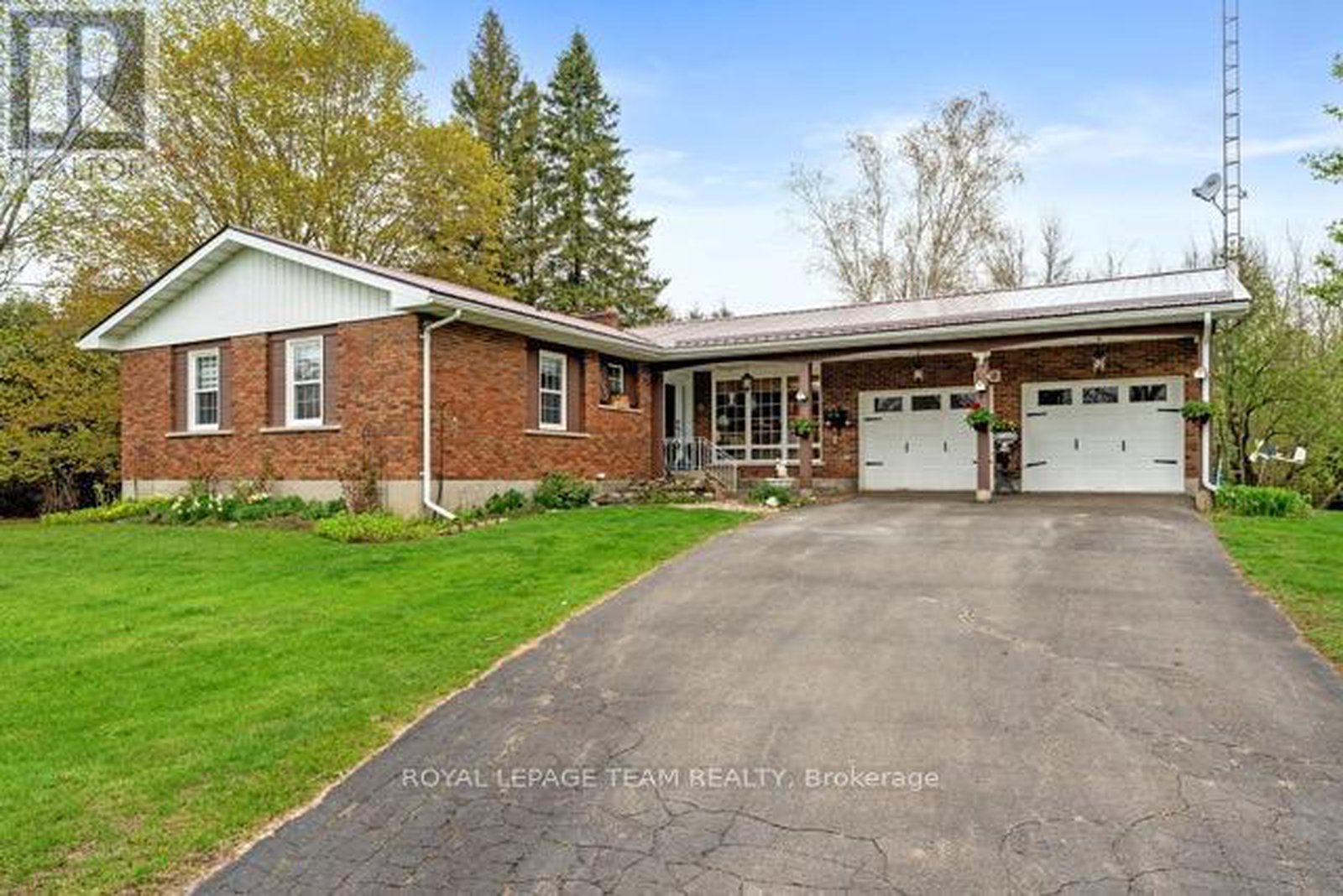 Tucked away on a tranquil 2.8-acre lot in Millars Corners, this beautifully maintained 3-bedroom bungalow offers the perfect blend of peaceful country living and modern convenience. Just minutes from Highway 416 and the growing amenities of Kemptville, it's ideally situated for commuters and families seeking space, privacy, and accessibility.Surrounded by mature trees and vibrant perennial gardens, the property feels like a private retreat. Expansive lawns and two spacious decks invite you to savour the outdoors year-round-whether it's quiet mornings with coffee or evening gatherings under the stars.Inside, the home is warm and welcoming. The updated kitchen features modern cabinetry, generous counter space, and a layout designed for everyday living and easy hosting. A convenient main-floor laundry enhances functionality. The formal dining area flows into a sunlit sitting room, while a cozy family room with a fireplace and walkout to the back deck offers the perfect spot for relaxed evenings.With two full bathrooms and a spacious attached 2-car garage, the home balances comfort and practicality. The expansive partially finished basement offers endless potential for added living space, a gym, or entertainment area, it currently has a second kitchen and a woodstove. A standout feature is the **massive outbuilding**, equipped with 200-amp electrical service and space for up to six vehicles. Whether you're a hobbyist, tradesperson, entrepreneur, or collector, this versatile space is ready to support your vision-from workshops and studios to small business operations or extra storage.Additional updates, including a durable metal roof, provide peace of mind. More than just a home, this is a lifestyle-an inviting haven where comfort, nature, and possibility meet. Your next chapter begins here!