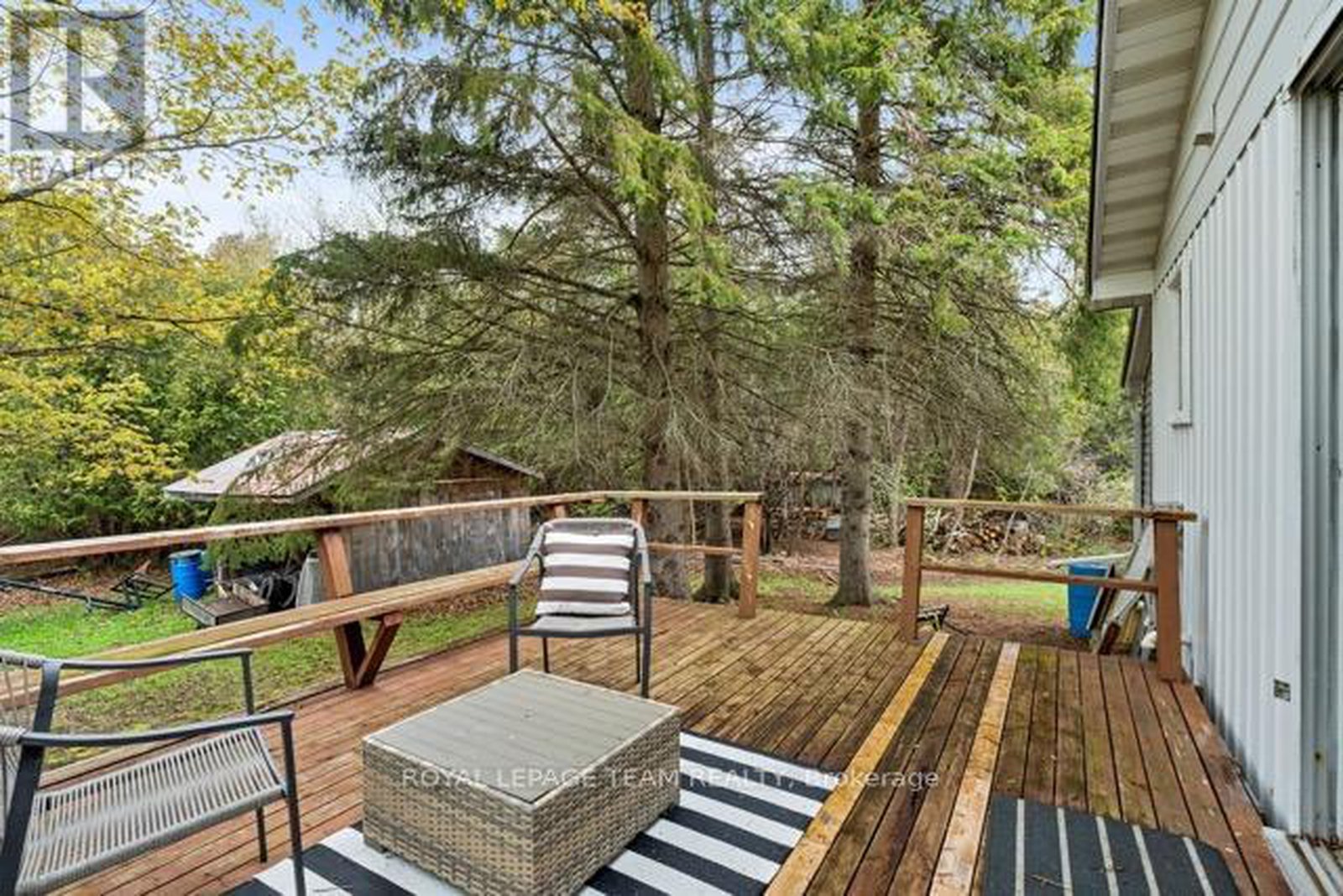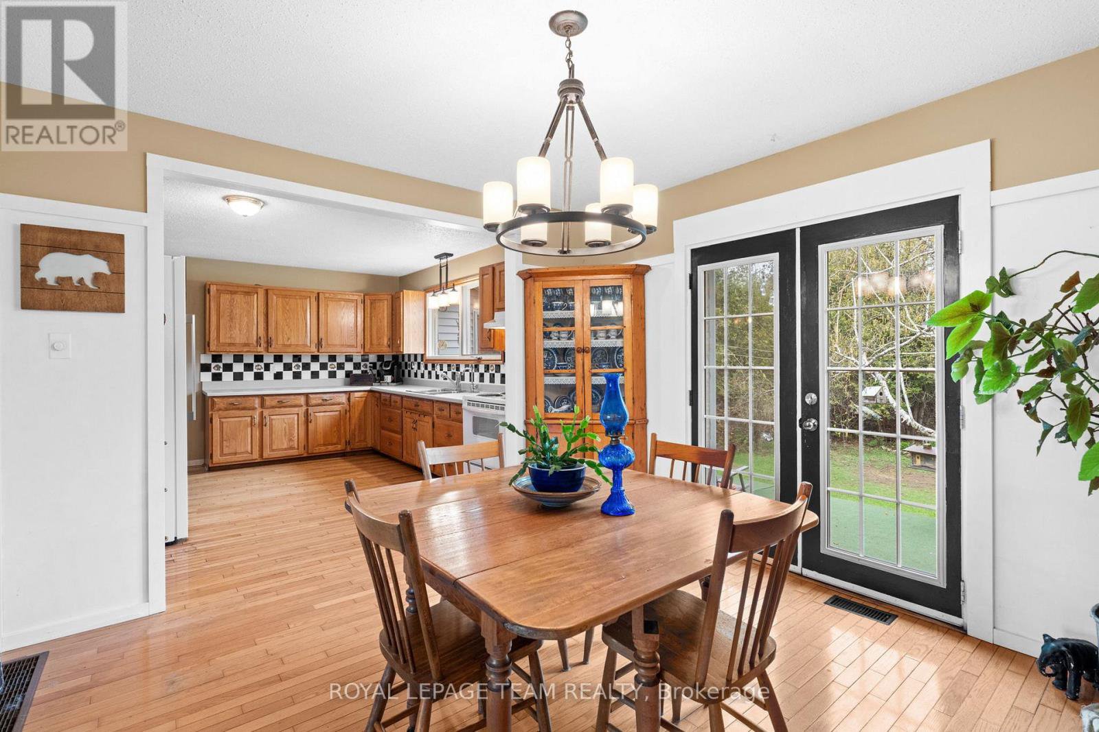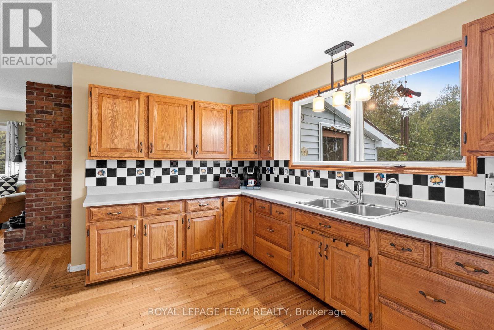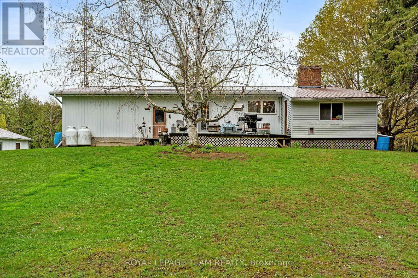 Tucked away on a tranquil 2.8-acre lot in Millars Corners, this beautifully maintained 3-bedroom bungalow offers the perfect blend of peaceful country living and modern convenience. Just minutes from Highway 416 and the growing amenities of Kemptville, it's ideally situated for commuters and families seeking space, privacy, and accessibility.Surrounded by mature trees and vibrant perennial gardens, the property feels like a private retreat. Expansive lawns and two spacious decks invite you to savour the outdoors year-round-whether it's quiet mornings with coffee or evening gatherings under the stars.Inside, the home is warm and welcoming. The updated kitchen features modern cabinetry, generous counter space, and a layout designed for everyday living and easy hosting. A convenient main-floor laundry enhances functionality. The formal dining area flows into a sunlit sitting room, while a cozy family room with a fireplace and walkout to the back deck offers the perfect spot for relaxed evenings.With two full bathrooms and a spacious attached 2-car garage, the home balances comfort and practicality. The expansive partially finished basement offers endless potential for added living space, a gym, or entertainment area, it currently has a second kitchen and a woodstove. A standout feature is the **massive outbuilding**, equipped with 200-amp electrical service and space for up to six vehicles. Whether you're a hobbyist, tradesperson, entrepreneur, or collector, this versatile space is ready to support your vision-from workshops and studios to small business operations or extra storage.Additional updates, including a durable metal roof, provide peace of mind. More than just a home, this is a lifestyle-an inviting haven where comfort, nature, and possibility meet. Your next chapter begins here!