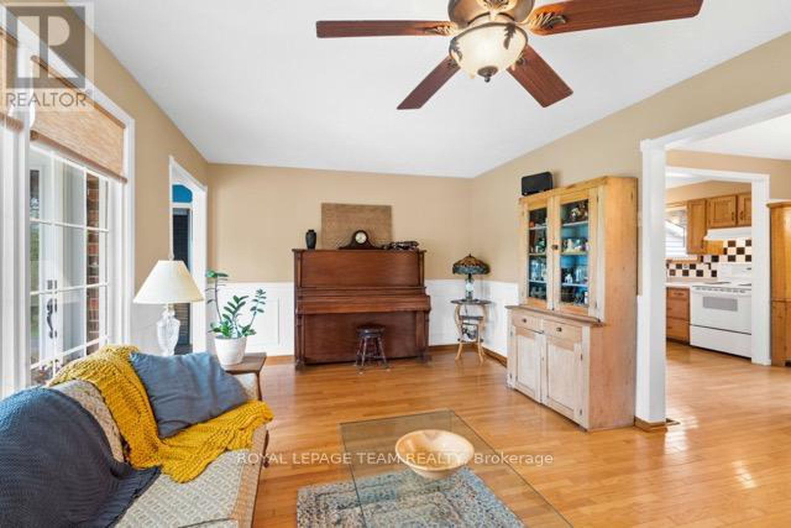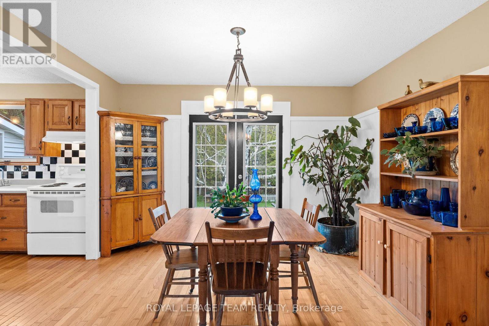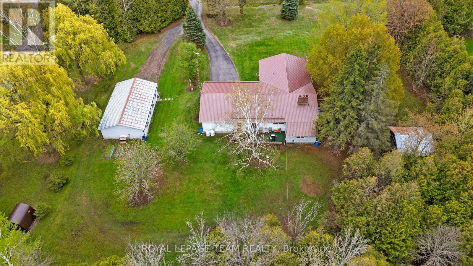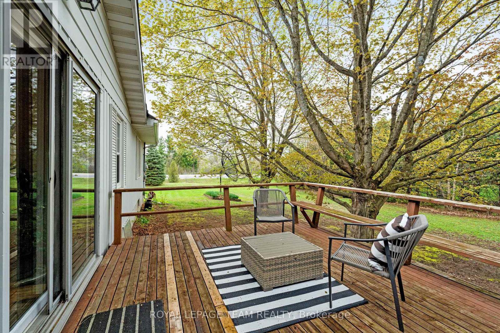 Tucked away on a tranquil 2.8-acre lot in Millars Corners, this beautifully maintained 3-bedroom bungalow offers the perfect blend of peaceful country living and modern convenience. Just minutes from Highway 416 and the growing amenities of Kemptville, it's ideally situated for commuters and families seeking space, privacy, and accessibility.Surrounded by mature trees and vibrant perennial gardens, the property feels like a private retreat. Expansive lawns and two spacious decks invite you to savour the outdoors year-round-whether it's quiet mornings with coffee or evening gatherings under the stars.Inside, the home is warm and welcoming. The updated kitchen features modern cabinetry, generous counter space, and a layout designed for everyday living and easy hosting. A convenient main-floor laundry enhances functionality. The formal dining area flows into a sunlit sitting room, while a cozy family room with a fireplace and walkout to the back deck offers the perfect spot for relaxed evenings.With two full bathrooms and a spacious attached 2-car garage, the home balances comfort and practicality. The expansive partially finished basement offers endless potential for added living space, a gym, or entertainment area, it currently has a second kitchen and a woodstove. A standout feature is the **massive outbuilding**, equipped with 200-amp electrical service and space for up to six vehicles. Whether you're a hobbyist, tradesperson, entrepreneur, or collector, this versatile space is ready to support your vision-from workshops and studios to small business operations or extra storage.Additional updates, including a durable metal roof, provide peace of mind. More than just a home, this is a lifestyle-an inviting haven where comfort, nature, and possibility meet. Your next chapter begins here!