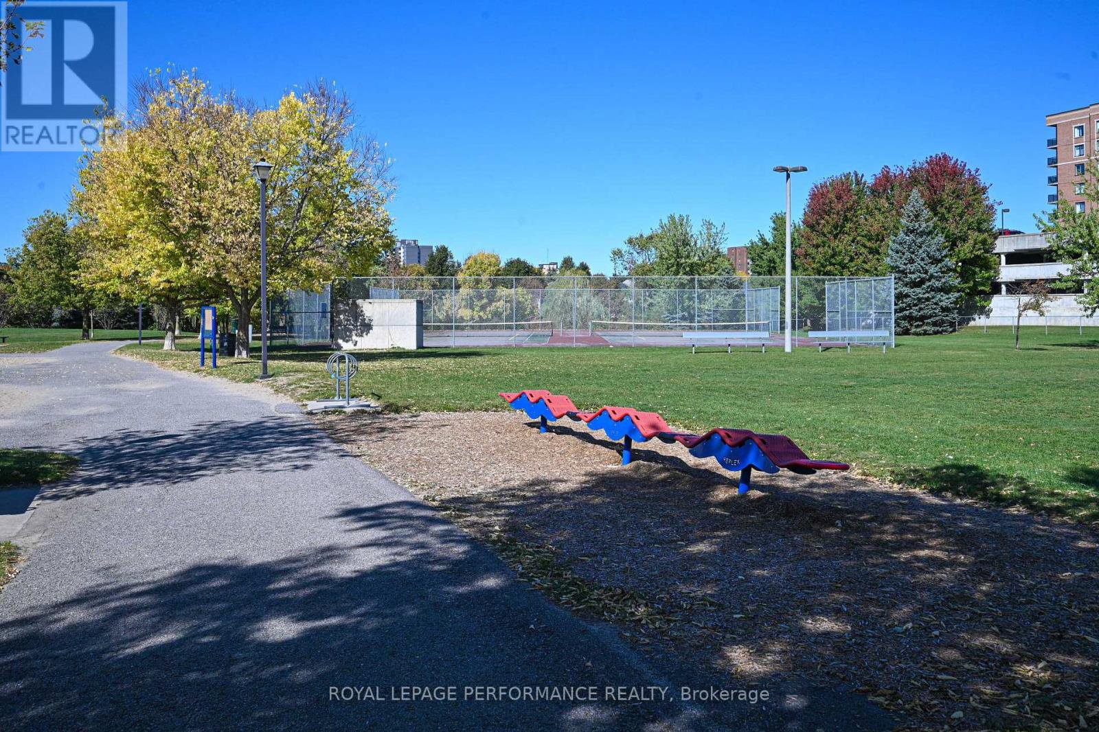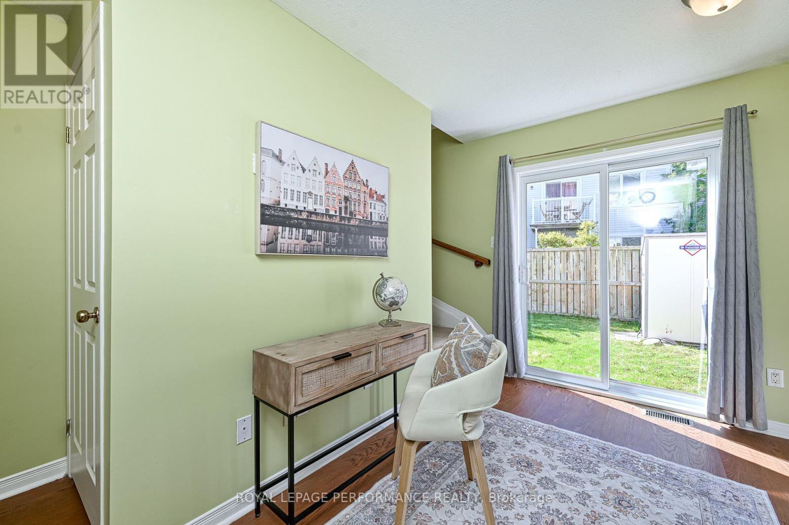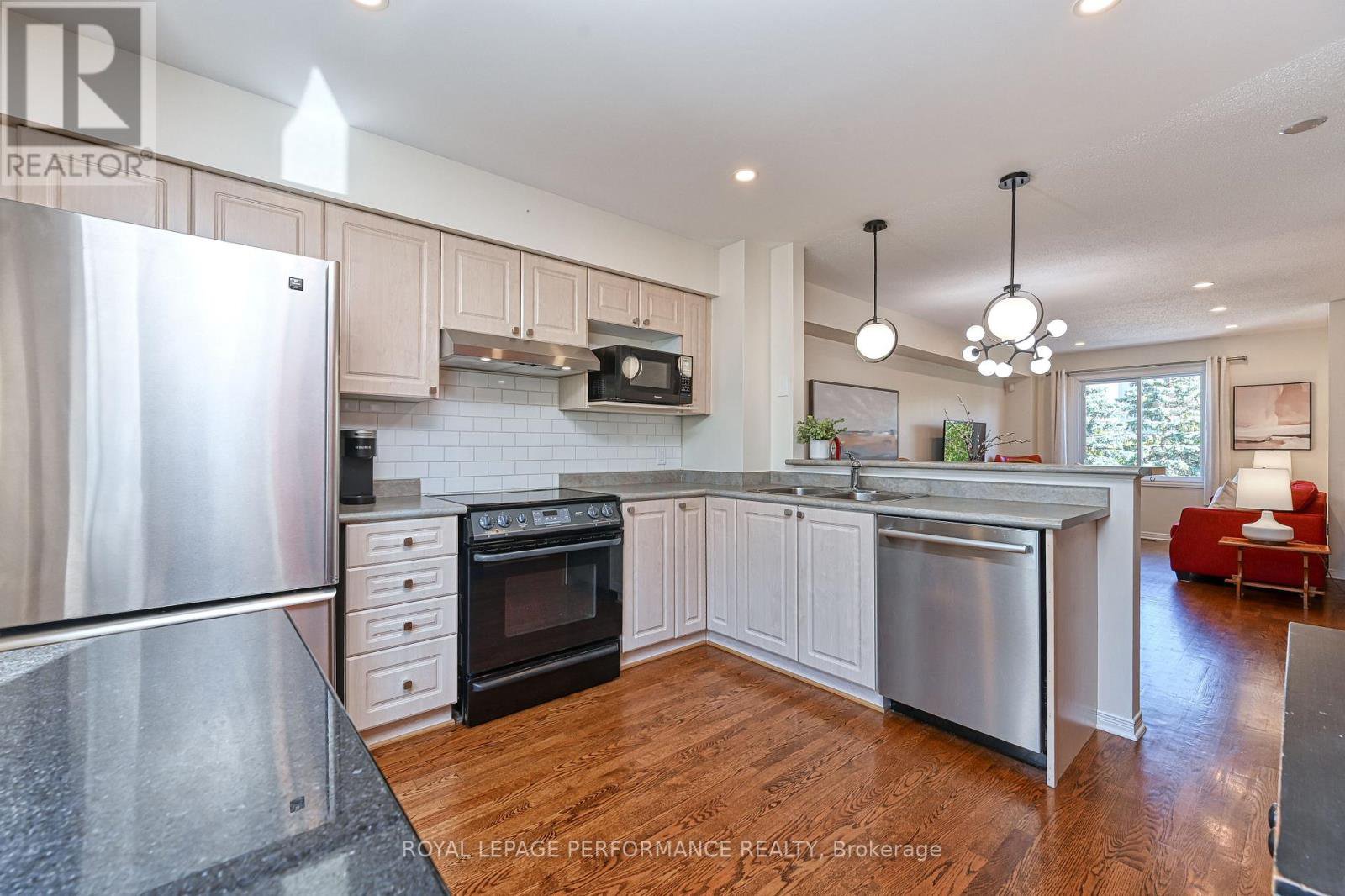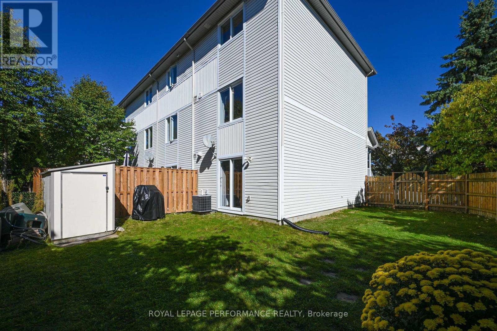 Location, Location, Welcome home to this charming end unit freehold townhome in sought after Central Park. Situated on a reverse pie corner, offering an oversized lot, huge fully fenced yard with both west & south exposure, parking for 4 vehicles, don't miss out! Step into the open concept living & dining areas, hardwood flooring, fresh paint, and oak railing set the stage. Large kitchen boasts neutral cabinetry, Bosch dishwasher (August 2023), great counter space and a breakfast bar overlooking the principal rooms. This floor is flanked by windows on either side providing a great cross breeze and an abundance of natural light. Upstairs, you will find two comfortable bedrooms and a 4-piece main bathroom. The spacious primary bedroom offers a peaceful retreat, while the second bedroom features a Murphy bed (included) which is great to stow away offering versatility. The lower level provides a cozy den, home office or gym, Laundry, a 2 piece bathroom, inside access to the garage and patio door to the fabulous yard. Plenty of storage on the lower level and basement levels. Ideally situated near a park with a playground, tennis courts, soccer field, this home also offers quick access to biking, walking paths, the Experimental Farm, grocery stores, restaurants, amenities and transit. This home blends comfort, functionality, and location, perfect for first time buyers, downsizers, or anyone seeking low-maintenance living. Updates include; roof replaced by Sanderson (October 2015); Rheem R96 furnace (May 2022); 4 new Verdun ER40 windows, 25-yearwarranty, Energy Star (August 2023) ; garage door motor and keypad (2022); upgraded lighting (2022);stove exhaust fan (2023); backsplash behind stove (January 2024); kitchen sink tap (2024); bathroom sink taps (January 2025).