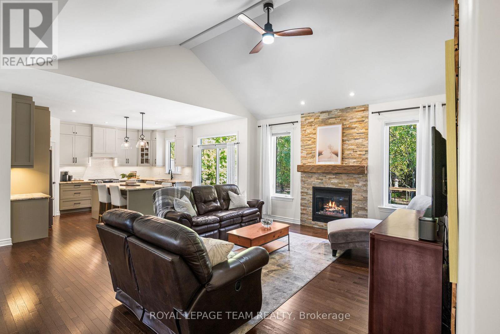 This custom built bungalow is nestled on a private 4 acres with a park like setting featuring numerous species of newly planted vegetation.(list available) Landscaped with walking paths, gardens to be proud of and a privacy to be enjoyed. The open backyard offers a spacious deck on summer days, the fire pit area on cooler evenings or the covered screened gazebo for entertaining or a morning coffee. The interior open concept main level includes, stately cathedral ceilings in the living room with a gas fireplace. The hardwood flooring extends throughout the Living, Dining, Kitchen and hallways. The gourmet kitchen w/granite counter tops, commercial style hood fan, gas range, pantry and Stainless Steel appliances leads to a formal dining area. This main level is a wonderful place to entertain with family and friends. The Primary bedroom has a recently renovated ensuite bath, walk in closet area. The two ample sized secondary bedrooms and has easy access the main 4 piece bath. The extensive 3 car garage has inside access leading to well laid out mudroom and laundry. The professionally finished lower level offers recreational space, 4th bedroom, full 3 piece bath, office area and major storage space. The fabulous home is located in the exclusive enclave of home in West Lake Estates and is only minutes to Kanata, Carp and Stittsville. This curb appeal starts at the elegant front door, throughout the entire interior to the meticulously landscaped acreage. Come visit this home today. 24 hrs irrev on offers as per form 244
