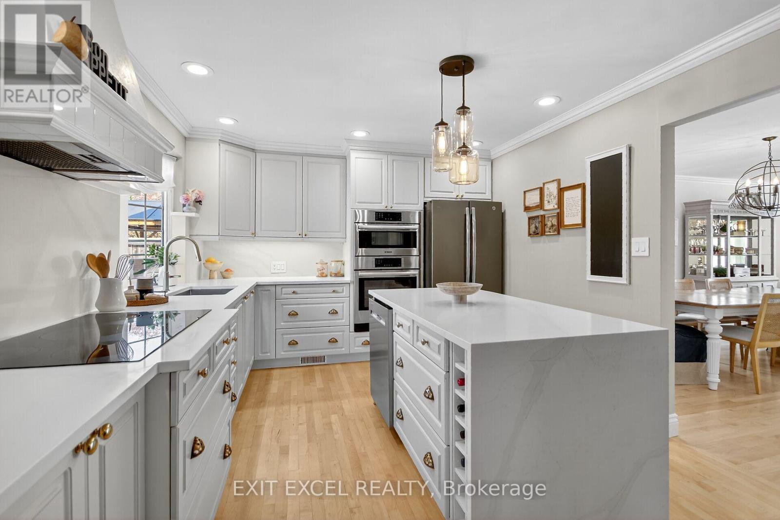 Welcome to 6357 Mattice Ave ~ a beautifully updated family home in the heart of Orléans, nestled in a mature, tree-lined community known for its friendly neighbours, nearby parks, and top-rated schools. With nearly 2,900 sq ft of beautifully finished living space spread across three levels, there's room for everyone to live, work, and unwind in comfort. Steps from Cathedral Park and a short drive to a full range of nearby amenities, this home offers both lifestyle and location. Inside, the inviting foyer leads to bright, stylish living spaces filled with natural light. The open-concept living and dining rooms feature elegant lighting and hardwood floors, perfect for entertaining. The cozy family room with its stone-clad gas fireplace provides a warm gathering place for movie nights or quiet evenings. The renovated kitchen blends modern design with function ~ quartz counters,top of the line stainless appliances, a centre island with seating, and timeless cabinetry. Upstairs, you'll find spacious bedrooms including a fourth bedroom currently used as a second walkin, previously a bedroom, den, and nursery ~ offering excellent flexibility. The lower level extends the living space with a large rec room that once served as a home theatre, complete with 108" projection screen, a fifth bedroom, plus a spa-inspired bathroom featuring heated floors and built-in speakers with shower lighting, an ideal retreat or guest suite option.Outdoors, the landscaped backyard is an entertainer's dream ~ multiple seating areas, an outdoor dining zone, and a built-in fireplace under open skies create a private oasis for gatherings. Refer to the attached features and updates list for the extensive details showcasing the quality and care invested in this home. Book your private showing today or plan to visit the Open House on Sunday, October 19th, 2-4pm and experience the charm, comfort, and quality that 6357 Mattice Ave has to offer!