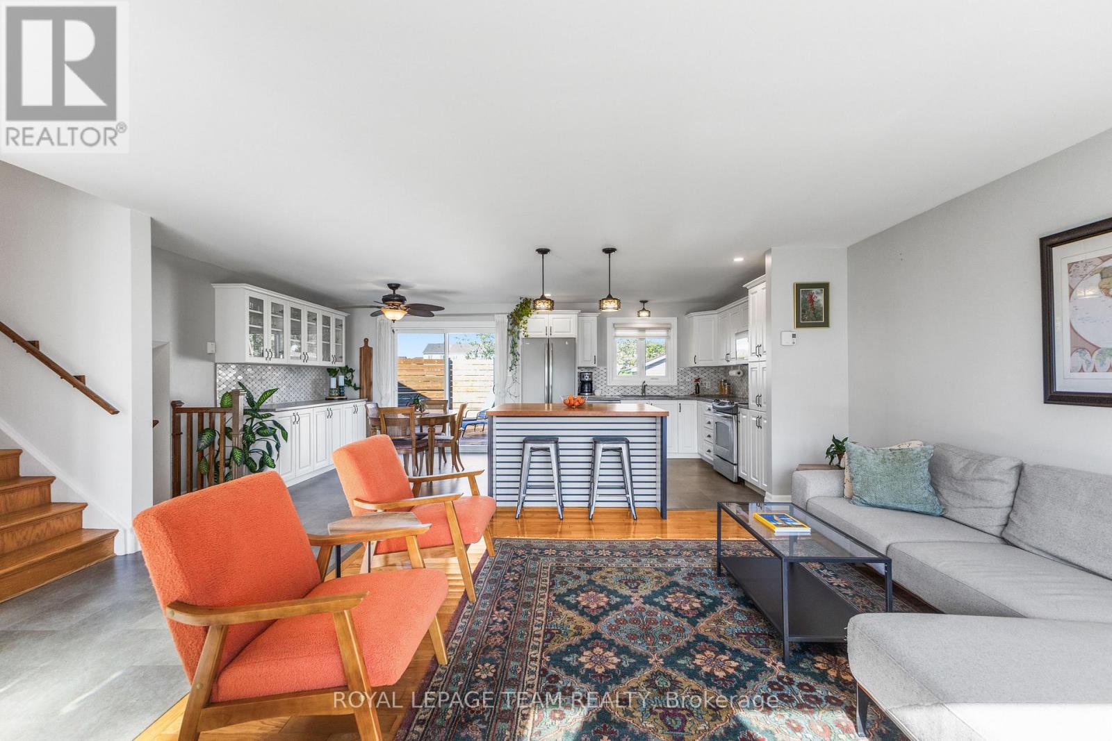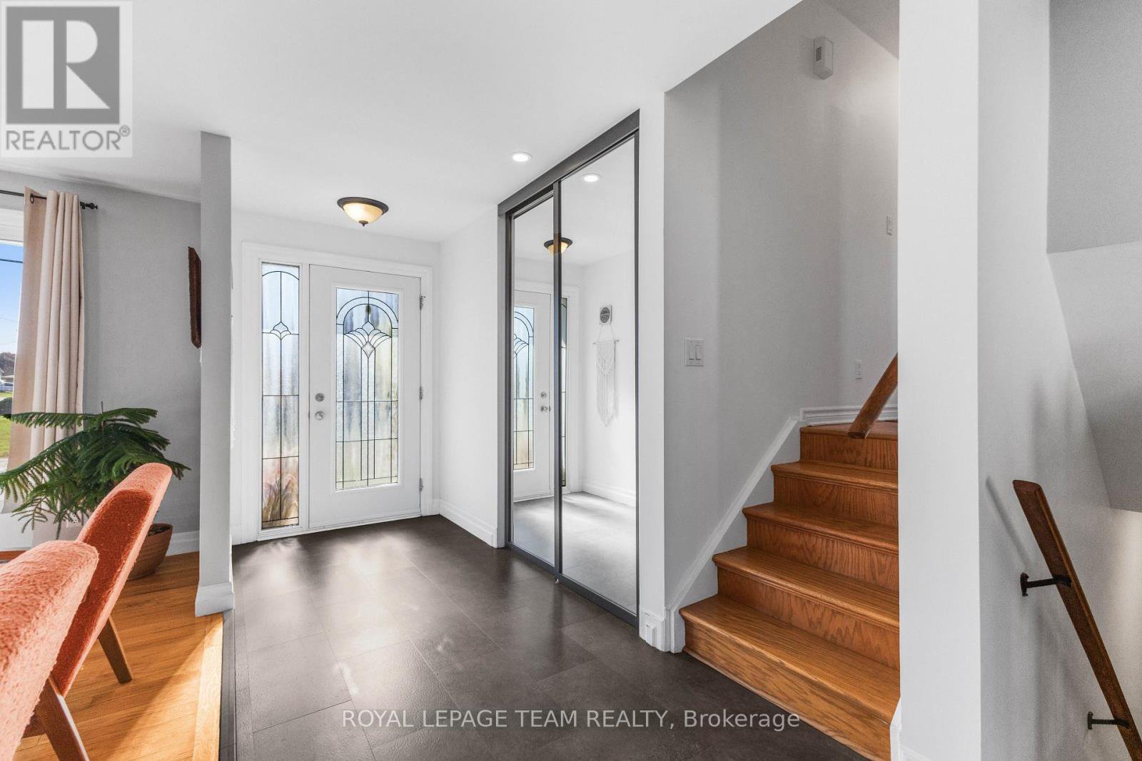 OPEN HOUSE SATURDAY OCTOBER 18th FROM 11:00AM-1:00PM. Beautifully renovated high-ranch in a quiet, established neighbourhood with no rear neighbours, backing onto Patricia Charron park. Rare grandfathered access to the park and community garden through a private access door. Bright open-concept layout with a newly renovated kitchen featuring a large island, stainless steel appliances, and hardwood flooring throughout. Spacious primary bedroom with cheater ensuite plus 2 additional bedrooms. Fully finished basement offers a family room with gas fireplace, kitchenette/bar-area, den/home-office or 4th bedroom, full bath, and large laundry/utility room with plenty of space for storage. Outside, enjoy your private backyard oasis complete with an 18ft above-ground pool (2022), new deck (2023), new fence (2024), and beautifully landscaped gardens with mature plants, trees, and flowers. Carport, shed, and plenty of space to entertain. Close to schools, shopping, transit, and all amenities. You will love living here!