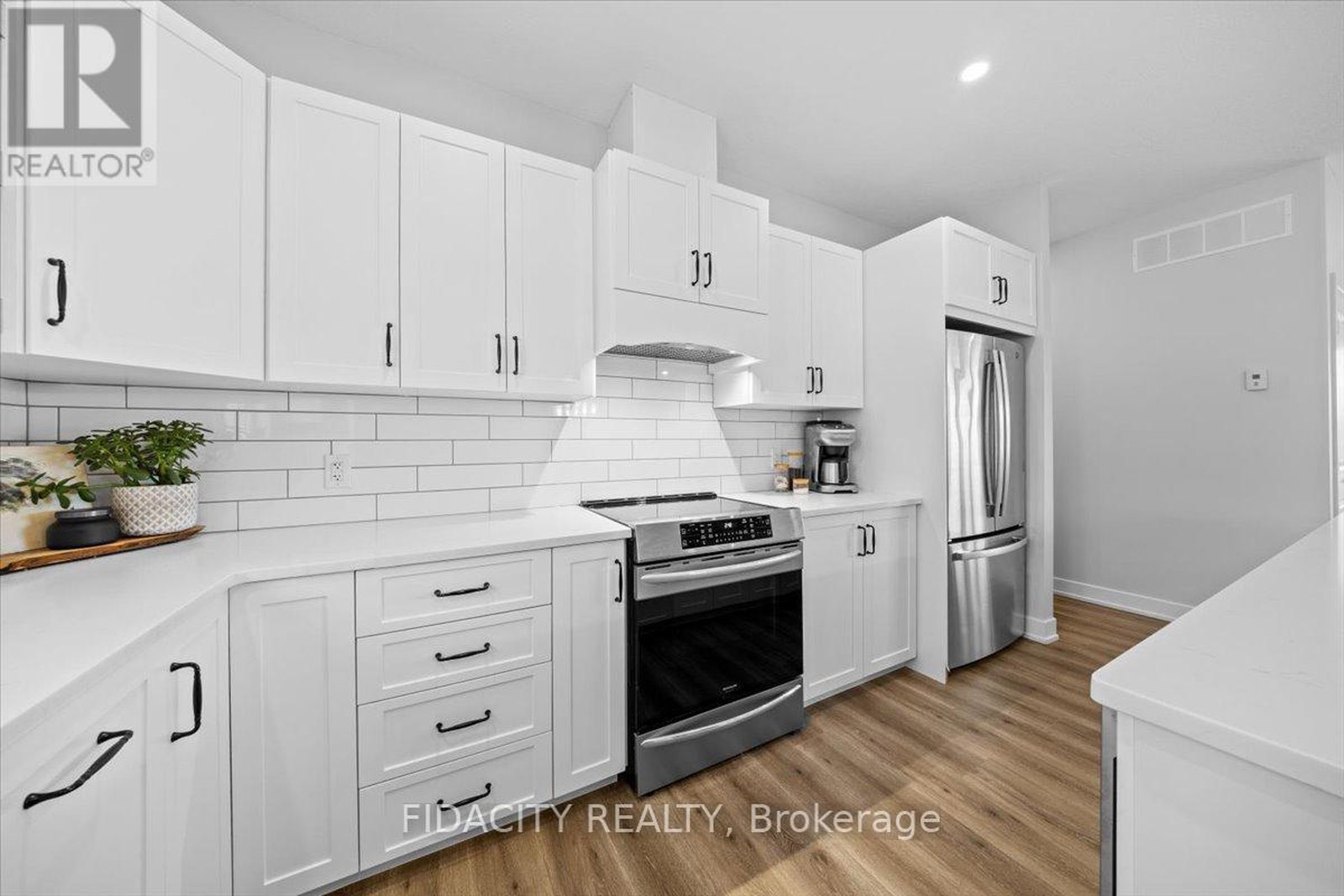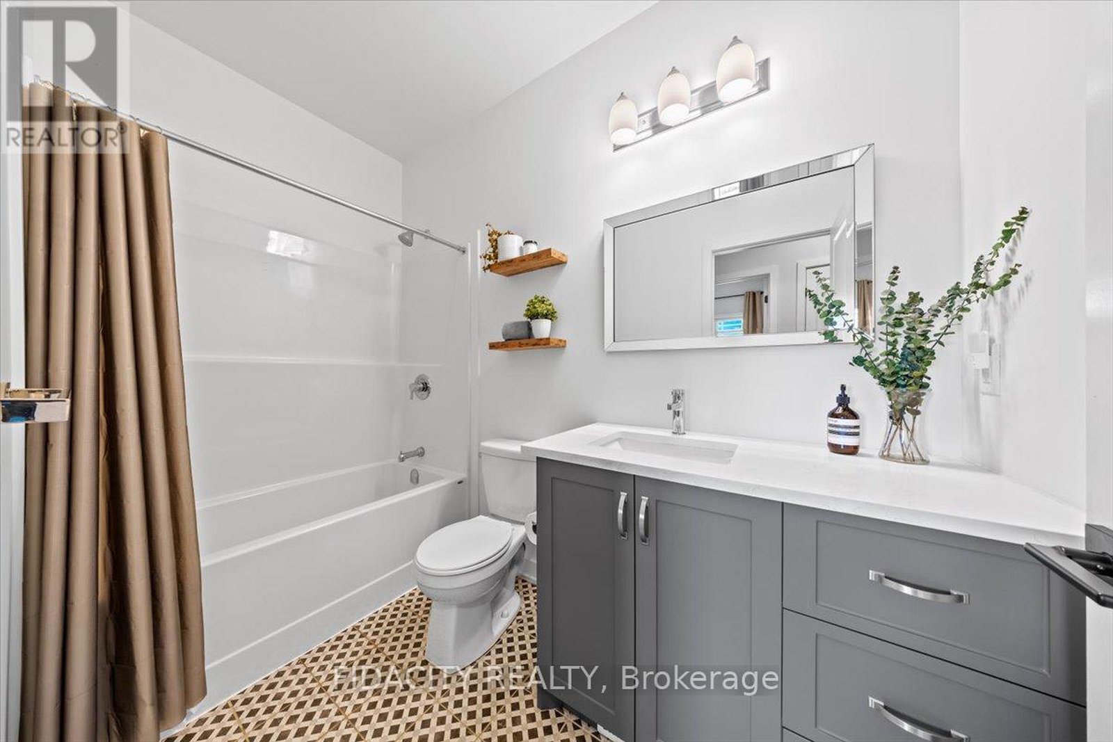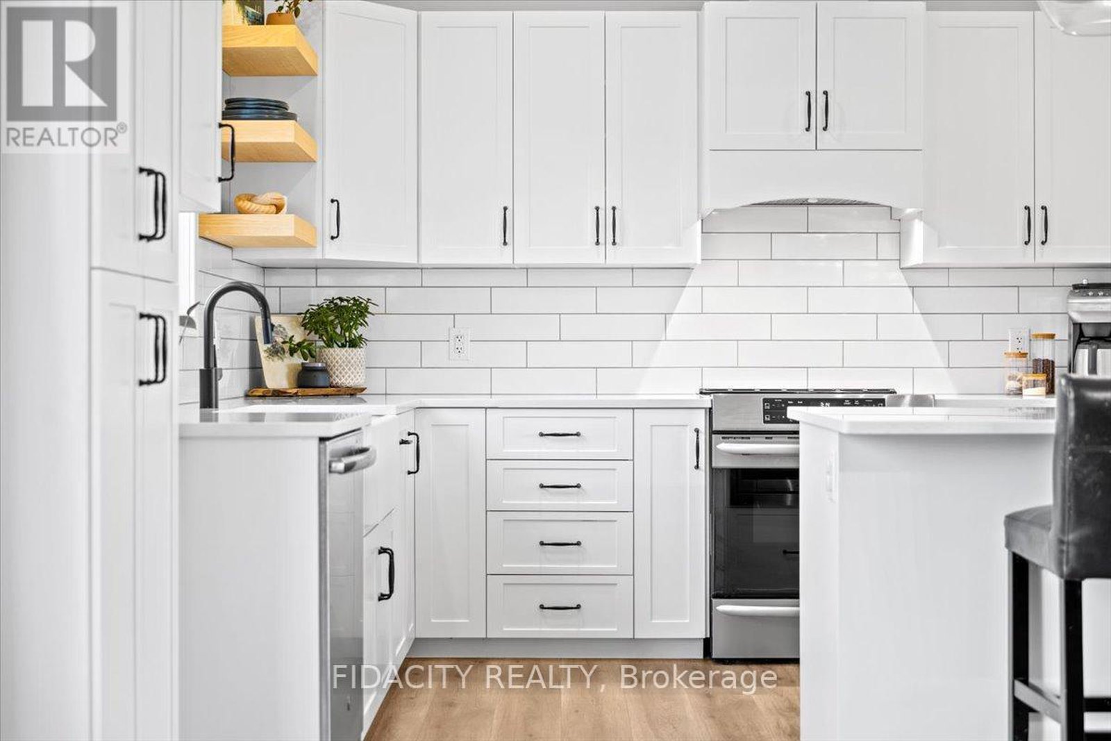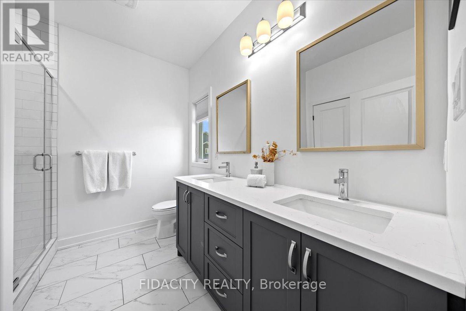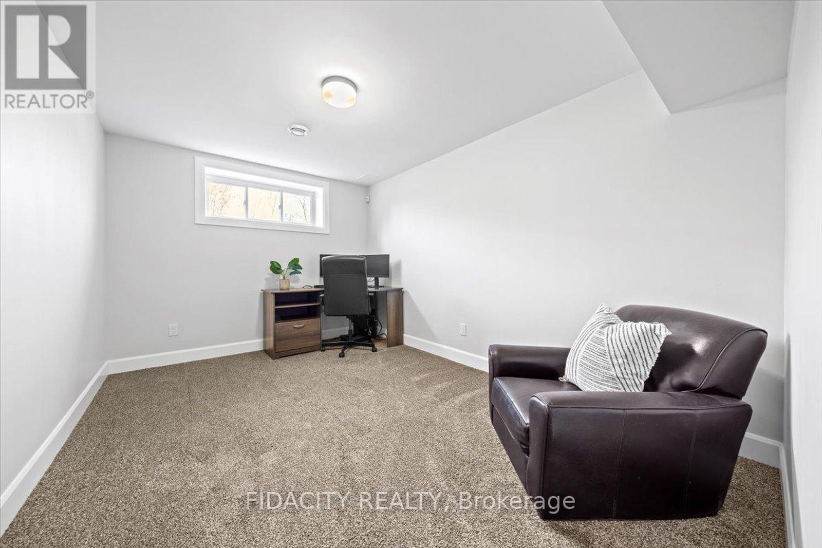 Welcome to 282 Ej's Lane, a stunning 3-bedroom bungalow sitting on 3.7 acres in the highly sought-after Moodie Estates. Nestled on a quiet street with no rear neighbours, this home offers privacy and tranquility with a long driveway leading to a double car garage featuring 11.5 feet ceilings. The main floor boasts 9-foot ceilings throughout and an open-concept layout with a beautifully upgraded chef's kitchen showcasing white cabinetry, quartz countertops, a large island with seating for four, built-in microwave, ample storage, and a farmhouse sink overlooking the picturesque yard. The spacious dining area is perfect for hosting family and friends, while the bright living room features large windows that flood the space with natural light and a cozy gas fireplace with a stone surround and wood mantle. The bedrooms are thoughtfully separated from the main living area, with the primary suite offering space for a king-sized bed, a walk-in closet, and a luxurious 4-piece ensuite with a glass shower, double sinks, and a double-door linen closet. The two additional bedrooms are well-sized with beautiful windows and accent walls. The lower level doubles the sqft and includes a finished office and bathroom rough-in, ready for your finishing touches. A functional mudroom and laundry area provide direct garage access and additional storage. Outside, enjoy a beautifully landscaped yard with a cozy firepit area and full front and back irrigation system to keep your lawn lush all summer long. Additional highlights include a gas BBQ line, Bell Fibe availability, constant pressure system, GenerLink at the meter base, upgraded siding, owned hot water tank and much more! The property's acreage extends into the trees to the right of the property and the neighbour owns the other half. Forest to the back and side lead to walking trails, all just minutes from Carleton Place and a short drive to Ottawa. This is one you don't want to miss!