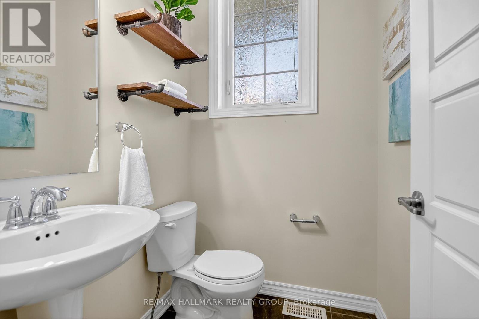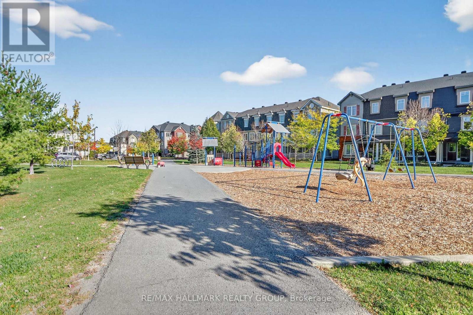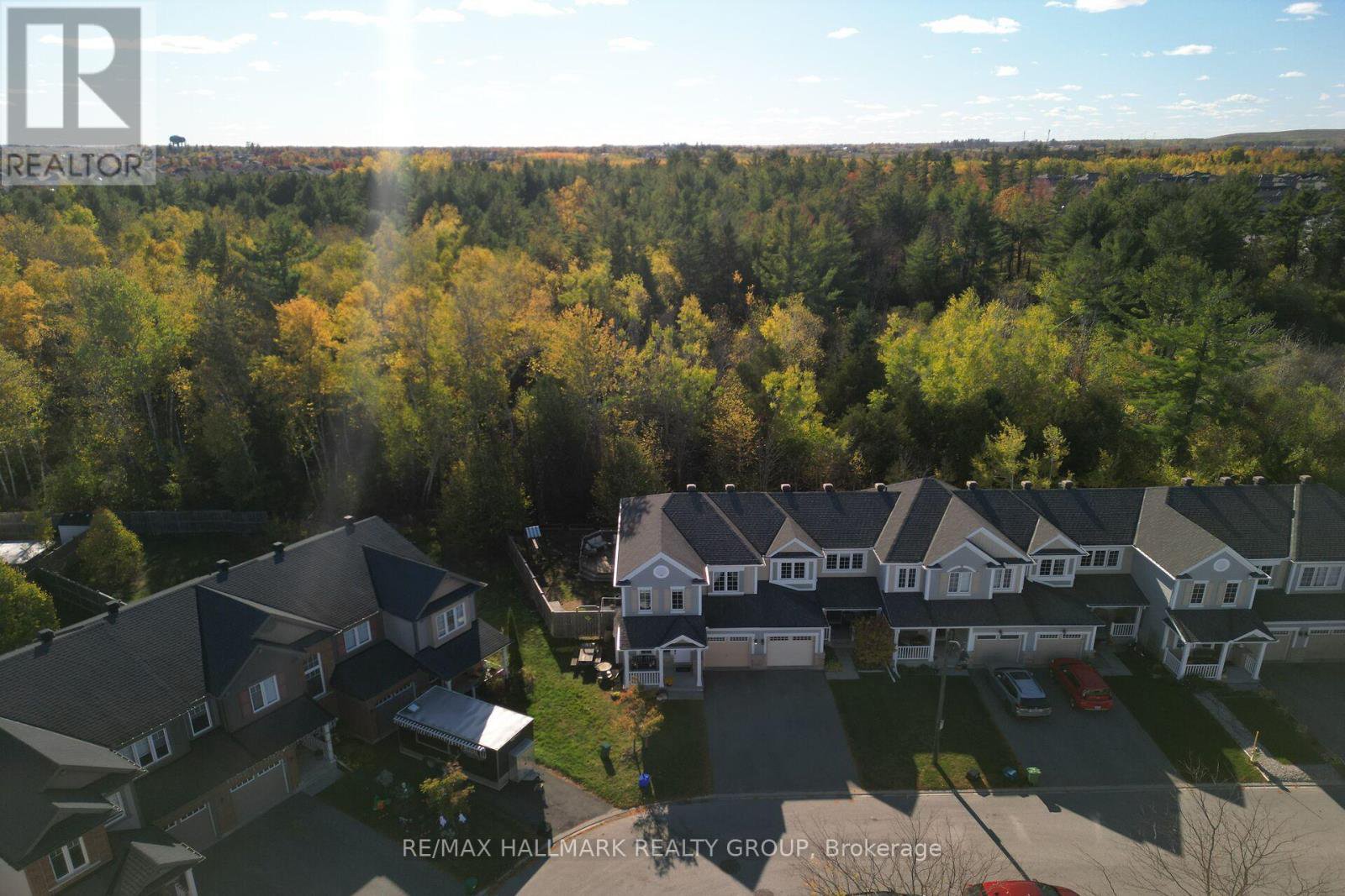 Backyard goals start here. Enjoy a rare outdoor lifestyle with this sun-filled upgraded end unit on a premium pie-shaped lot at the end of a quiet, low-traffic crescent. The oversized, fully fenced yard, with an expansive deck and gazebo, makes everyday living and weekend hosting effortless: BBQs, yard games, play structures and room for pets, plus parking for three (2 car driveway + single garage). Move-in ready: freshly painted with new flooring in key areas, a bright open concept main level. The modern kitchen features granite counters, a large peninsula with an extended breakfast bar, five appliances and generous storage. Upstairs, a spacious primary retreat offers a walk-in closet and an upgraded ensuite with an oversized glass shower. Handy second-floor laundry with storage cabinetry. The lower level adds a beautifully finished family room - perfect for movie nights, a playroom or home gym, plus utility and ample storage. Central air + all Appliances Included. Pride of ownership throughout. Seller has prepaid front-step + parging repair + interlock walkway - to be completed this fall. Walk to nearby parks, schools and trails; minutes to Tanger Outlets, Canadian Tire Centre, Hwy 417 and weekend favourites like Saunders Farm. A standout Stittsville home, big yard, energy, and townhome simplicity.