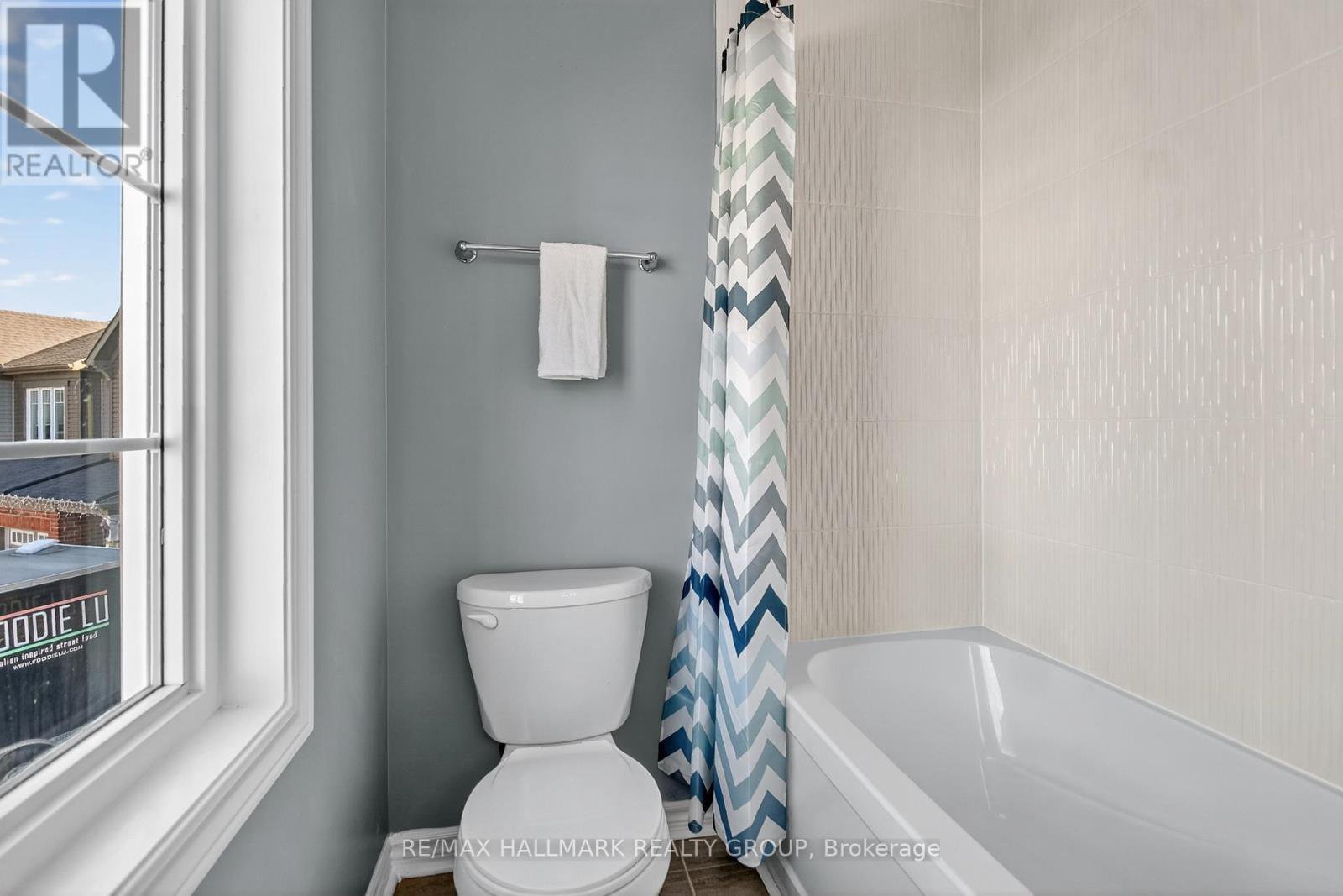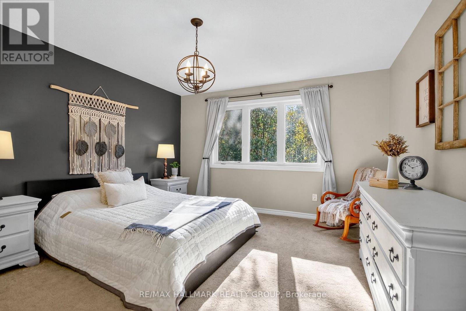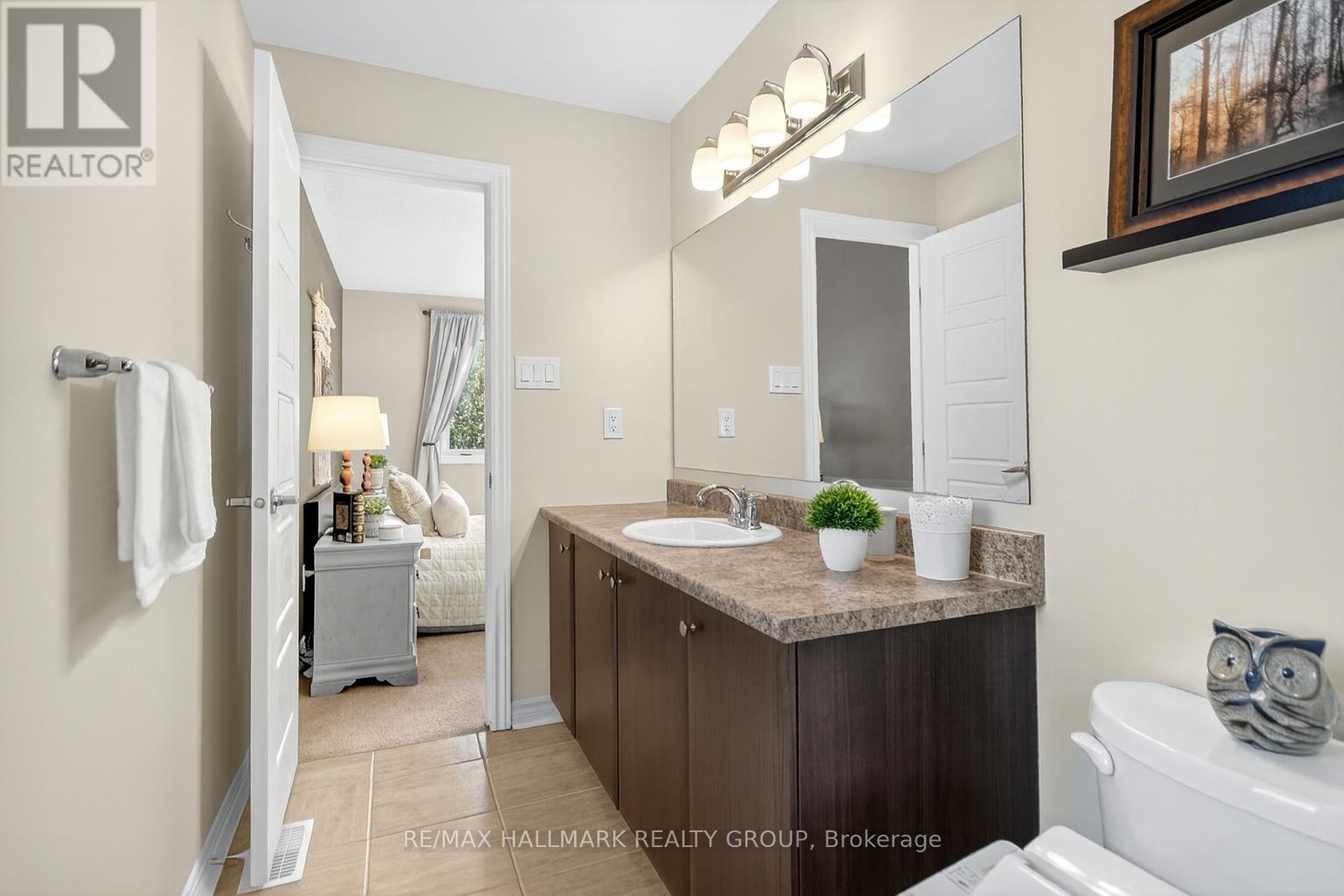 Backyard goals start here. Enjoy a rare outdoor lifestyle with this sun-filled upgraded end unit on a premium pie-shaped lot at the end of a quiet, low-traffic crescent. The oversized, fully fenced yard, with an expansive deck and gazebo, makes everyday living and weekend hosting effortless: BBQs, yard games, play structures and room for pets, plus parking for three (2 car driveway + single garage). Move-in ready: freshly painted with new flooring in key areas, a bright open concept main level. The modern kitchen features granite counters, a large peninsula with an extended breakfast bar, five appliances and generous storage. Upstairs, a spacious primary retreat offers a walk-in closet and an upgraded ensuite with an oversized glass shower. Handy second-floor laundry with storage cabinetry. The lower level adds a beautifully finished family room - perfect for movie nights, a playroom or home gym, plus utility and ample storage. Central air + all Appliances Included. Pride of ownership throughout. Seller has prepaid front-step + parging repair + interlock walkway - to be completed this fall. Walk to nearby parks, schools and trails; minutes to Tanger Outlets, Canadian Tire Centre, Hwy 417 and weekend favourites like Saunders Farm. A standout Stittsville home, big yard, energy, and townhome simplicity.