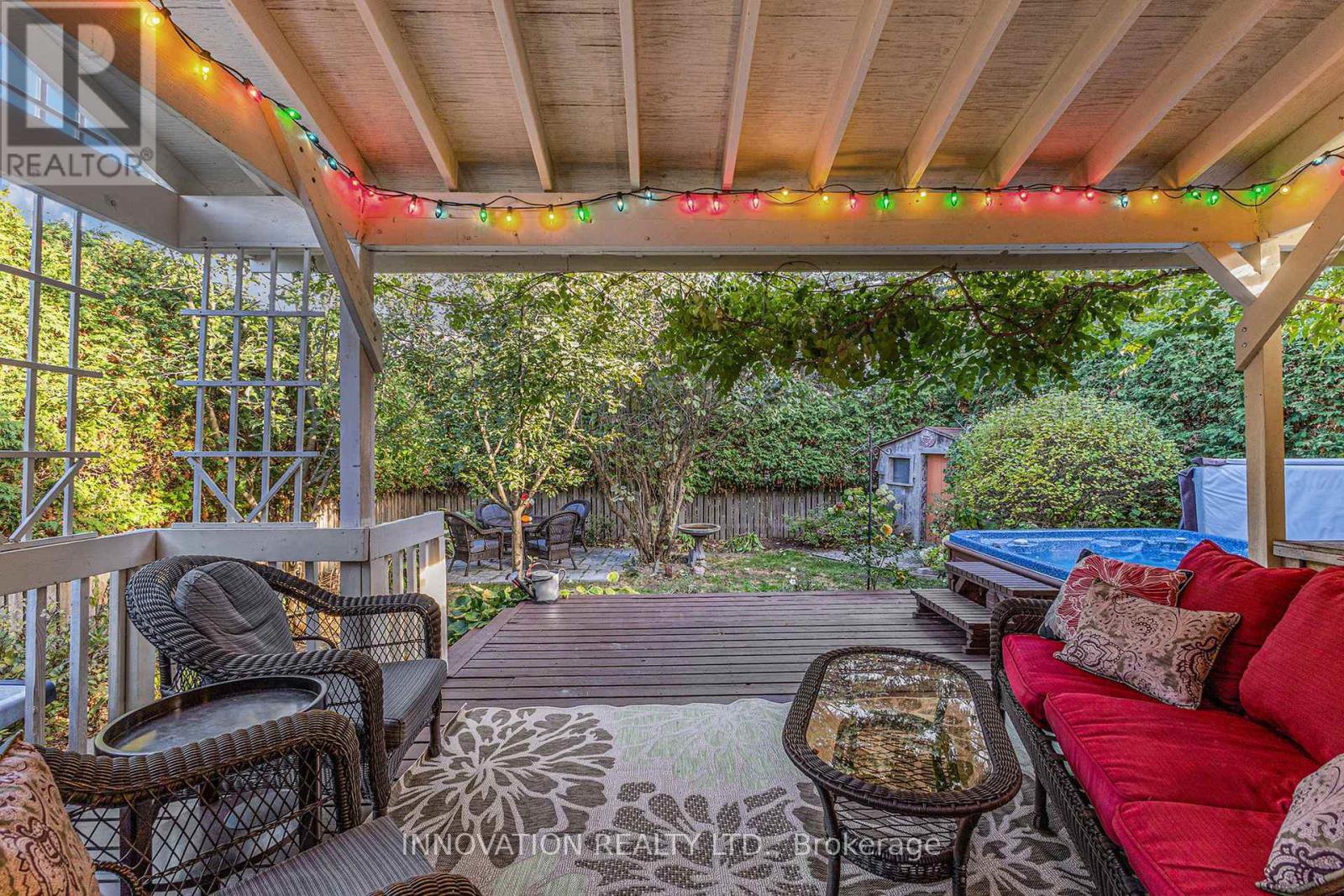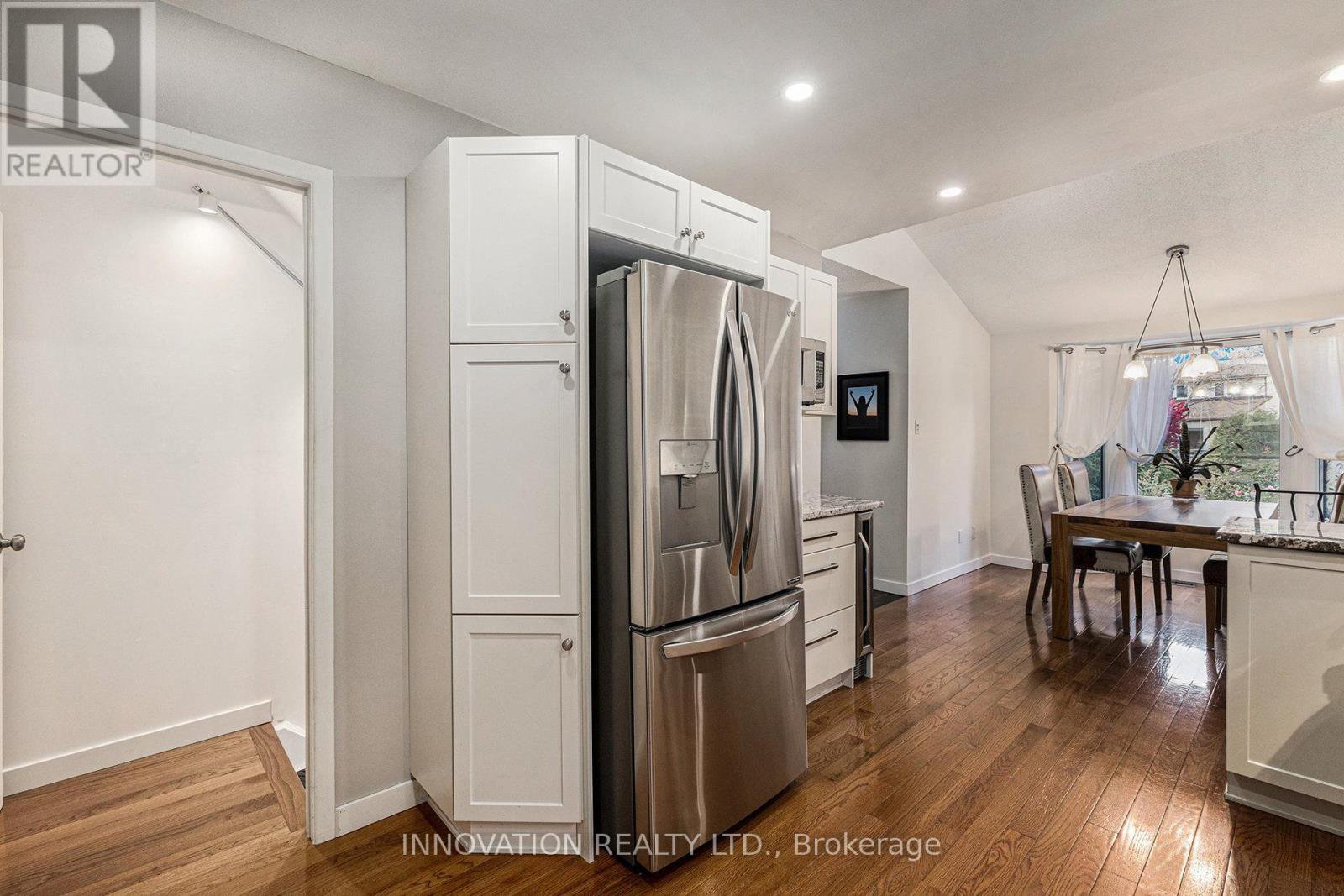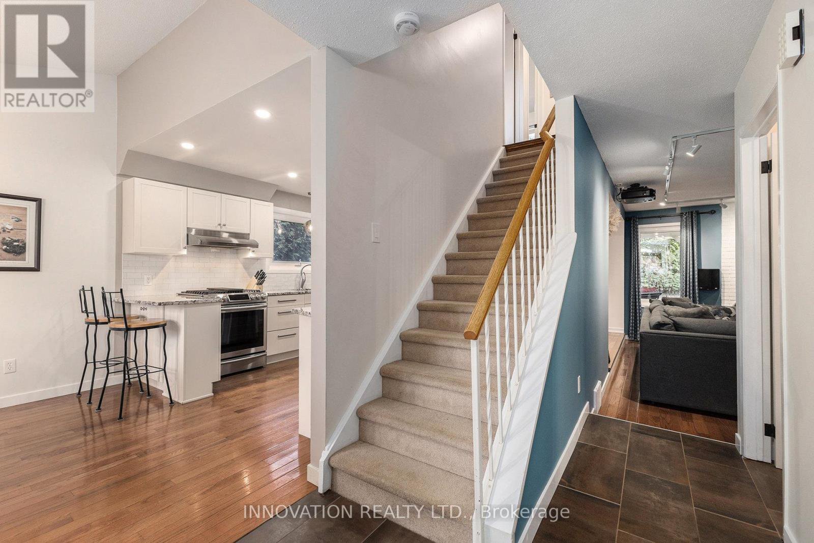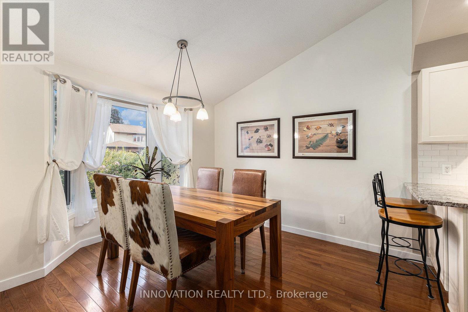 Welcome to this beautifully updated detached two-storey home located on a quiet crescent within a five minute walking distance from two elementary schools and a high school - the perfect setting for families! Enjoy the ultimate in convenience with quick access to Highway 417, Terry Fox Drive, and the abundance of nearby shopping, restaurants, parks, Kanata Leisure Centre and Wave Pool and the Canadian Tire Centre - all just minutes away. Inside, you'll find a warm and inviting layout featuring 3 spacious bedrooms, 3 baths, and hardwood floors throughout (2021). The cozy wood-burning fireplace anchors the living room, enhanced by Lutron remote lighting in key rooms for comfort and style. The heart of the home is the modern, fully remodeled kitchen (2020), showcasing granite countertops, tile backsplash, stainless steel appliances including a gas stove, wine fridge, Bosch dishwasher, and LG refrigerator - perfect for cooking and entertaining. The adjacent dining area opens to a covered back deck overlooking a private, fully fenced yard (new in 2023) with perennial gardens and two apple trees, creating a tranquil outdoor retreat. Other notable updates and features include: new front deck (2023), roof (2017), attic insulation upgrade (2019), furnace (2017), driveway paved (2024) and professionally sealed (2025), natural gas Napoleon BBQ hookup, high-speed fibre high-speed internet, Electrolux washer & dryer (2019). This home also offers a partially finished basement, attached garage, parking for 3-4 vehicles and combines modern upgrades with everyday practicality in one of the most convenient and family-friendly locations in the city. Don't miss your opportunity - book your showing today!