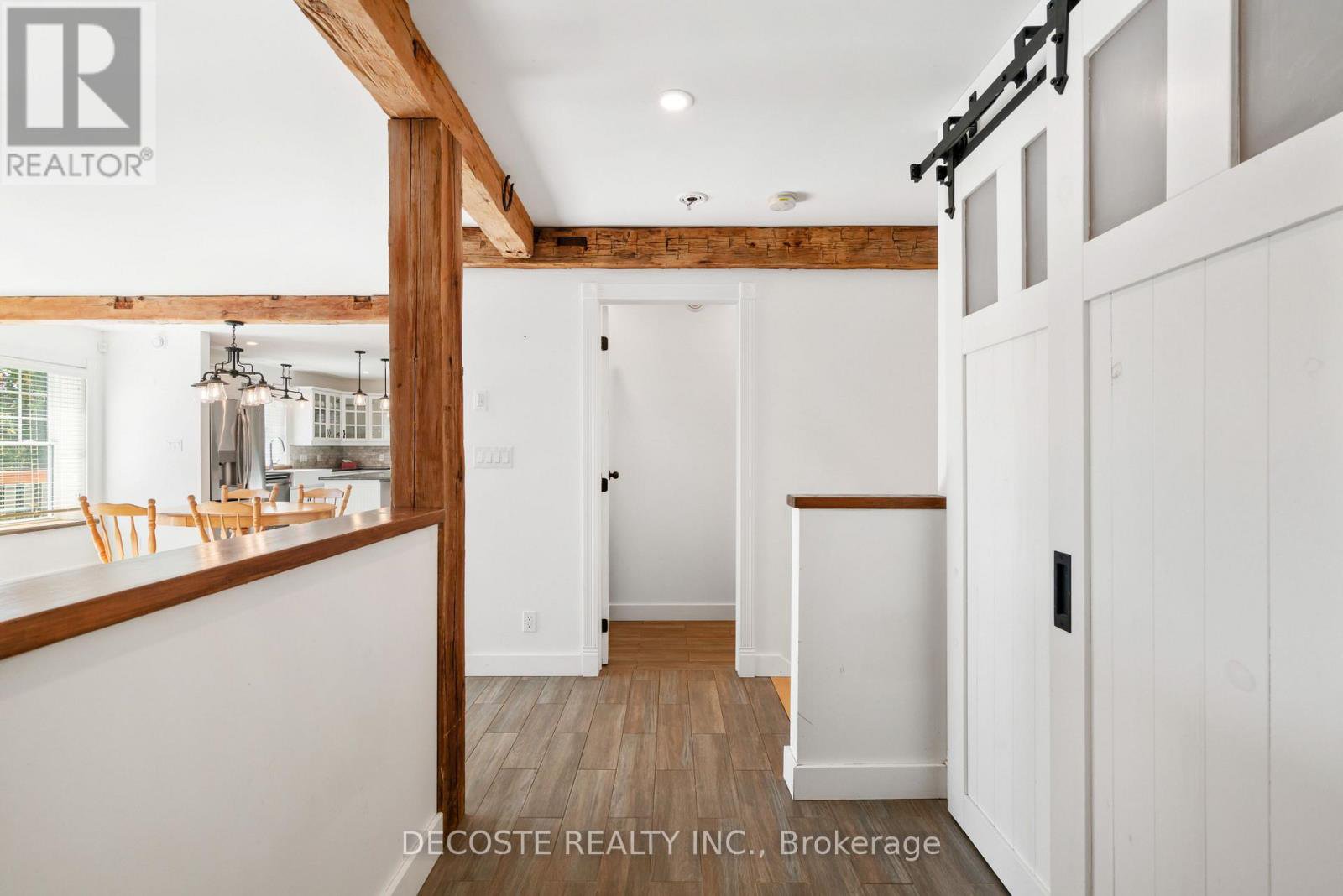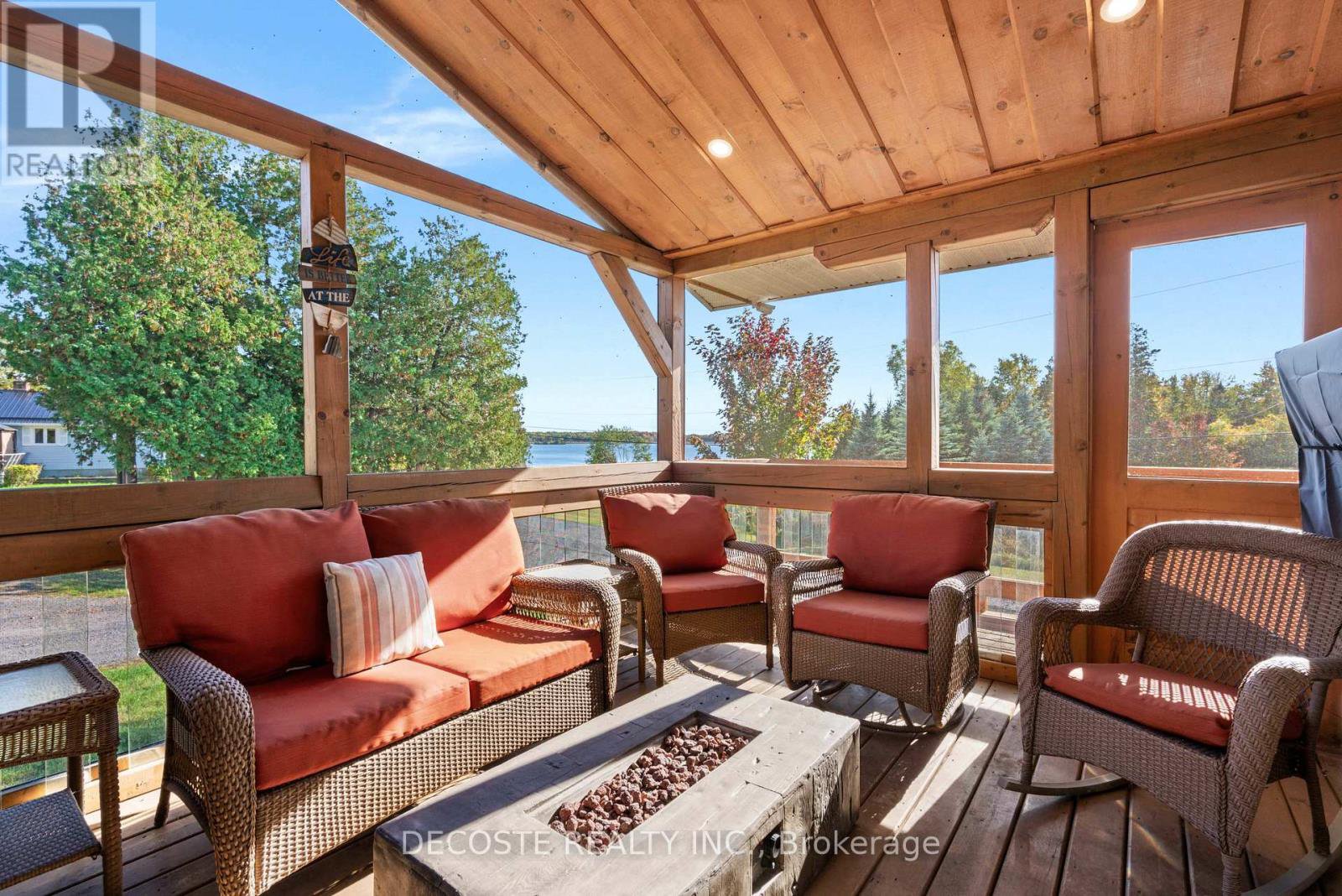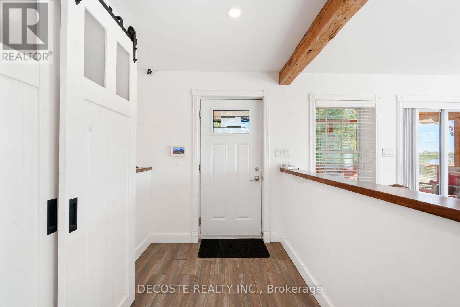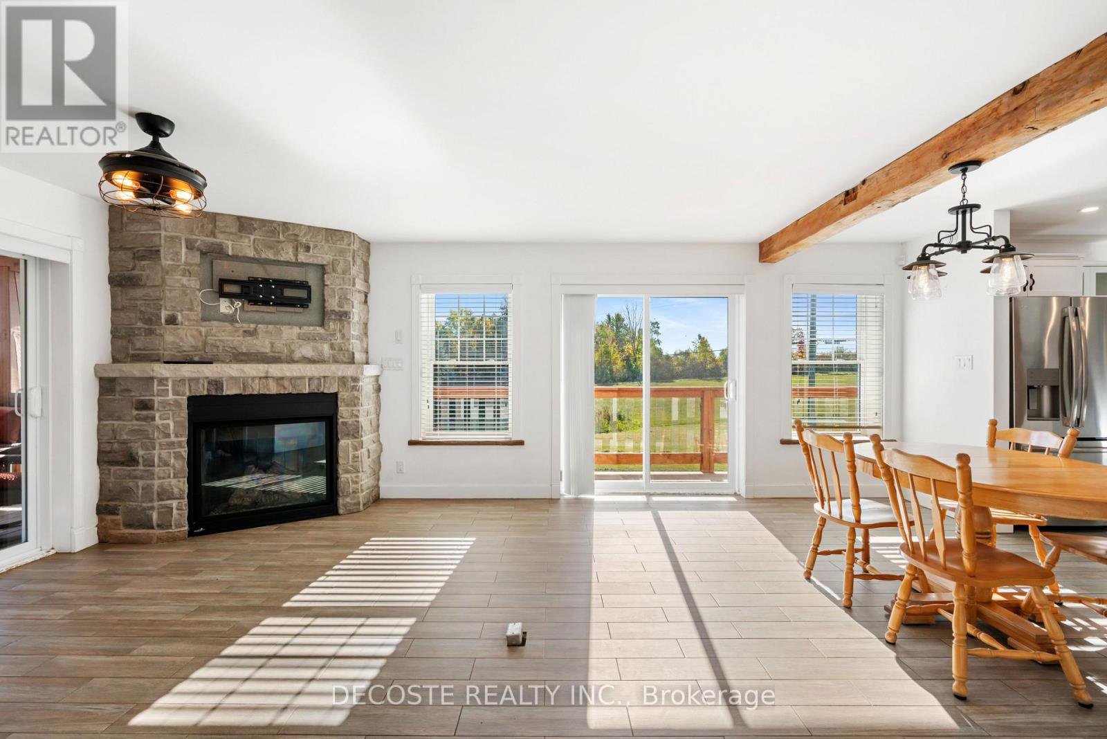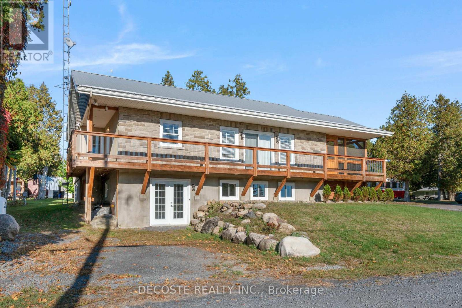 Spectacular Home with a Magnificent View of Loch Garry Lake! Built in 2017 with quality craftsmanship, this raised bungalow offers stunning lake views and modern comfort. The stone exterior and two-sided wraparound deck set the tone for relaxed lakeside living. Enjoy the enclosed 3-season porch featuring a built-in propane fireplace and TV area - the perfect spot to unwind year-round. Additional highlights include an attached single-car garage, a walk-out basement with potential for an in-law suite, and radiant floor heating throughout for cozy winters, complemented by a heat pump for efficient air conditioning in summer. The main floor showcases exposed barn beams, a bright modern kitchen with a farmhouse sink, quartz countertops, built-in oven and stove, and stainless steel appliances. Ceramic flooring, ceiling fans, and two sets of patio doors leading to the deck and covered porch add to the homes charm and functionality. With direct access to Loch Garry and a beautiful sandy beach, this property offers more than just a home its a retreat where you can truly relax and enjoy life by the water.