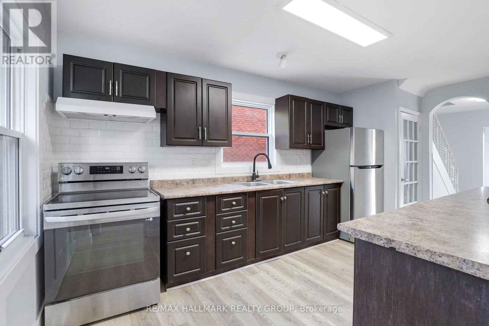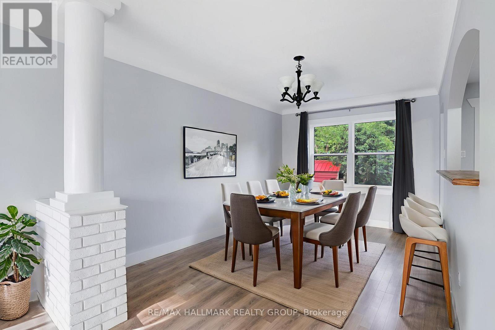 Welcome to 1108 Merivale Road a charming freehold semi-detached home offering space, comfort, and versatility in a central Ottawa location. The main floor features a bright layout with defined living, dining areas and a kitchen that opens to the dining space with a convenient breakfast bar perfect for casual meals or entertaining. Upstairs, you'll find three well-sized bedrooms and a full bathroom. The fully finished basement offers a large rec room and a second full bathroom ideal for guests, a home office, or additional living space. Step outside to enjoy a fully fenced backyard, perfect for summer gatherings or quiet relaxation. A dedicated parking space is included. Located close to transit, shopping, schools, and amenities, this home is a fantastic opportunity for first-time buyers, families, or investors. Key updates include: roof (2018), windows (2018), furnace (2014), main floor hardwood (2023), updated bathrooms (2017), updated kitchen (2017), lighting fixtures (2023), and fully finished basement (2023).