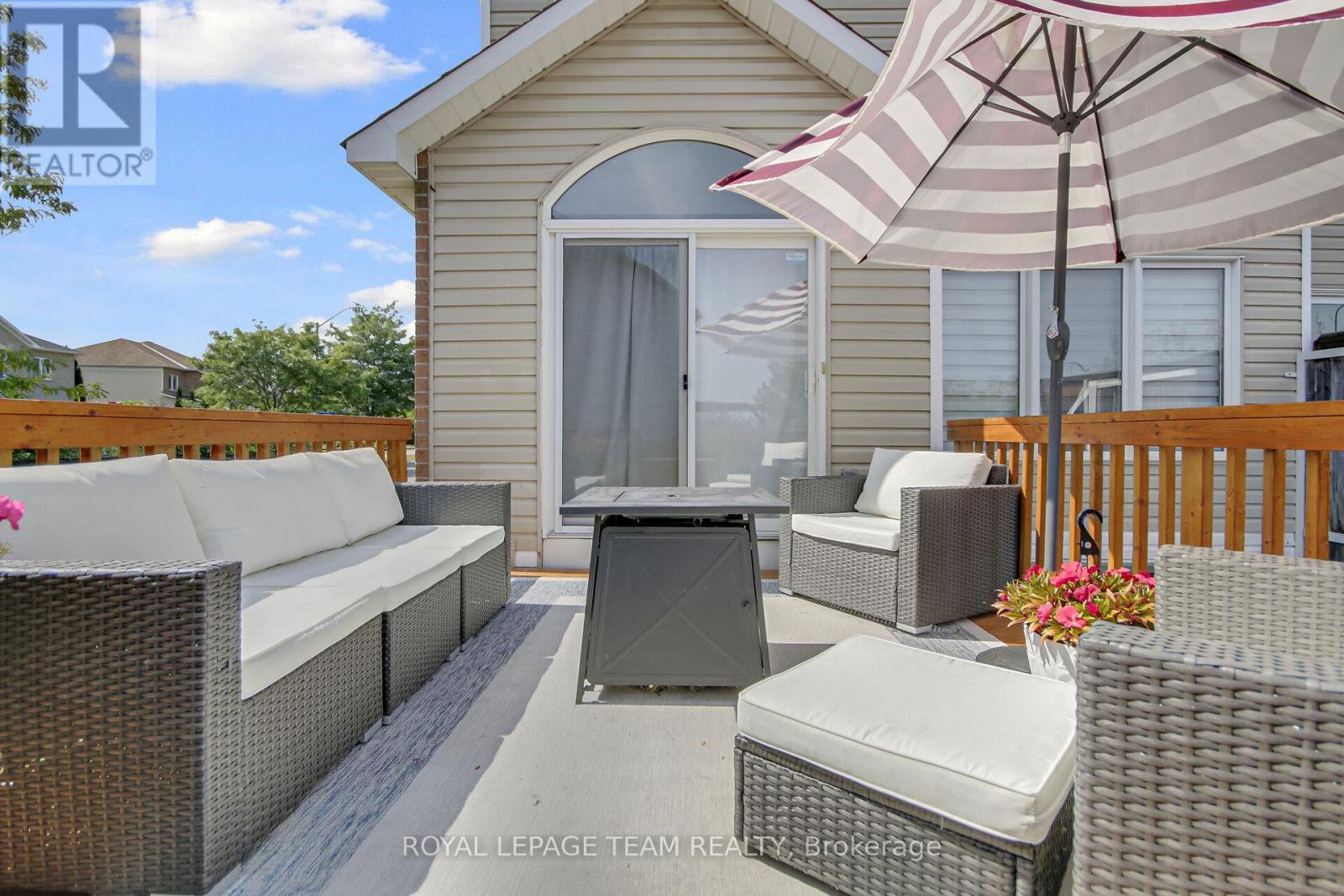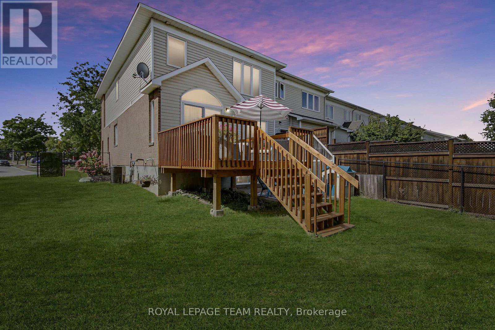 Welcome to 2001 Dunollie Crescent, a beautiful end-unit townhome in the heart of sought-after Morgan's Grant. Perfectly situated on an expansive pie-shaped lot, this property offers privacy and outdoor living space rarely found in the area. From the moment you arrive, you'll appreciate the welcoming curb appeal and landscaped gardens that frame this home. NEW ROOF - 40 YEAR TRANSFERABLE WARRANTY INSTALLED - OCTOBER 6TH, 2025. The main level features rich hardwood flooring and a tiled entry with a custom-built sitting bench for everyday convenience. A stylish formal dining room and an inviting living room filled with natural light create ideal spaces for entertaining and daily living. The eat-in kitchen, designed with a vaulted ceiling, enhances brightness and airiness, while tasteful updates make it a perfect spot for meals and gatherings. Shiplap feature walls add custom touches and character, while the décor flows seamlessly throughout, offering a true move-in-ready experience. Upstairs, discover a thoughtful layout with 3 bedrooms plus a versatile loft perfect as a home office, potential bedroom, children's playroom, or cozy reading nook. The home boasts 2.5 bathrooms, including a refreshed ensuite that blends modern comfort with function. The fully finished basement expands your living options with new luxury vinyl flooring (2025), a cozy gas fireplace, and plenty of flexible space for recreation, work, or relaxation. Step outside to a private backyard oasis: a fenced yard with lush gardens, a spacious deck and patio retreat, plus recessed deck lighting for evening ambiance. With a brand-new roof, transferable warranty, and recent price improvement, this home is move-in ready, offering peace of mind for todays buyer. And with a location close to schools, parks, trails, shopping, and transit, 2001 Dunollie Crescent delivers charm, style, and convenience in one of Kanata's most desirable communities.