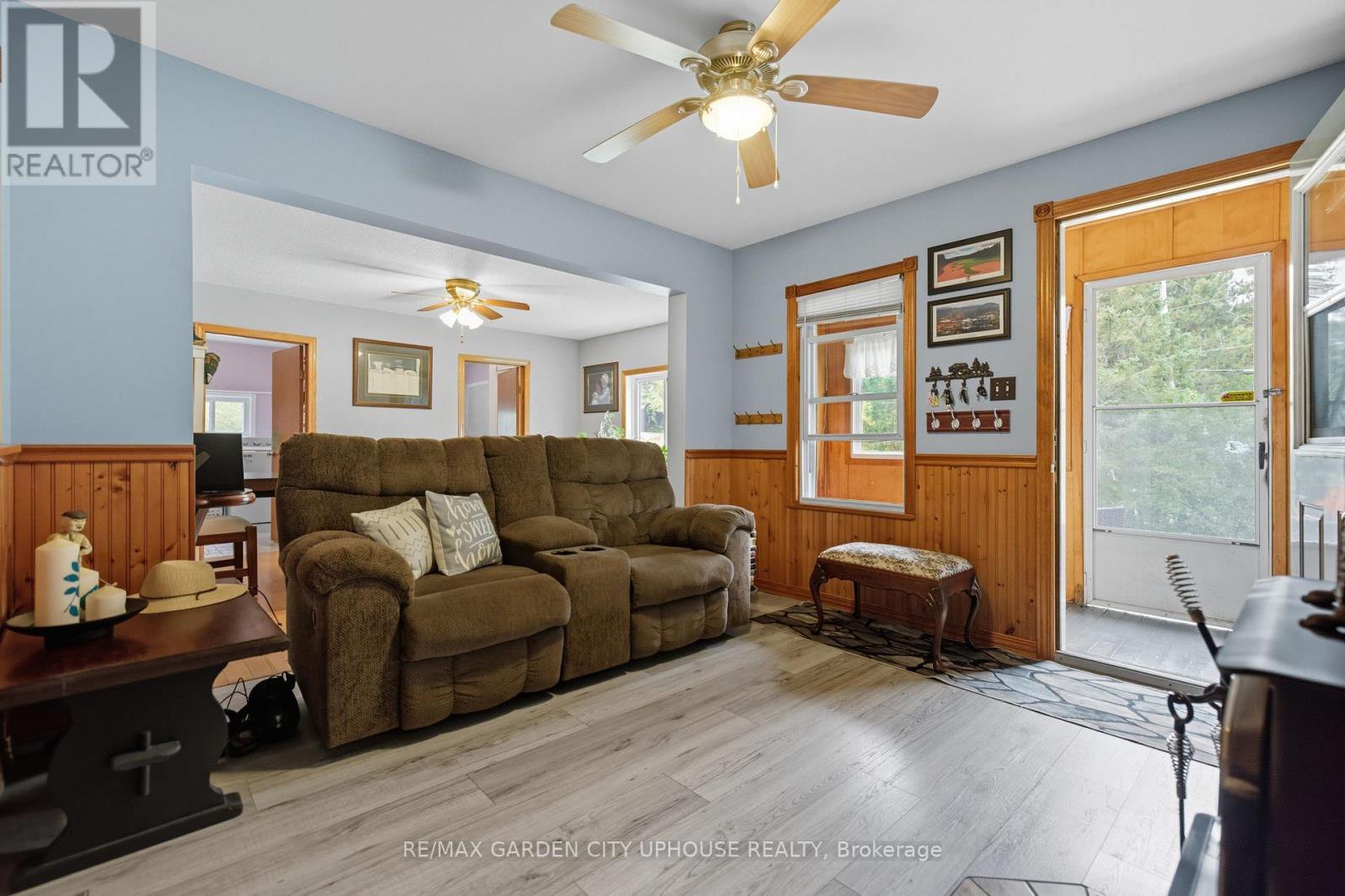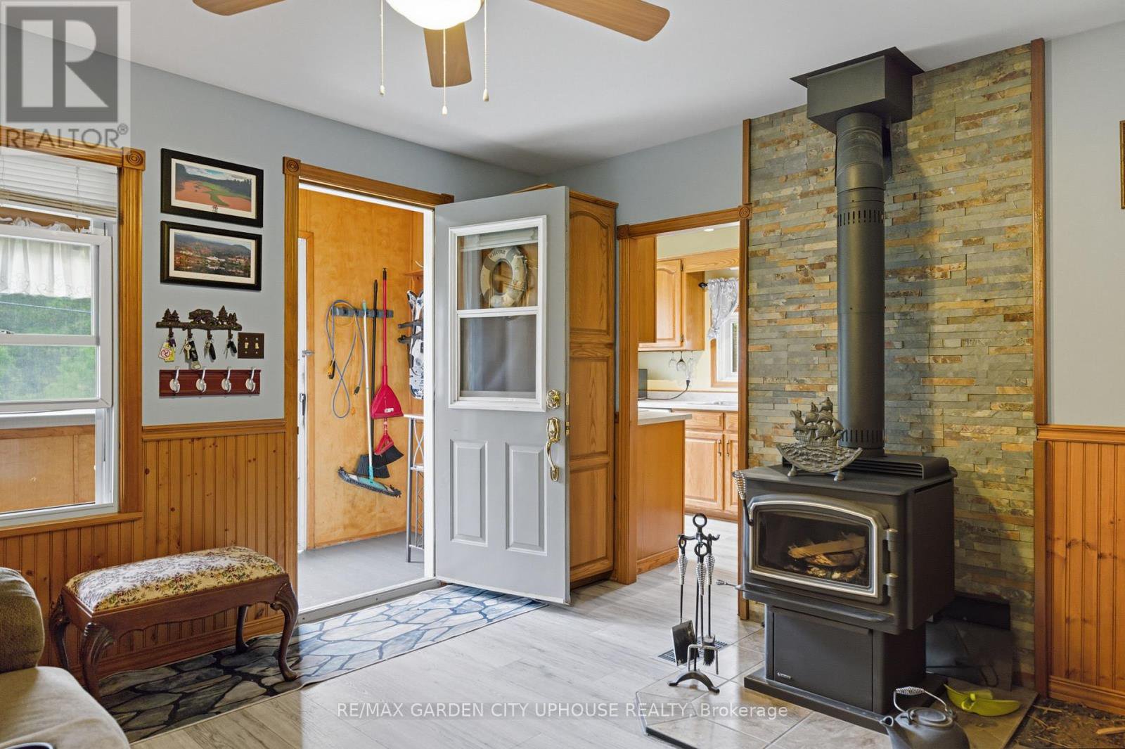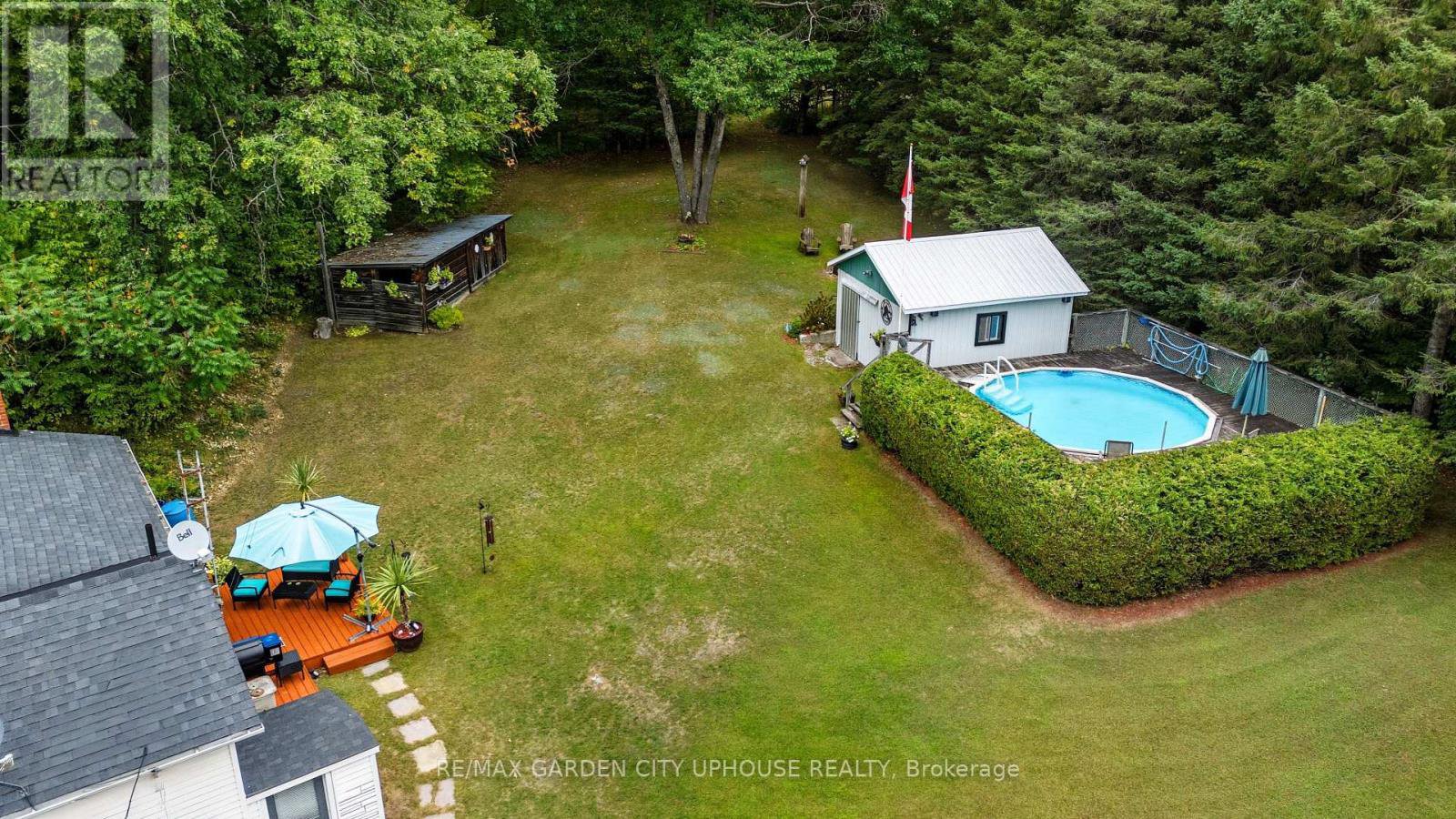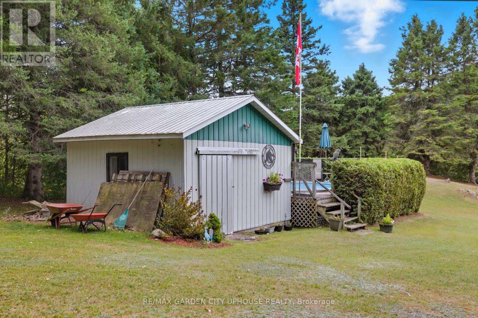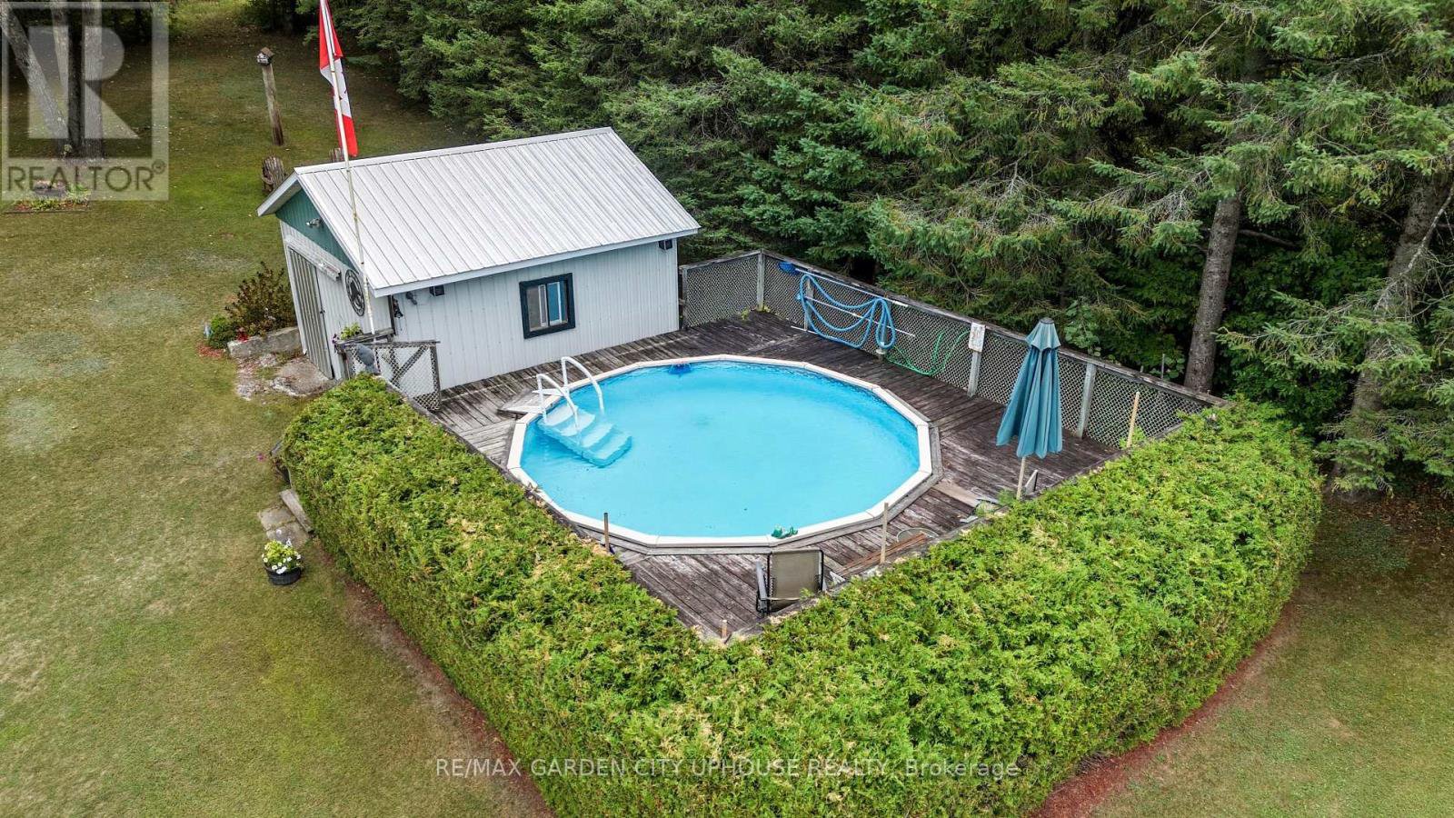 Imagine waking up in the morning and sitting outside with your morning coffee listening to the birds. No hustle of the city while you overlook your acre of land, tons of space to enjoy all your outdoor hobbies. Imagine snow shoeing in the winter and coming home to enjoy a cozy wood fire or enjoy your summers golfing then jumping in the pool. 4588 McDonalds Corners Road offers amazing outdoor space and tons of outdoor storage. This property has a large 26x24 double car detached garage, a separate storage shed, wood shed, and a pool shed. Inside, you are greeted with country charm with hardwood floors, brand new vinyl flooring and tons of light. A beautiful stone chimney with electric fireplace insert. With three bedrooms and 1 bath, including a large soaker tub. Updates include kitchen countertops (2024), shower (2024), poney panel for generator, front and back deck (2023). This meticulously maintained bungalow is located only 15 minutes to Perth, close to golf, lakes, and trails. Make a change to life in the country, you won't regret it!