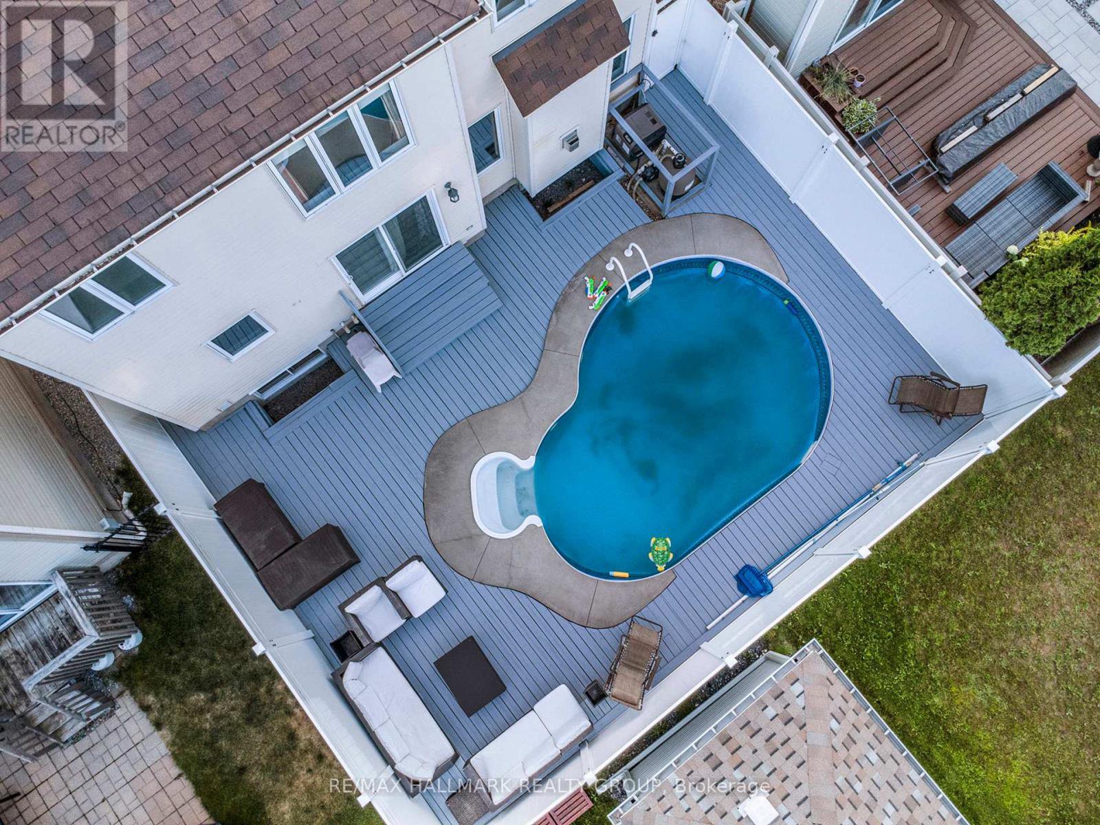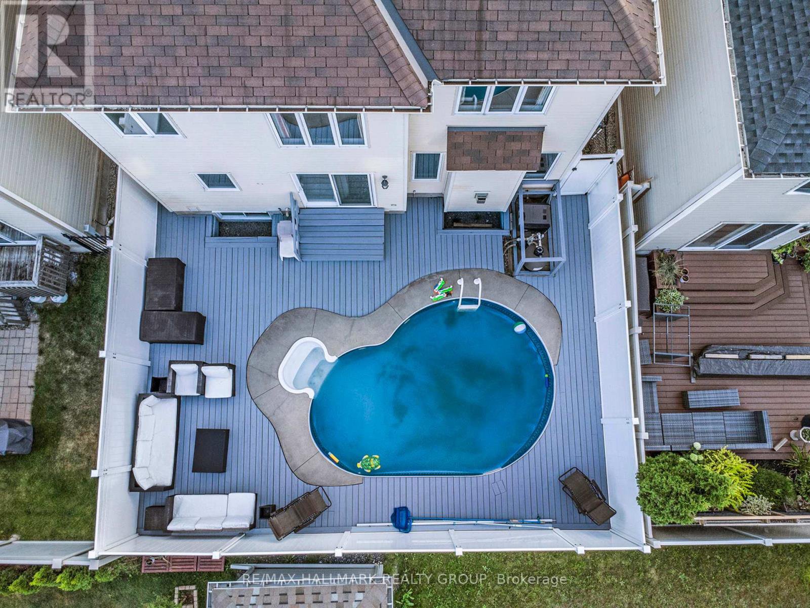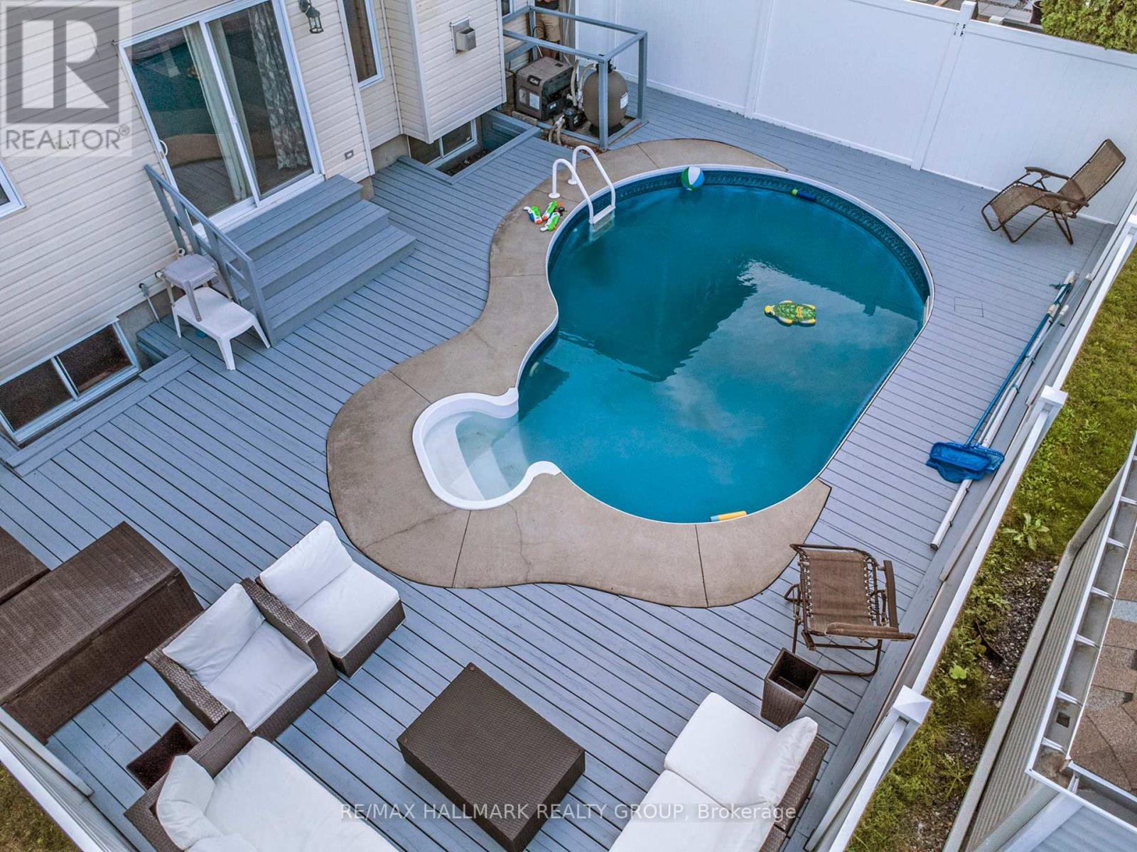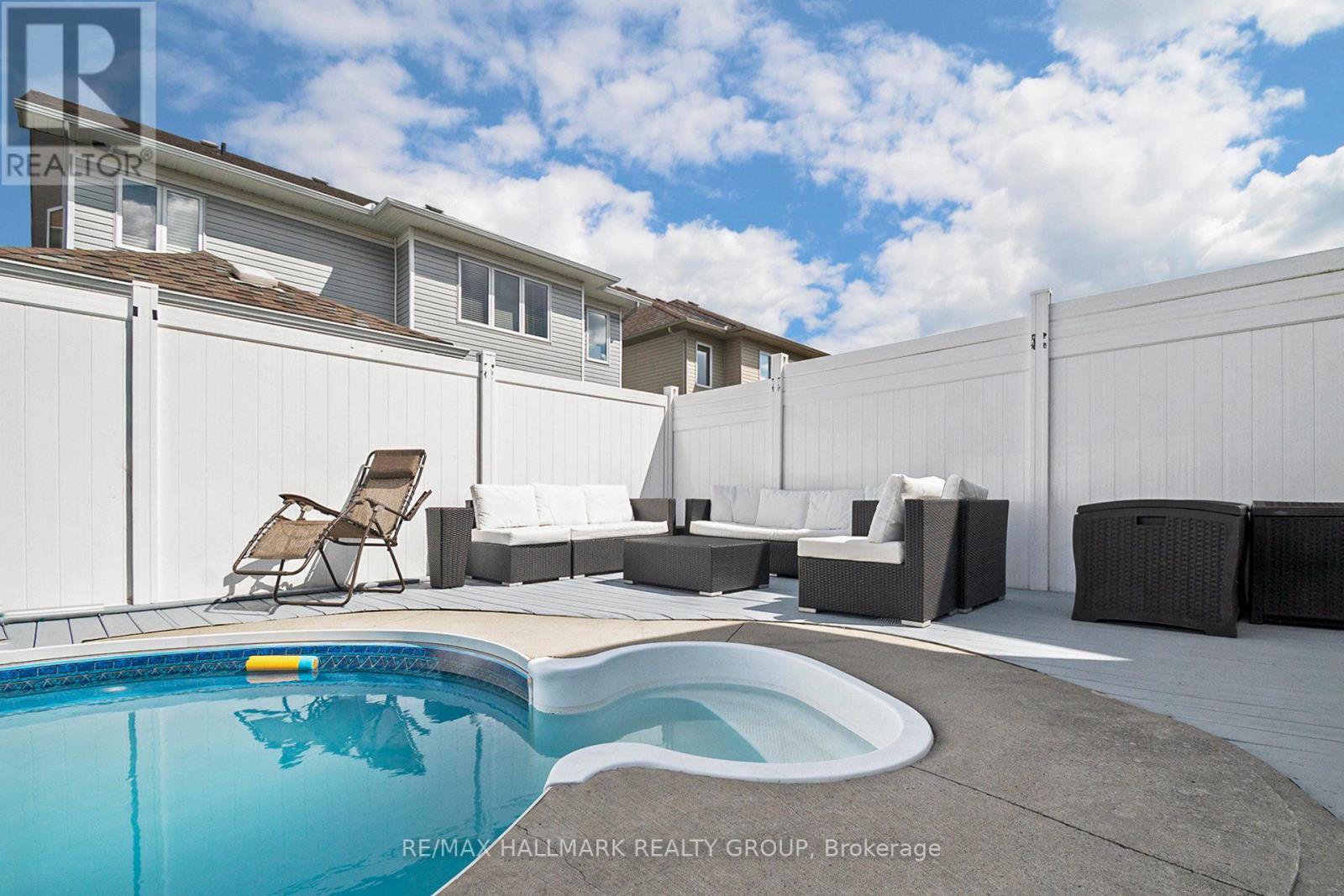 Welcome to 470 Frank Cauley, perfectly situated on one of the most peaceful and sought-after streets in Orleans. This stunning detached home offers 3 spacious bedrooms, 4 bath and a family living with countless upgrades inside and an incredible backyard oasis outside.Step inside to a bright and spacious main level featuring rich hardwood and ceramic flooring. The living room will take your breath away with its soaring vaulted ceiling and oversized arched window, flooding the space with natural light. The inviting family room, complete with a cozy gas fireplace and warm wood mantle, creates the perfect gathering space for relaxing evenings or entertaining. The open-concept kitchen offers granite countertops, stainless steel appliances, a convenient pantry, and an eating area with direct access to the backyard. Main-level laundry adds everyday convenience.Upstairs, the primary retreat includes a sitting area/study nook, a large walk-in closet, and a spa-inspired 4-piece ensuite with separate shower and soaker tub. Two additional bedrooms and a full bathroom complete the second level, designed for comfort and privacy.The fully finished lower level (2019) provides an expansive recreation space, a 3-piece bathroom, and plenty of storage ideal for a home office, gym, or media room.Your private backyard beach oasis is the true showstopper featuring a heated inground saltwater pool, sun-drenched patio, and a large entertaining deck. Whether its hosting summer barbecues or enjoying peaceful evenings by the pool, this backyard delivers the ultimate retreat..A double-wide driveway ensures parking comfort.Located close to schools, parks, trails, shopping, and transit, this move-in-ready home offers the perfect mix of lifestyle, location, and luxury. Recent updates include: full home repaint (2025), garage repaint (2025), driveway resealed (Aug 2025) Truly one of Orleans hidden gems!