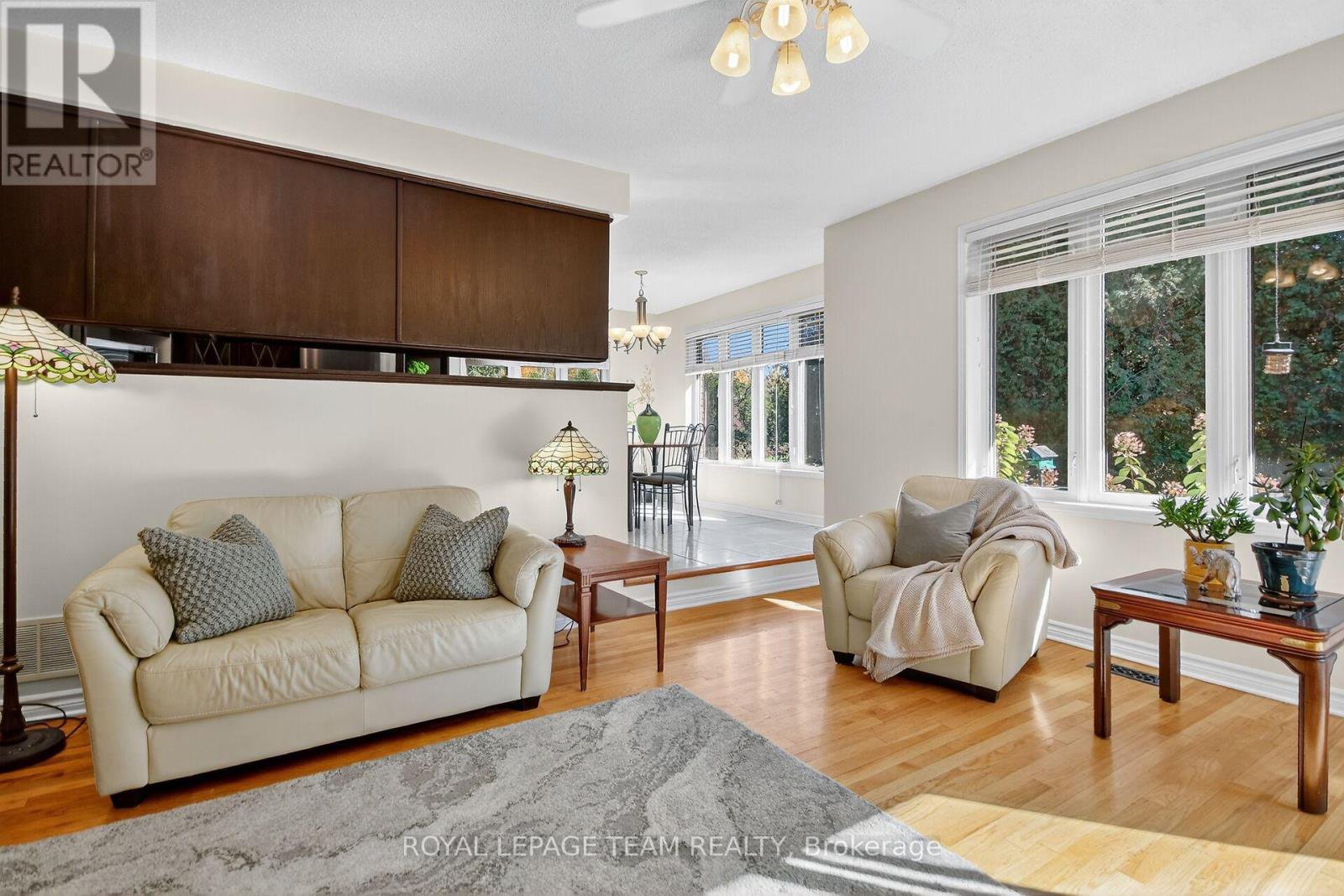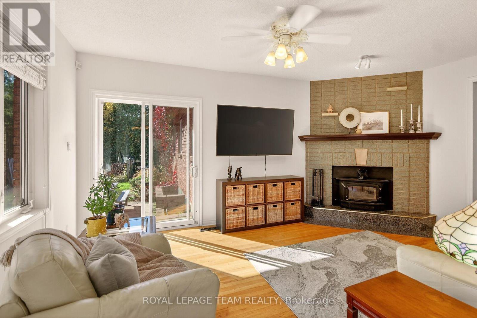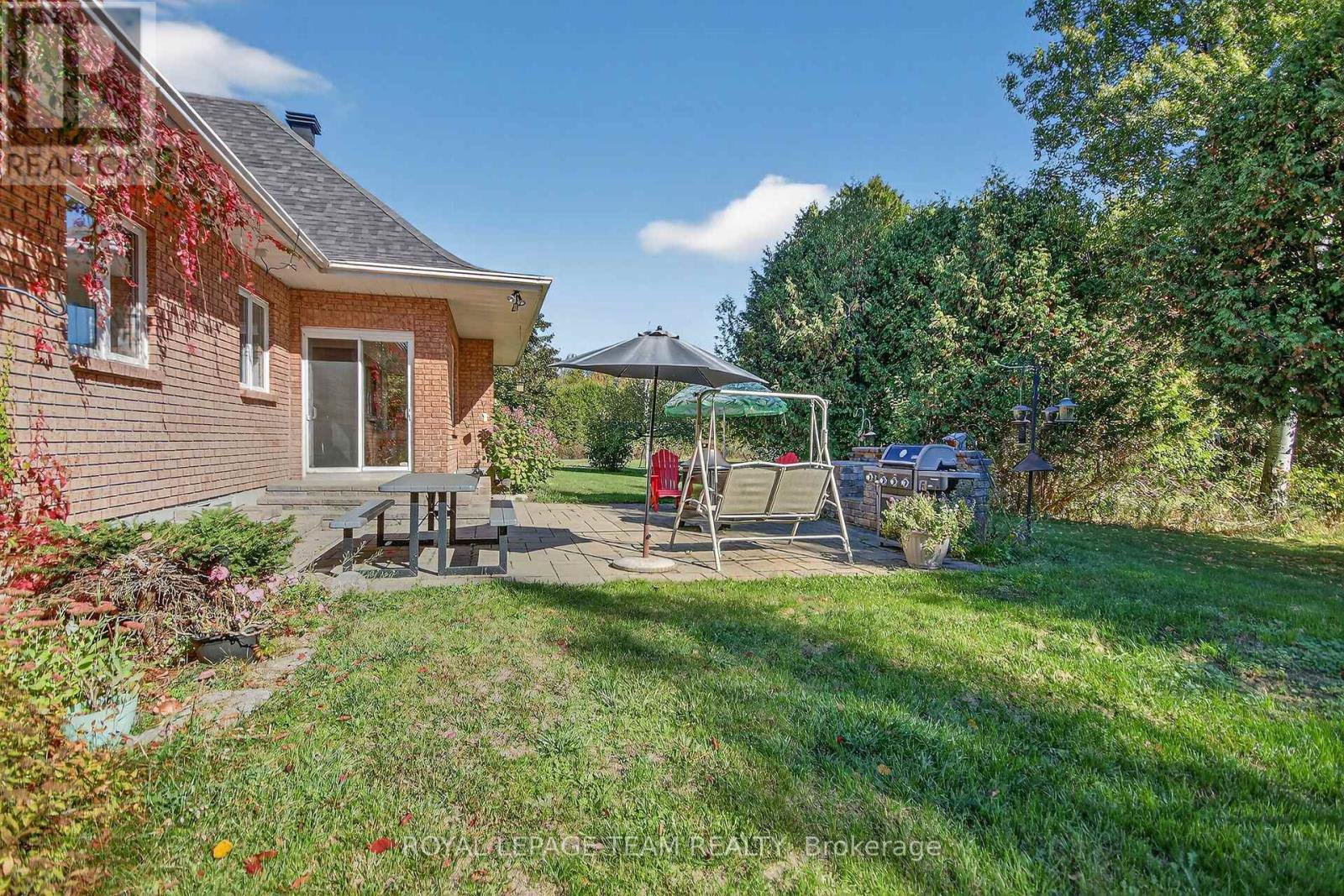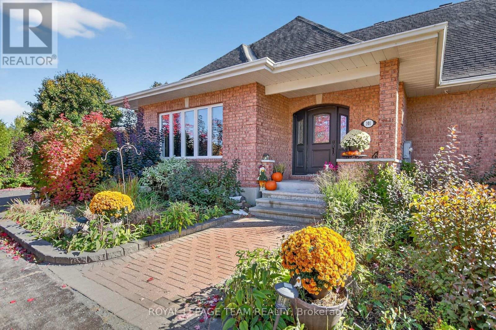 Welcome to 101 Falcon Brook Road, a truly special property that combines peaceful country living with modern comfort, just minutes from Carp Village and Kanata. Set on a fully fenced, private two-acre lot, this all-brick bungalow is surrounded by mature trees that burst with colour each fall, creating a picture-perfect setting of natural beauty and tranquility. Offering over 2,000 square feet of thoughtfully designed living space, the home features rich hardwood floors, abundant natural light, and a welcoming layout that makes everyday living effortless. The bright main level includes three comfortable bedrooms and two full bathrooms. The expansive primary suite serves as a true retreat, featuring a walk-in closet and a spa-inspired ensuite with a relaxing soaker tub. The step-down living room is flooded with natural light with an abundance of windows, creating a warm and airy space perfect for relaxing or entertaining. Adjacent, the dining room offers an elegant setting for family meals, while the kitchen and family room overlook peaceful yard views and include a cozy wood-burning fireplace-ideal for curling up on cool evenings or enjoying movie nights by the fire. Downstairs, the finished lower level expands your living options with a comfortable recreation area, additional bedroom, full bath, and ample storage-ideal for movie nights, a teen retreat, or in-law suite/rental potential. Step outside to enjoy evenings by the firepit under the stars, surrounded by the serenity of nature. Recent updates bring added value and peace of mind, including a Generac 18 kW generator (2023), furnace and A/C (2014), roof (2009), flat roof (2016), basement flooring (2017), and hot water tank (2021) Freshly Painted (2025) A rare opportunity to experience privacy, space, and modern comfort, all in a beautiful rural setting close to every convenience. Some photos virtually staged.