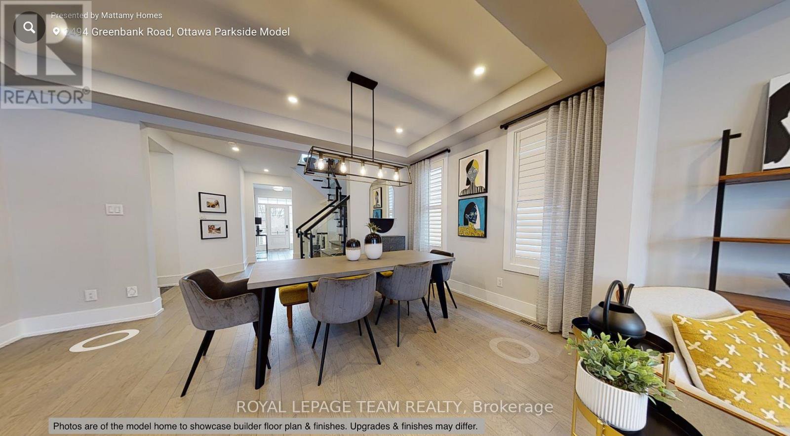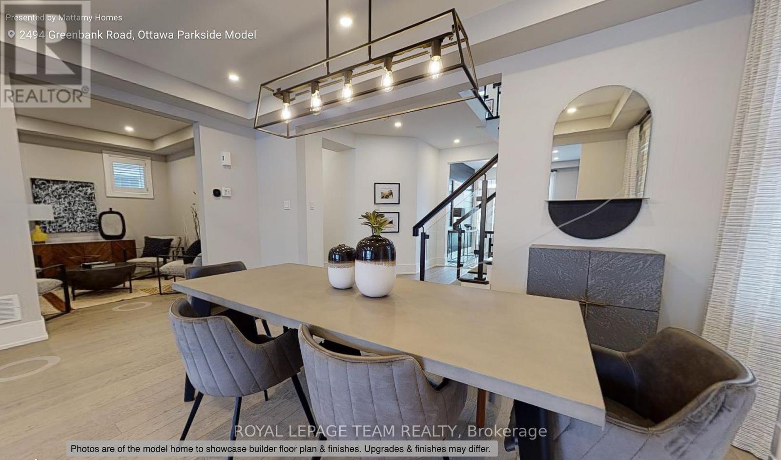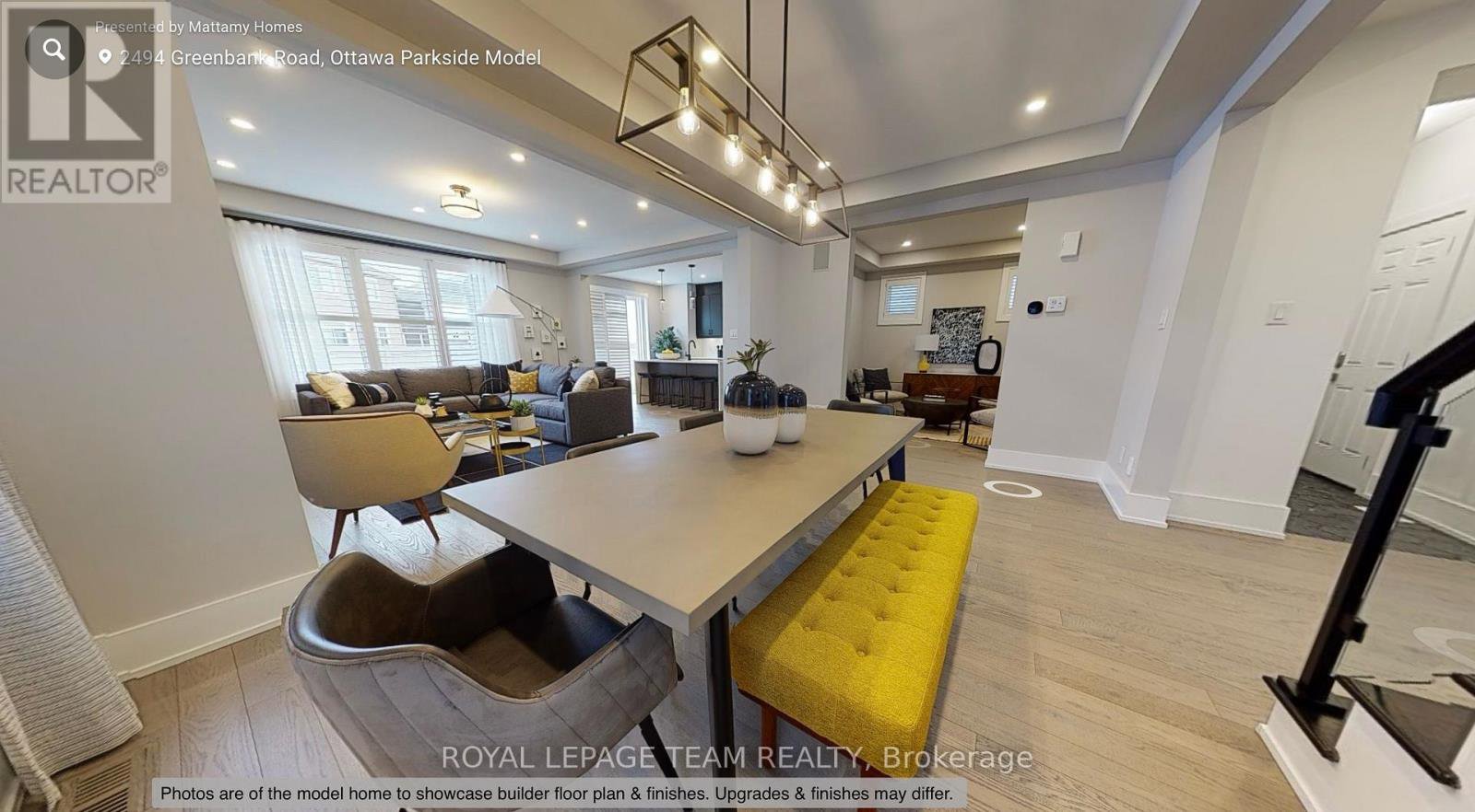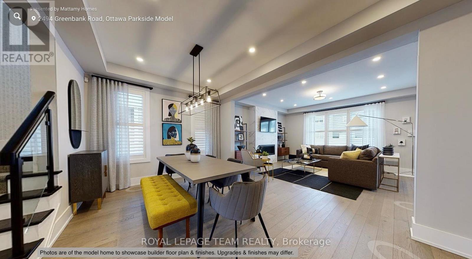 Imagine Waking Up Here! 1029 Charolais Place Is the Dream You've Been Waiting For. Welcome to Richmond Meadows Mattamy's vibrant, family-friendly community nestled in the heart of the Village of Richmond.This brand-new Parkside II (Contemporary C) model offers 4 bedrooms, 4 bathrooms, and a generous 2,692 sq. ft. (+709 sq.ft.) of thoughtfully designed living space with a *February 2026 move-in date*.The main floor impresses with 9-foot ceilings, engineered hardwood flooring, a convenient 2-piece powder room, two walk-in closets, and inside access to the double garage. The open-concept layout features a spacious living and dining area, a versatile den, and an upgraded chefs kitchen complete with quartz countertops, a large island, breakfast bar, and patio doors leading to the backyard.The sun-soaked great room is a true highlight, with oversized windows that flood the space with natural light. Upstairs, the hardwood staircase leads to a serene primary suite featuring a walk-in closet and spa-like ensuite with a soaker tub, glass shower, and dual vanities. Three additional bedrooms all include their own walk-in closets. Two full 3-piece bathrooms and a conveniently located laundry room complete the second level. The fully finished basement adds +709 sq. ft. of additional living space, including a bright family room with two windows and a full 3-piece bathroom perfect for movie nights or guests. Bonus features include: 200 AMP electrical panel ; Central A/C; Ecobee smart thermostat ; Tankless Domestic Hot Water Unit ; Heat Recovery Ventilator ; Included $20,000 Design Studio Bonus to personalize your finishes. Home is currently UNDER CONSTRUCTION. Photos shown are of the model home and for illustrative purposes only features and finishes may vary.