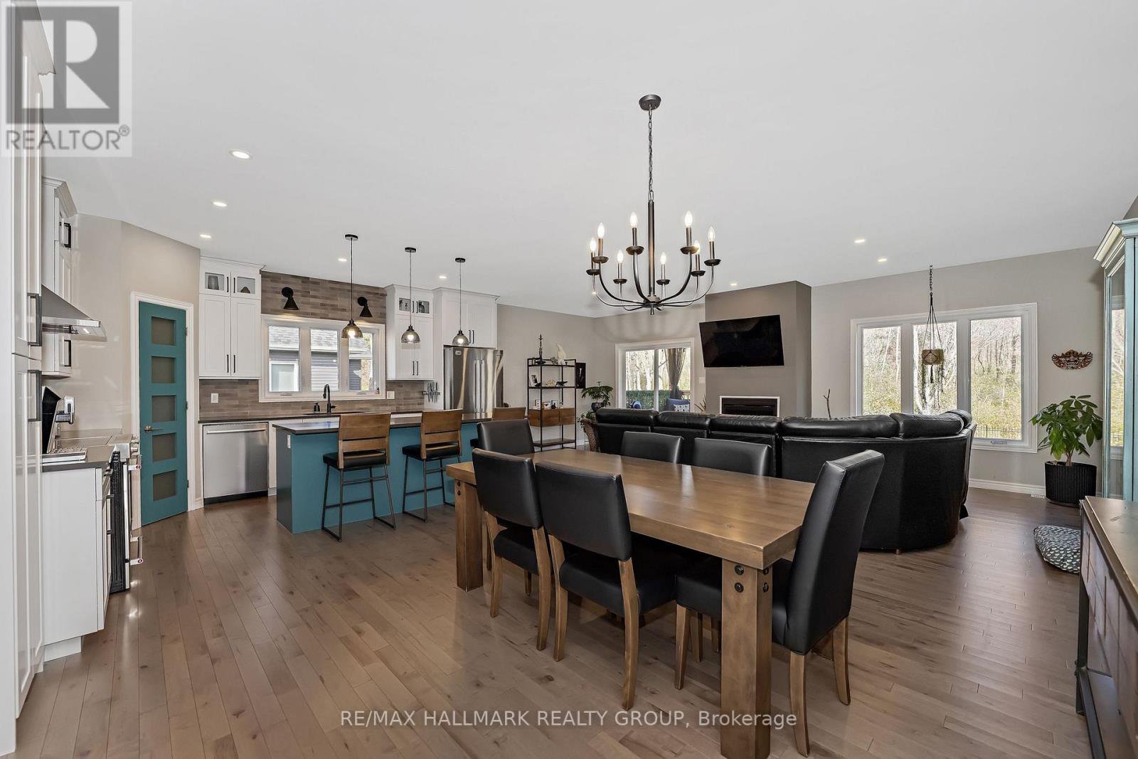 Welcome to 1350 Country Lane - a stunning 2022 custom-built home nestled on just over an acre of beautifully landscaped property in peaceful North Dundas. Blending modern finishes with rural charm, this 1-storey home offers exceptional comfort, space, and versatility for growing families or multi-generational living. Step inside to an inviting open-concept upper level featuring a spacious living room with a cozy propane fireplace insert, large windows flooding the home with natural light, and a bright dining area perfect for entertaining. The modern kitchen showcases stainless steel appliances, a built-in oven, and a generous walk-in pantry. The primary suite includes a stylish 3-piece ensuite, with two additional bedrooms and a full bathroom completing the upper level. The fully finished lower level offers incredible flexibility with two additional bedrooms, a large recreation room, full 3-piece bathroom, and a bonus common area - ideal for a home office or gym. Outside, enjoy a private backyard retreat complete with an inground pool, landscaped gardens, and ample green space for family gatherings or quiet evenings under the stars. The attached double garage and long private driveway provide parking for up to eight vehicles. Located just minutes from Winchester's amenities, schools, and recreation, this home offers a rare balance of modern comfort and country tranquility.
