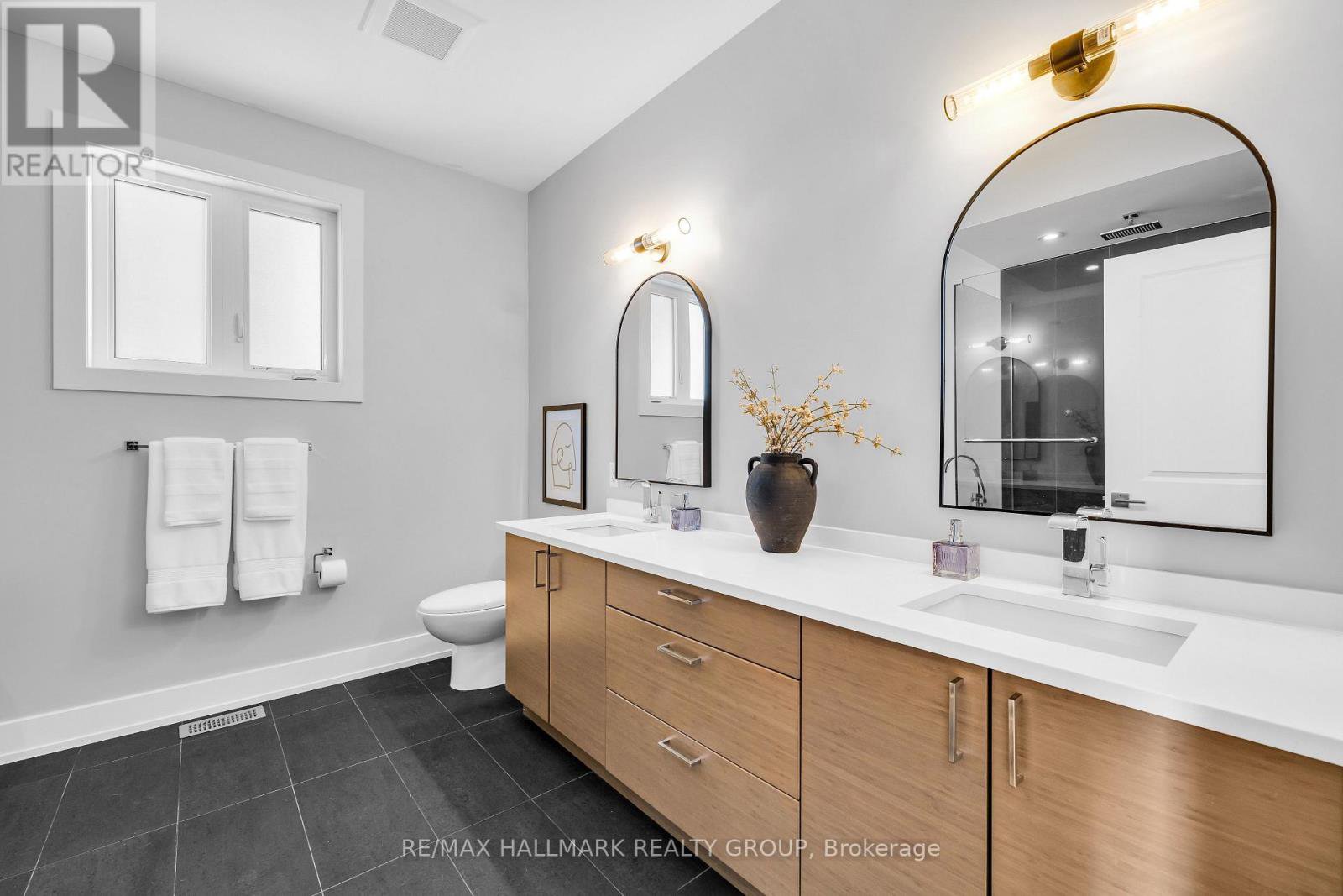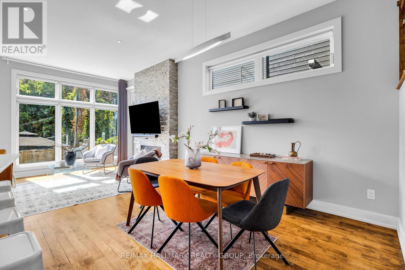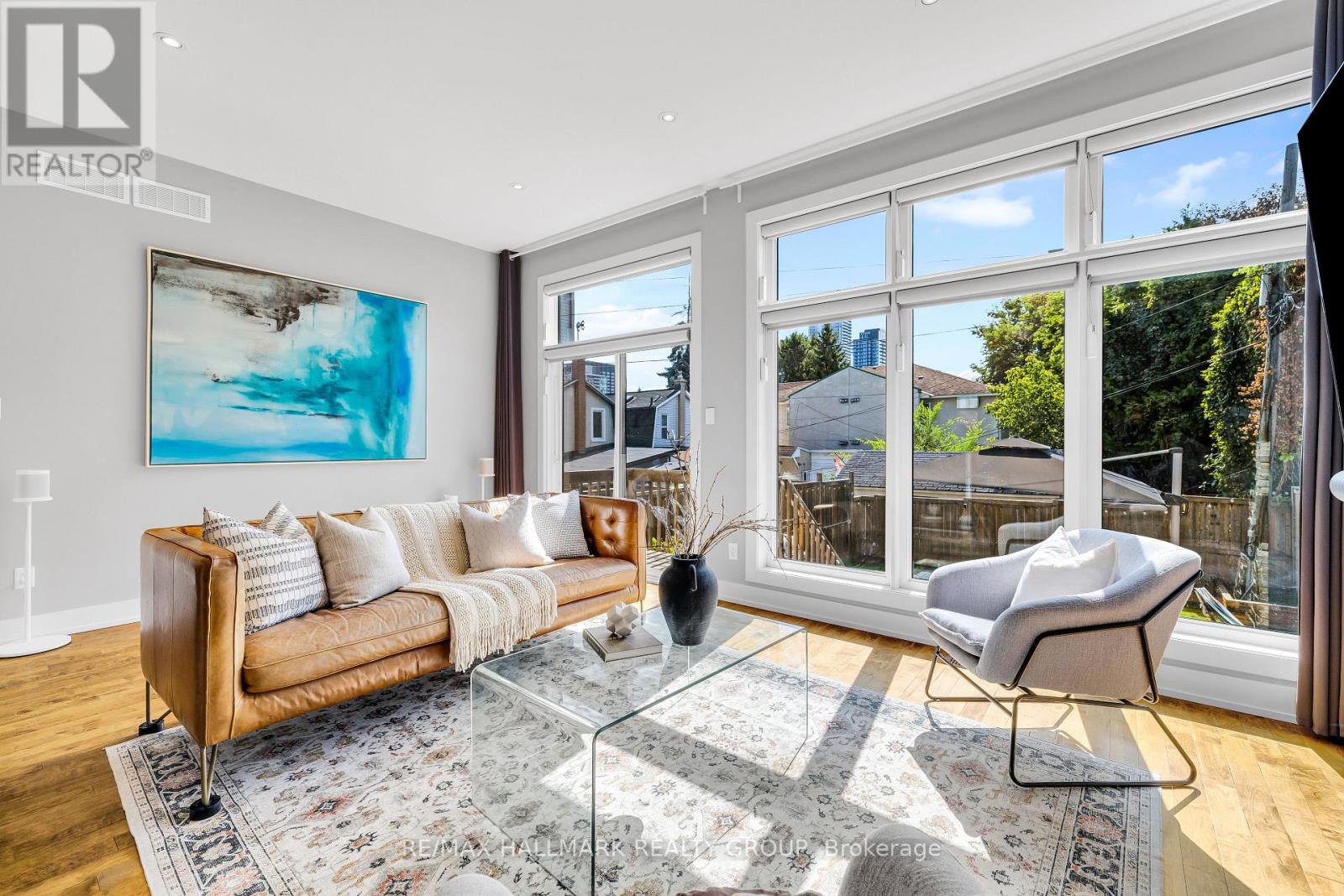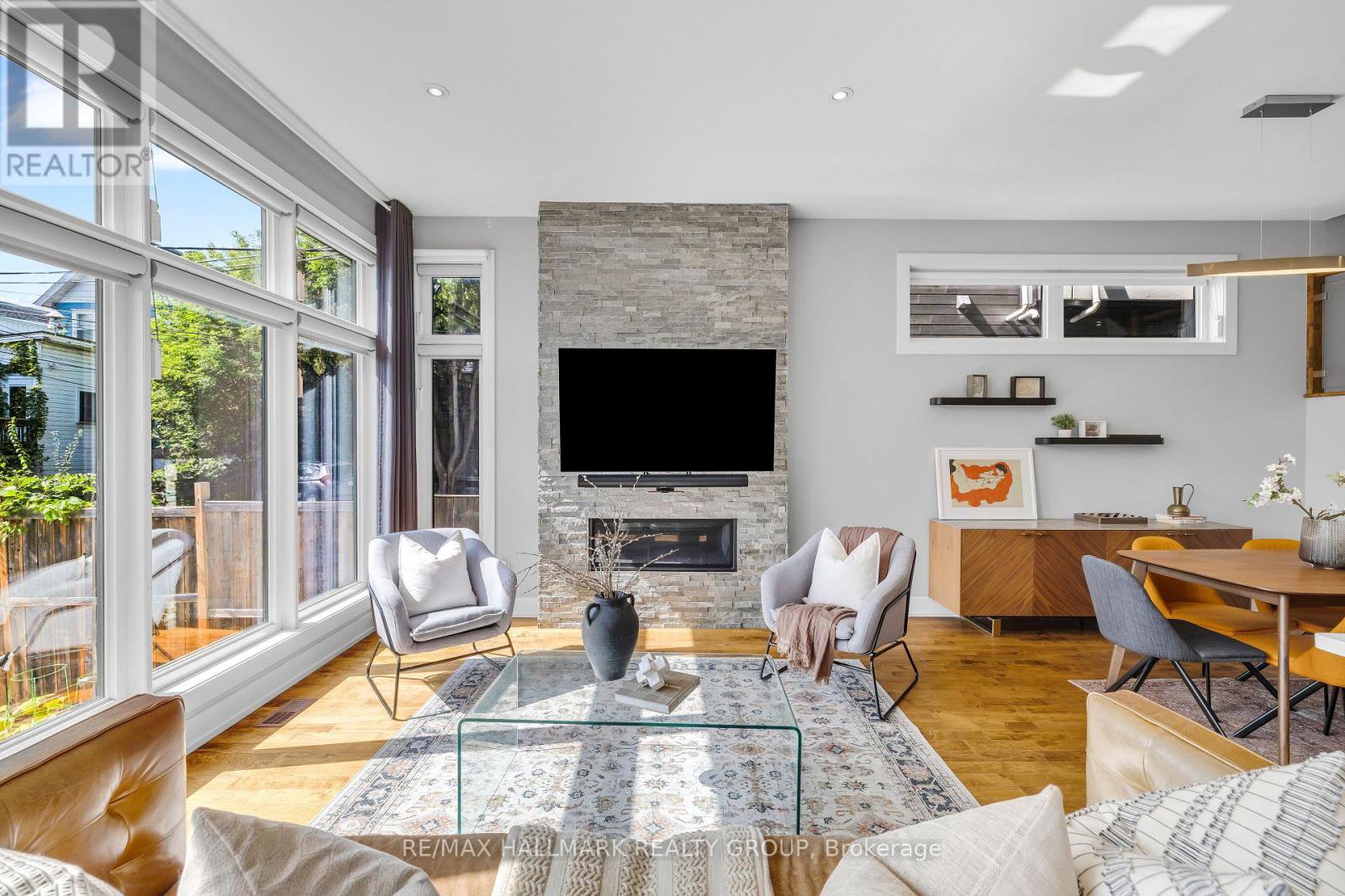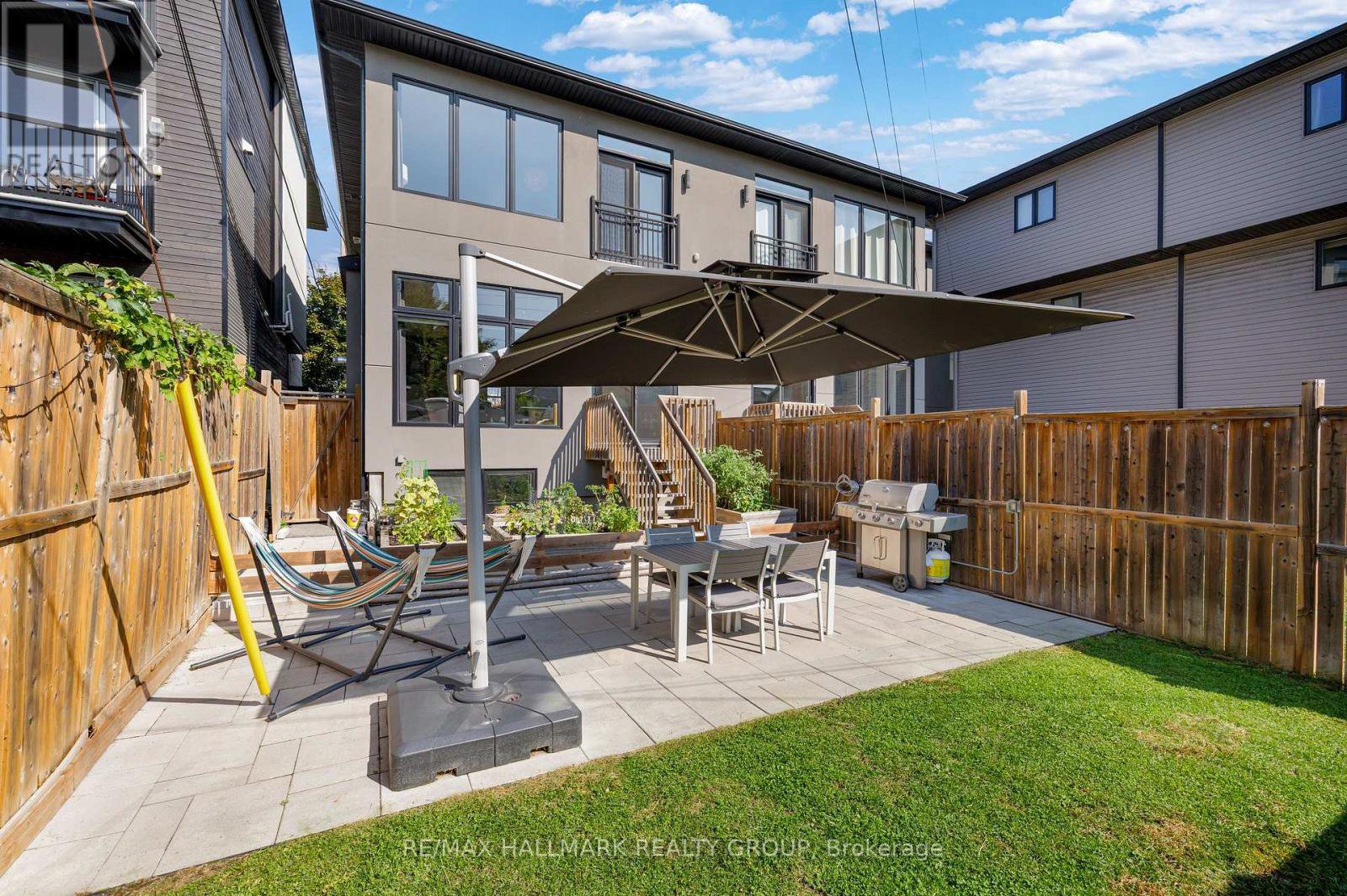 Nestled between trendy Little Italy, Civic Hospital, and vibrant Hintonburg, this stunning modern executive semi-detached home offers the perfect blend of luxury, space, and income potential, ideal for professional couples, downsizers, or families seeking stylish urban living. Enjoy being greeted with spectacular 14' ceilings in the entrance foyer, followed by soaring 10' ceilings throughout the remainder of the open-concept main floor featuring floor-to-ceiling windows, hardwood floors, and a show-stopping stone fireplace wall. At the heart of the home is a sleek, modern kitchen with a large island, quartz countertops, and high-end finishes, perfect for cooking and entertaining. Upstairs, enjoy 9' ceilings, a spacious primary suite with a walk-in closet and spa-like ensuite, two additional bedrooms (one with a private balcony), and convenient second-floor laundry. The fully finished lower level includes a stylish, income-generating one-bedroom apartment (currently rented for $1794/mth inclusive)with radiant heated floors, a private entrance, HRV system, stackable washer & dryer - ideal for rental income, extended family, or a home office suite. Outside, the south-facing, fully fenced backyard is a peaceful retreat with a large patio, low maintenance lawn, and raised garden beds. Smart home features include app-controlled blinds, lights, thermostat, garage door, video doorbell, and full security system, plus hardwired RJ45 internet points in all bedrooms and the living room. Additional perks include inside access from the garage and a spacious mezzanine above it, great for extra storage. Steps to Ottawa's best shops, cafés, bike paths, transit, and parks, and minutes to Dows Lake, the Rideau Canal, Chinatown, the Glebe, and year-round festivals and outdoor recreation.
