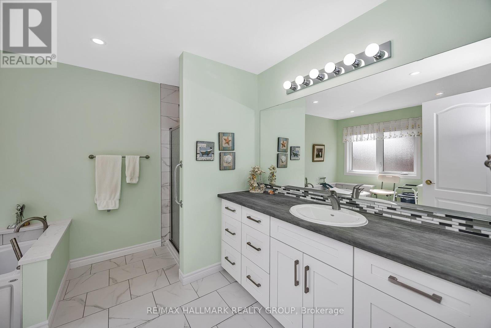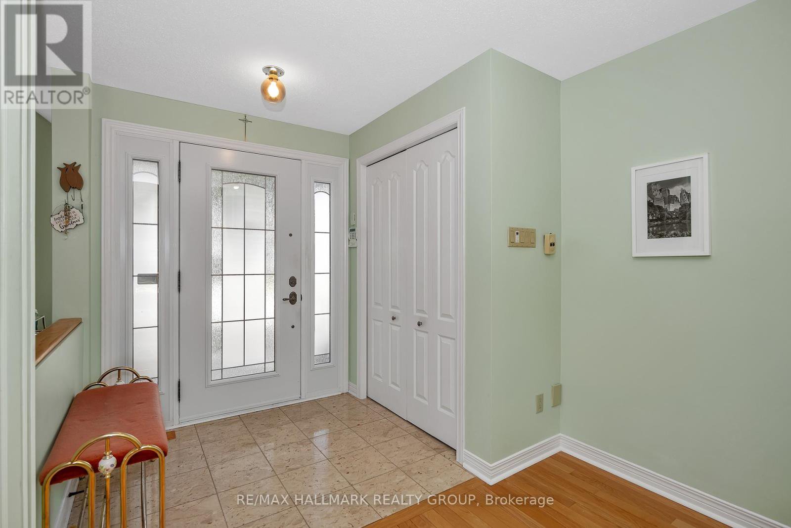 Welcome to this beautifully maintained 4 bedroom, 2.5 bathroom family home located in the desirable Chapel Hill community. Offering a thoughtful blend of comfort and updates, this property is move-in ready and ideal for growing families. Inside, the main level features gleaming hardwood floors, a cozy natural gas fireplace, and an elegant oak staircase that sets the tone for the home. The bright and spacious living and dining areas flow seamlessly into the kitchen, offering plenty of cabinetry and counter space. The primary bedroom showcases hardwood flooring, while the secondary bedrooms are finished with soft carpet for comfort. Notable upgrades add peace of mind and lasting value: Windows, front door, and patio door replaced in 2014 warranty until 2029, Roof completed in 2017, Ensuite bathroom renovation in 2019, New hot water tank installed in 2025. The full unfinished basement offers excellent storage and endless potential for a recreation room, gym, or office. Step outside to your private ravine lot, where the backyard feels like you're surrounded by the forest perfect for summer barbecues, quiet relaxation, and family gatherings. This home is set in a quiet, family-friendly neighbourhood, close to top-rated schools, parks, shopping, and transit combining convenience with comfort. Don't miss your chance to own this well-maintained home in one of Ottawa's most sought-after communities.